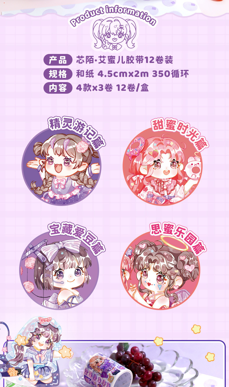 에밀리 테이프 높은 색 가치 소녀의 심장 손 계정 테이프 소녀와 종이 테이프 긴 순환 테이프에 전념 한 새로운 코어스토어 가기