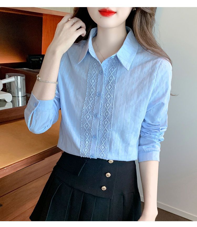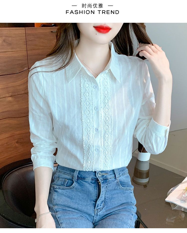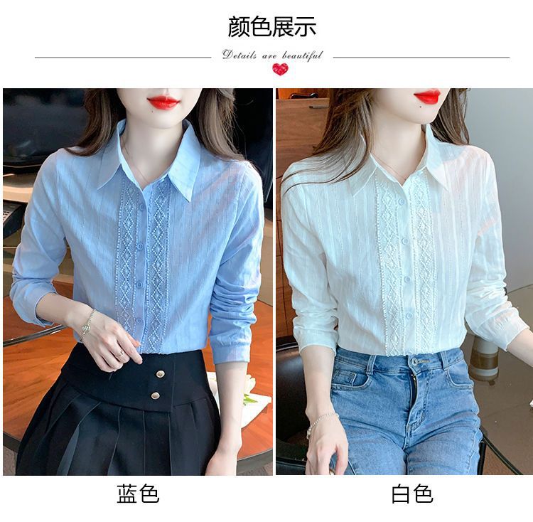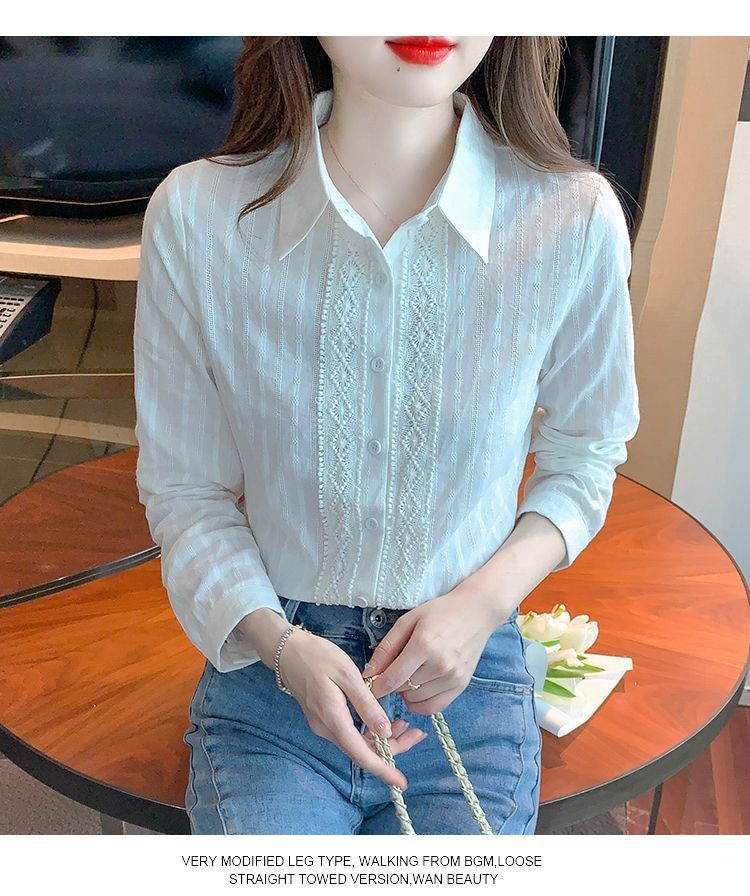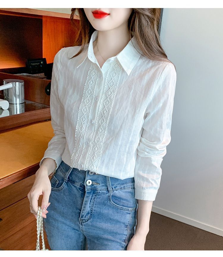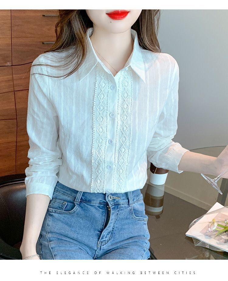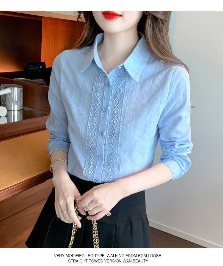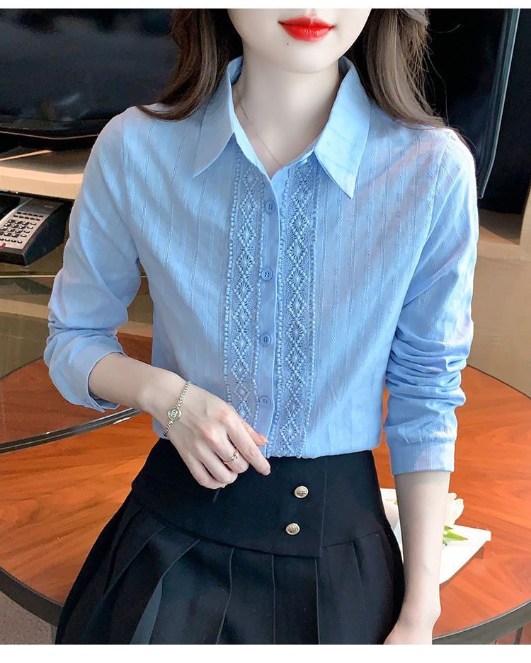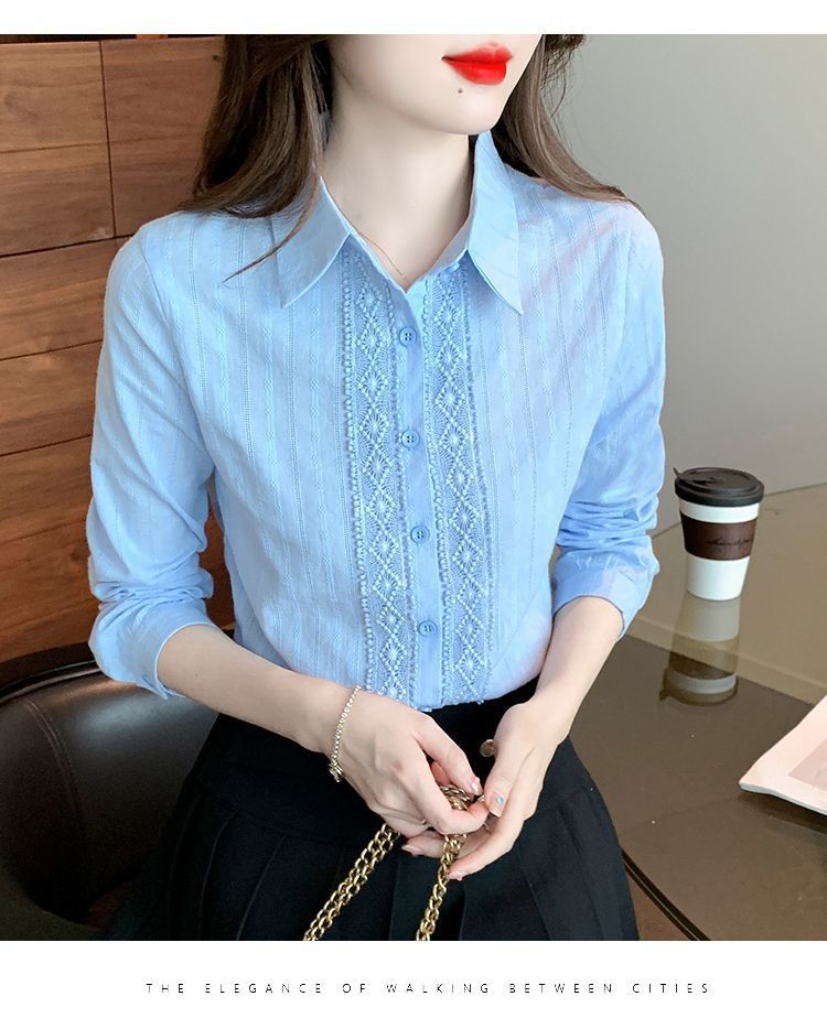 2025년 봄 신상 여성 패션 자수 순면 셔츠 여성용 세련된 면 셔츠 레이스 스티치 탑