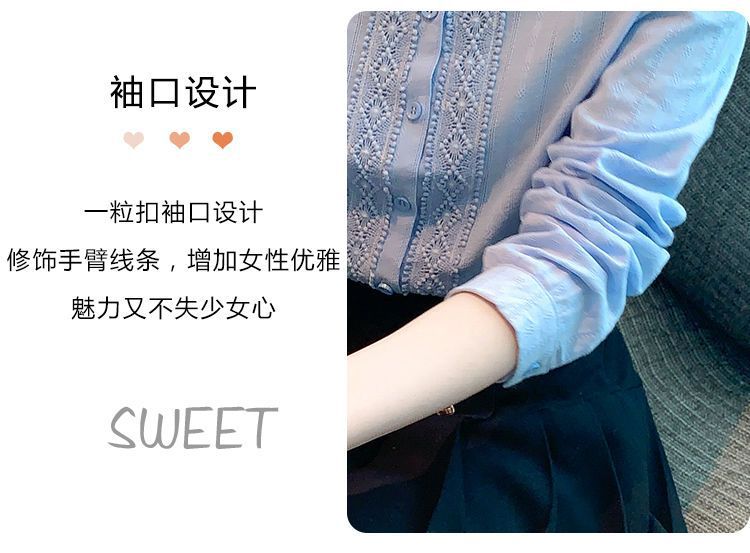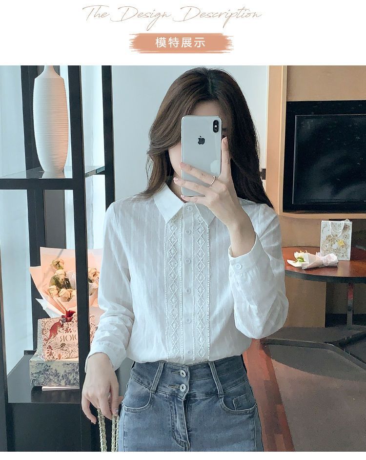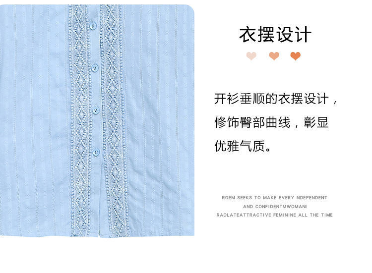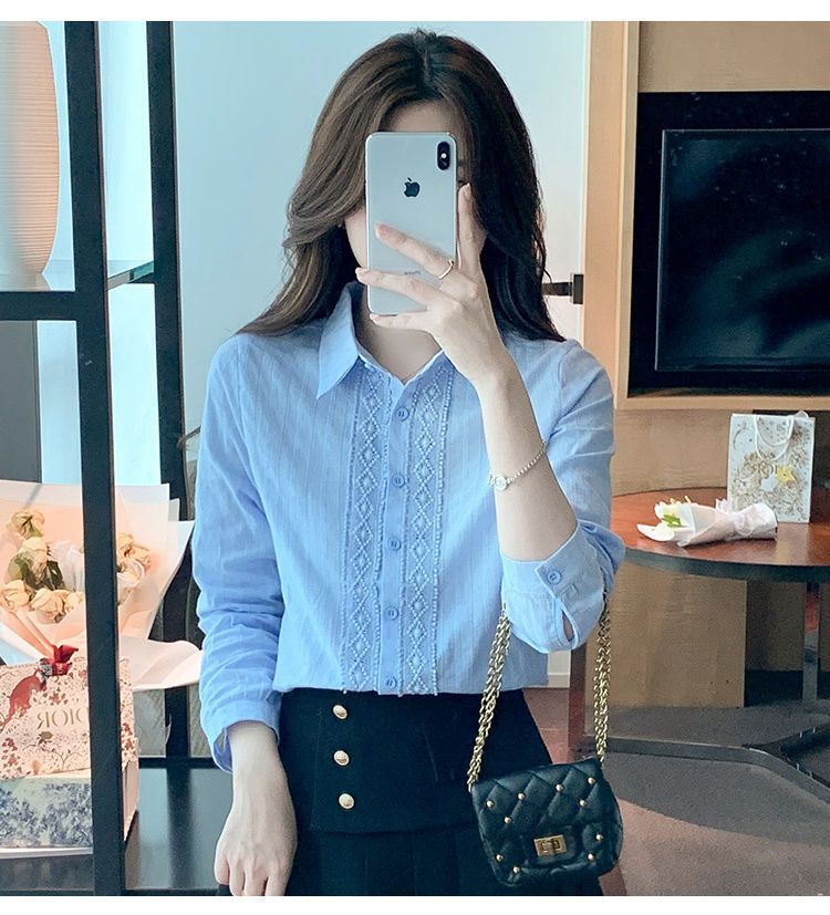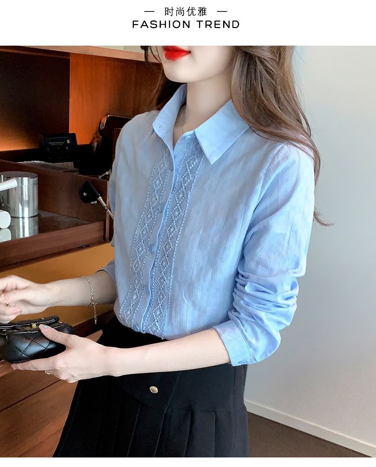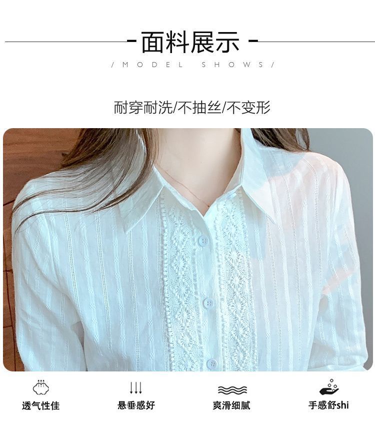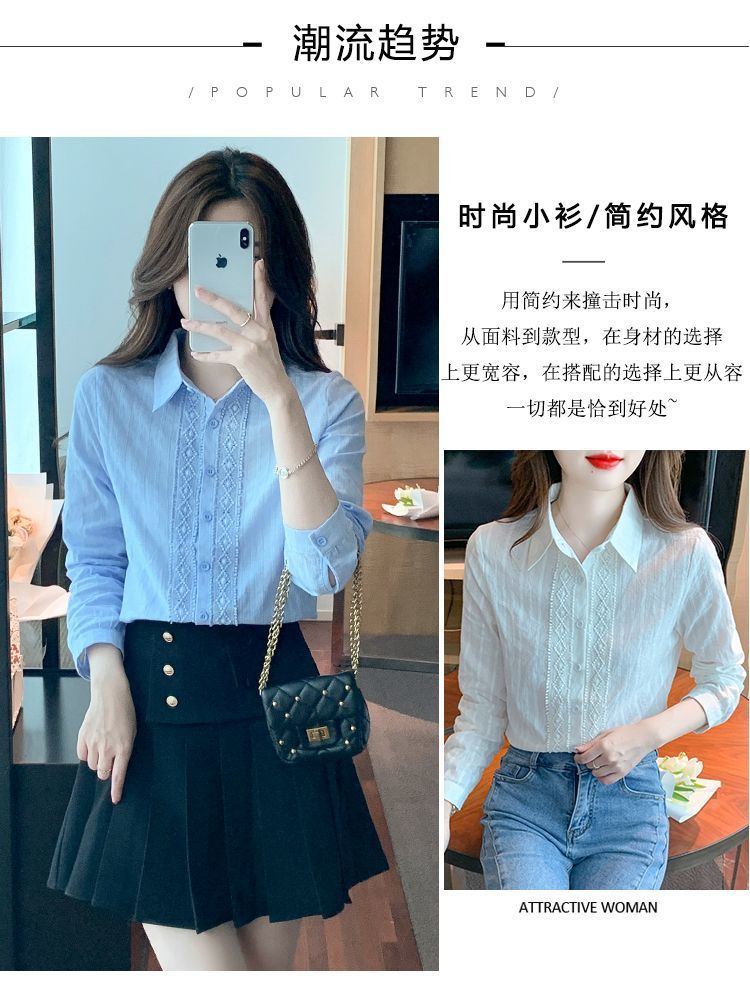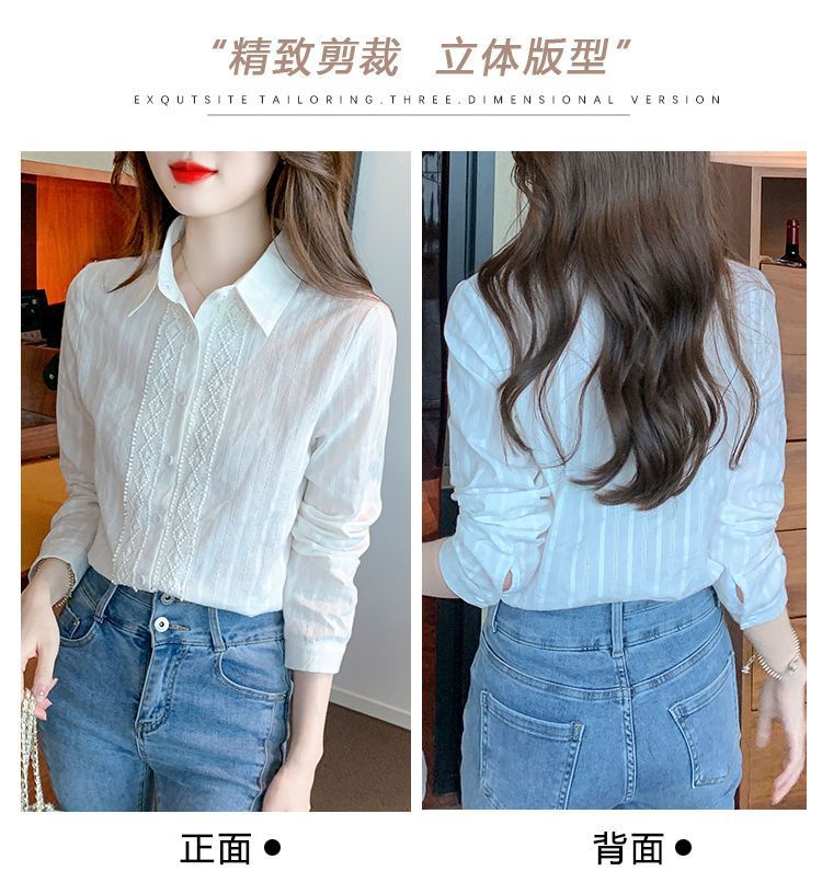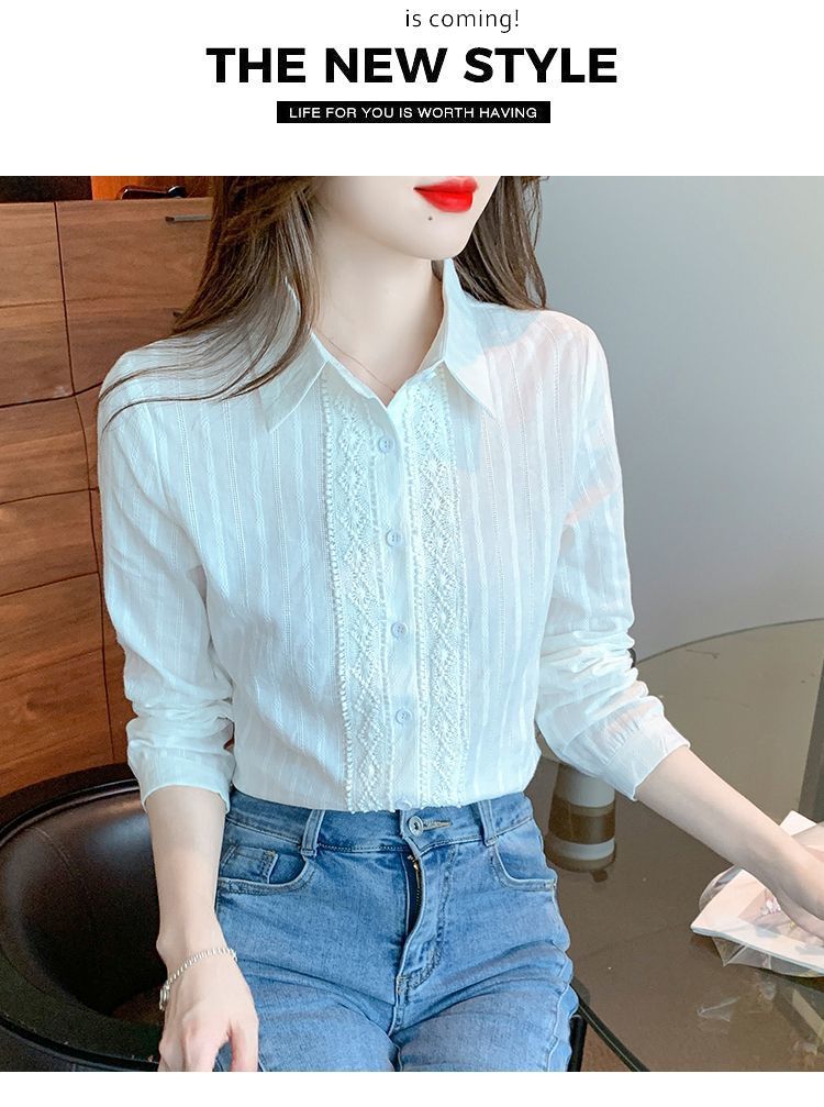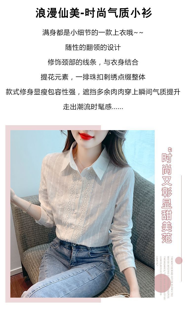 2025년 봄 신상 여성 패션 자수 순면 셔츠 여성용 세련된 면 셔츠 레이스 스티치 탑