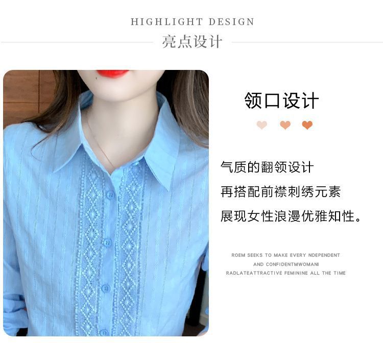 2025년 봄 신상 여성 패션 자수 순면 셔츠 여성용 세련된 면 셔츠 레이스 스티치 탑스토어 가기