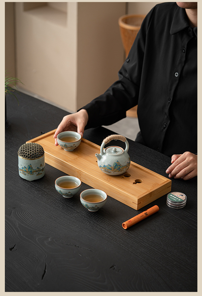 Ru Kiln Kung Fu Tea 세트 작은 세트 주전자 찻잔 Censer 티 트레이 하이 엔드 동반 선물 로고 연례 회의 선물스토어 가기
