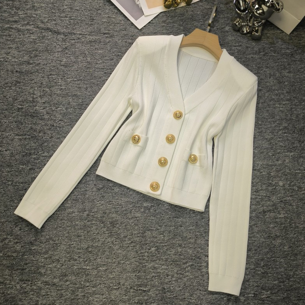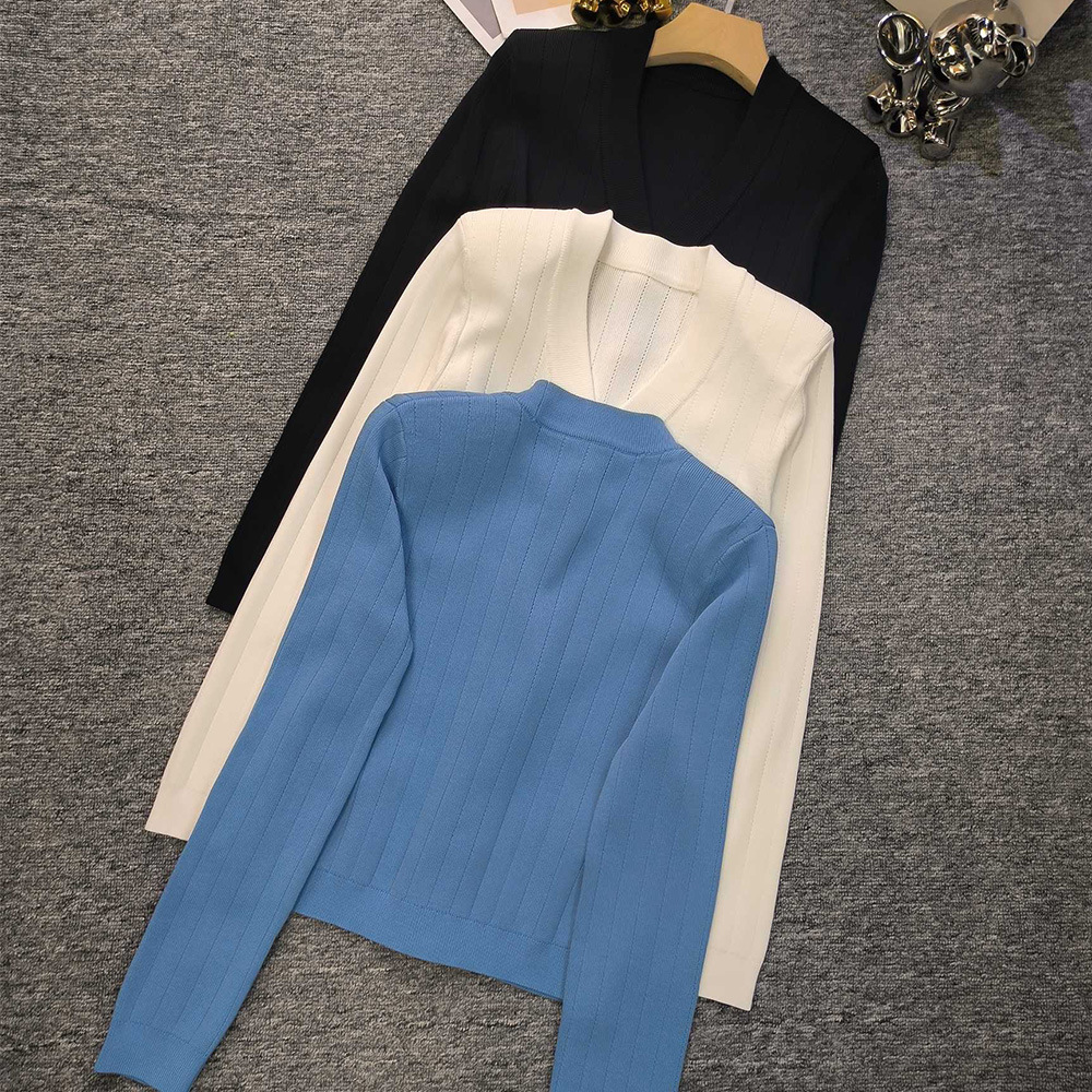 2024 봄 새로운 사우스 오일 품질 숄더면 긴팔 셔츠 크로스 보더 탑 여성 디자인 감각 틈새 니트 의류