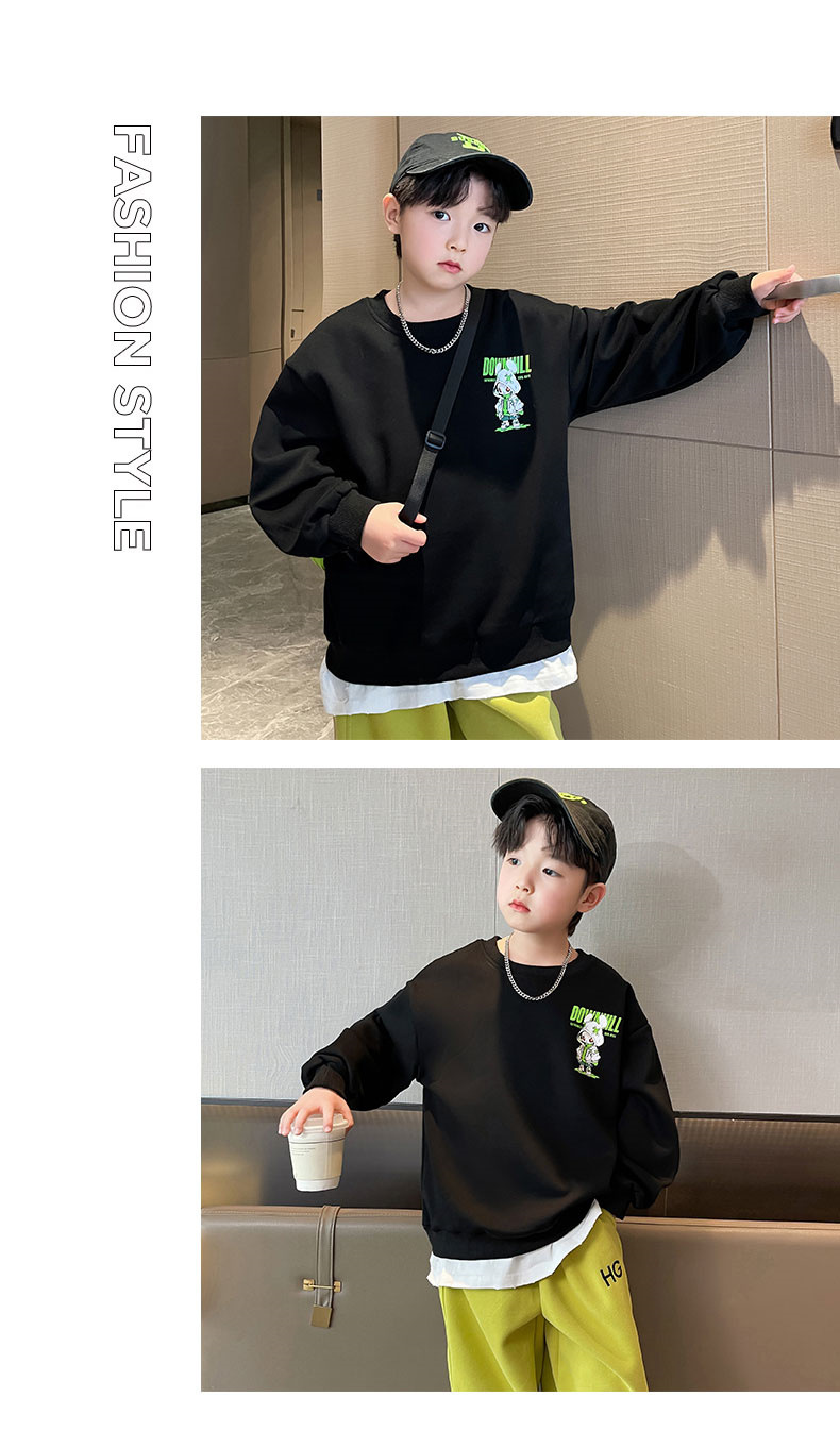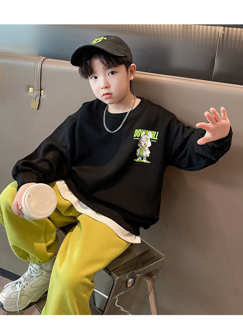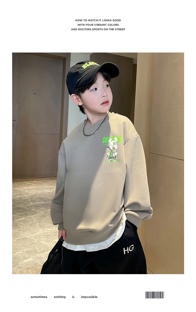 소년 스웨터 봄과 가을 2024 새로운 어린이 봄 최고 중형 및 대형 아동복 봄 잘 생긴 유행 바닥 셔츠스토어 가기