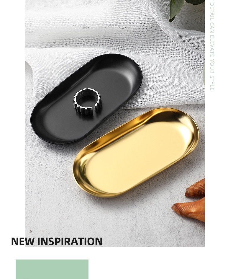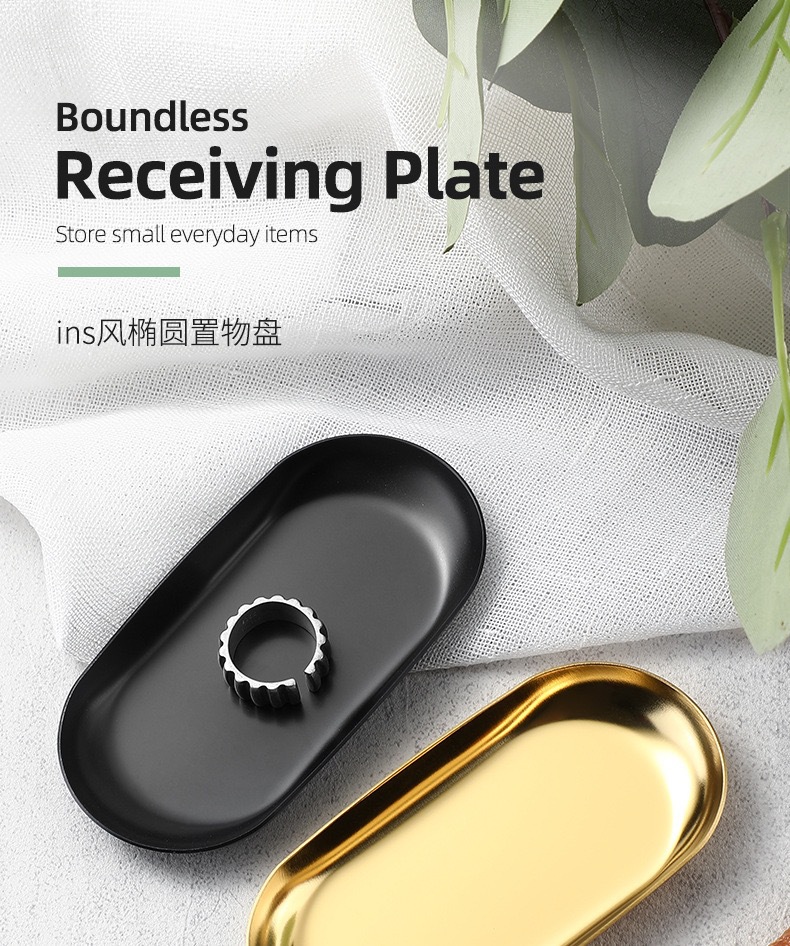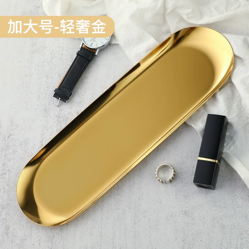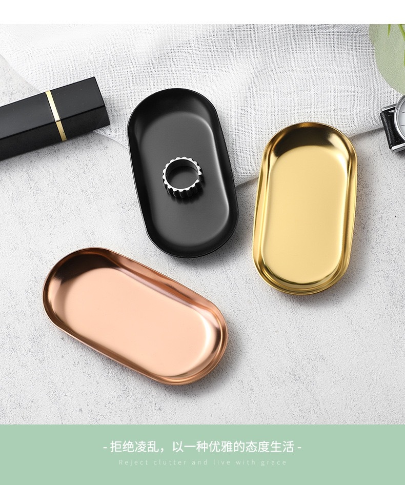 귀엽고 고급스러운 접시, 인스 스타일 수납 트레이, 타원형 스테인리스 골드 미니 보석 트레이, 작은 트레이스토어 가기