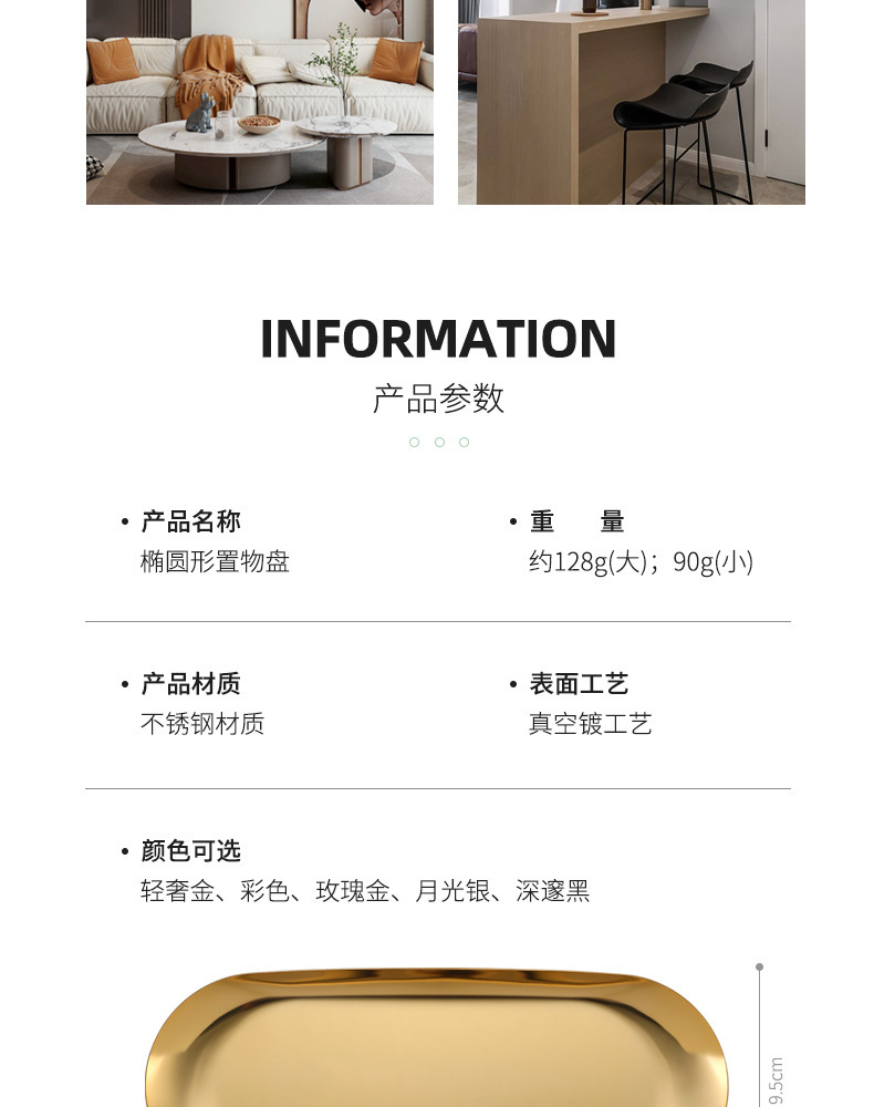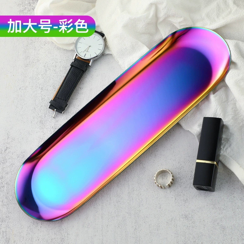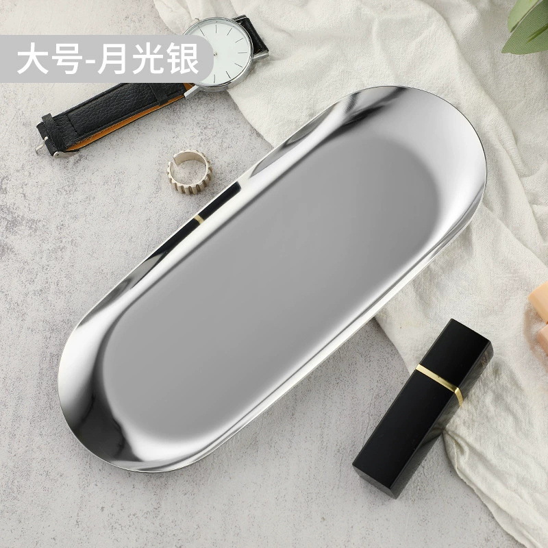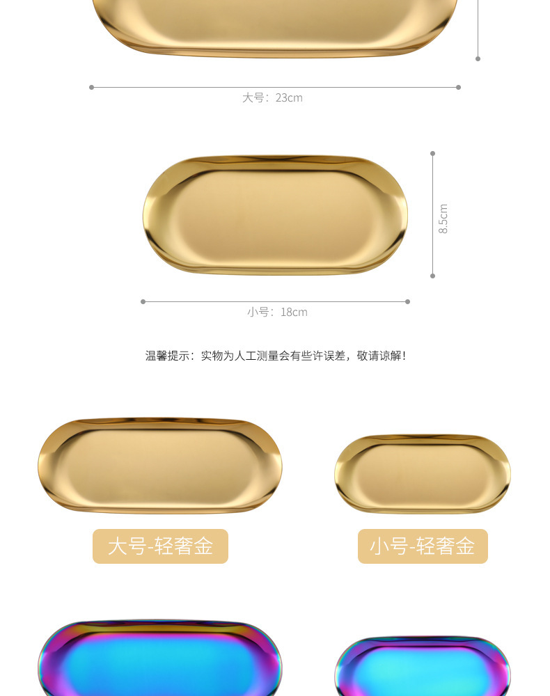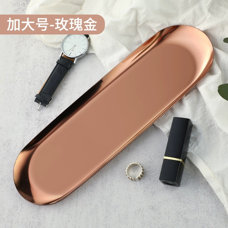 귀엽고 고급스러운 접시, 인스 스타일 수납 트레이, 타원형 스테인리스 골드 미니 보석 트레이, 작은 트레이스토어 가기