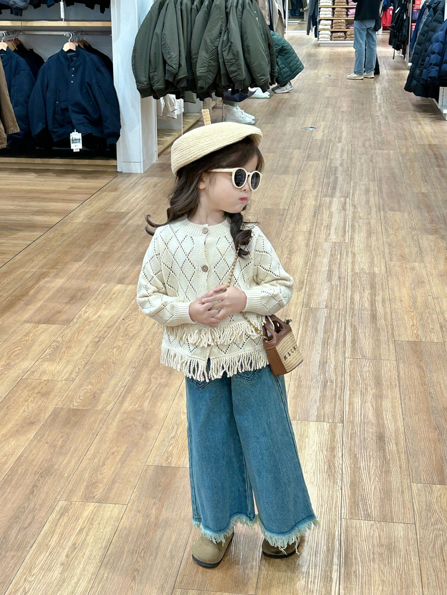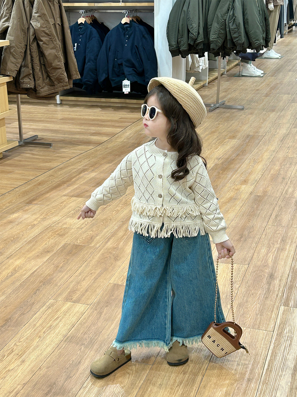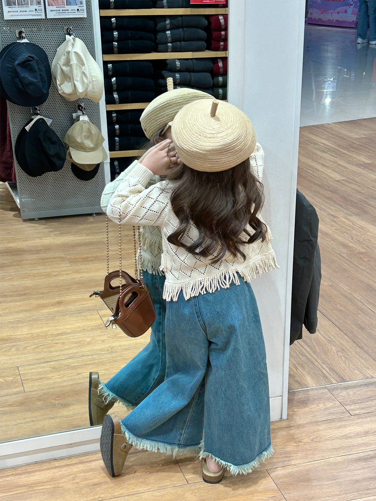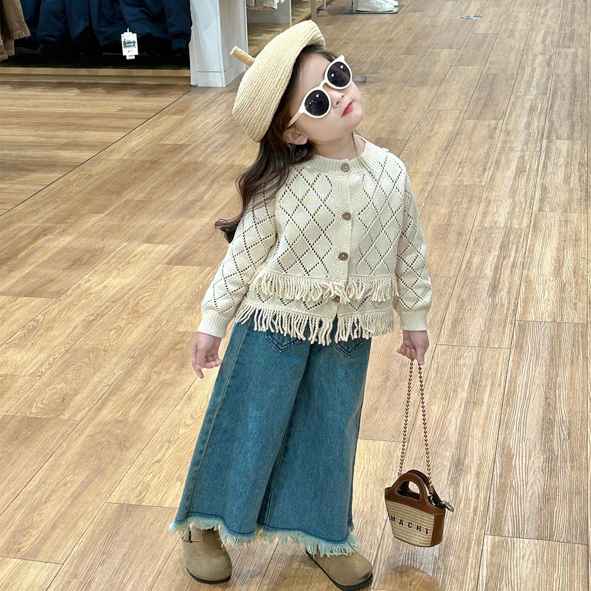 2024 봄 새 소녀의 넓은 다리 닳은 청바지 한국식 서양식 아기 소녀 서양식 어린이 바지스토어 가기