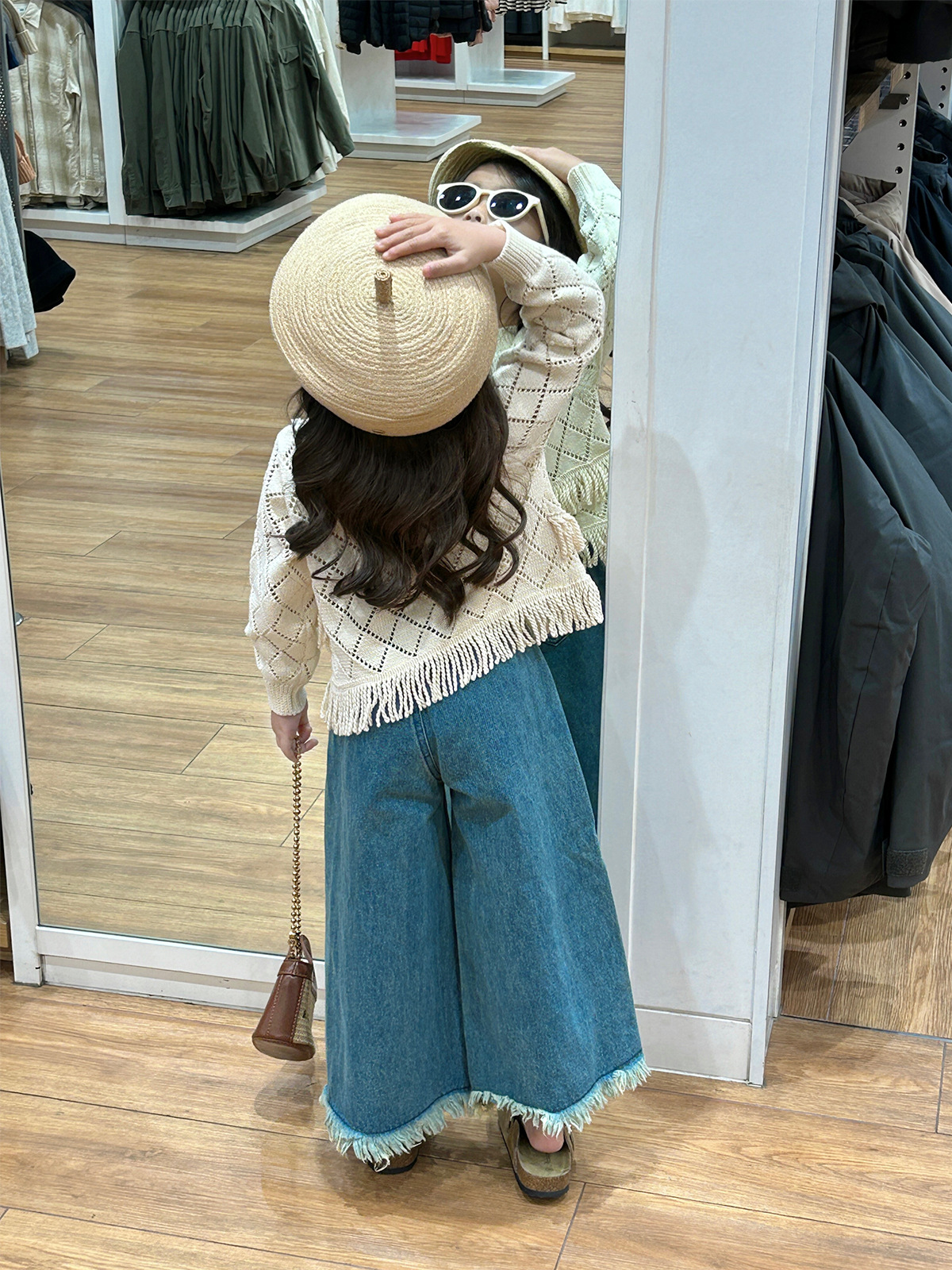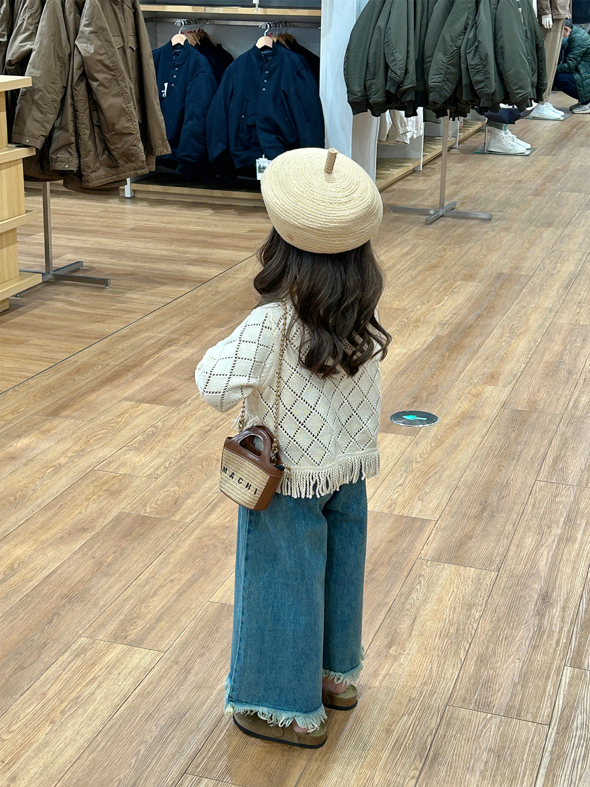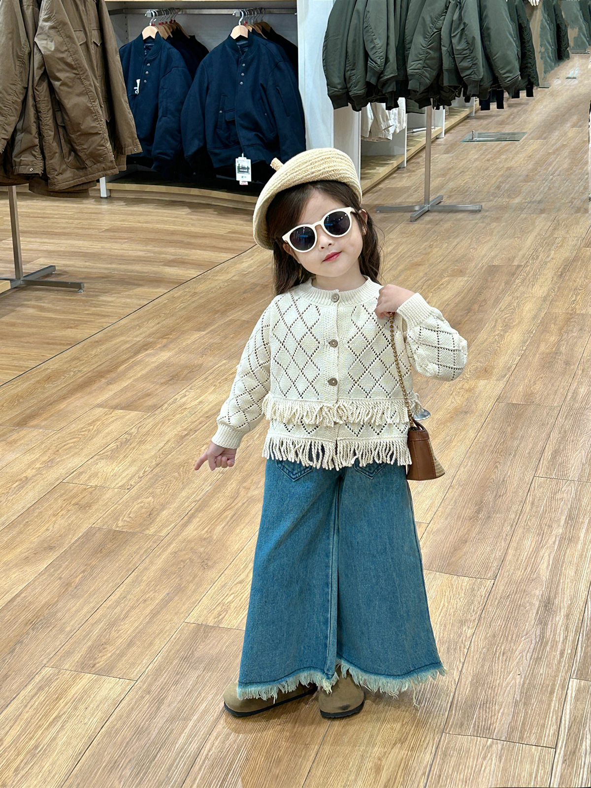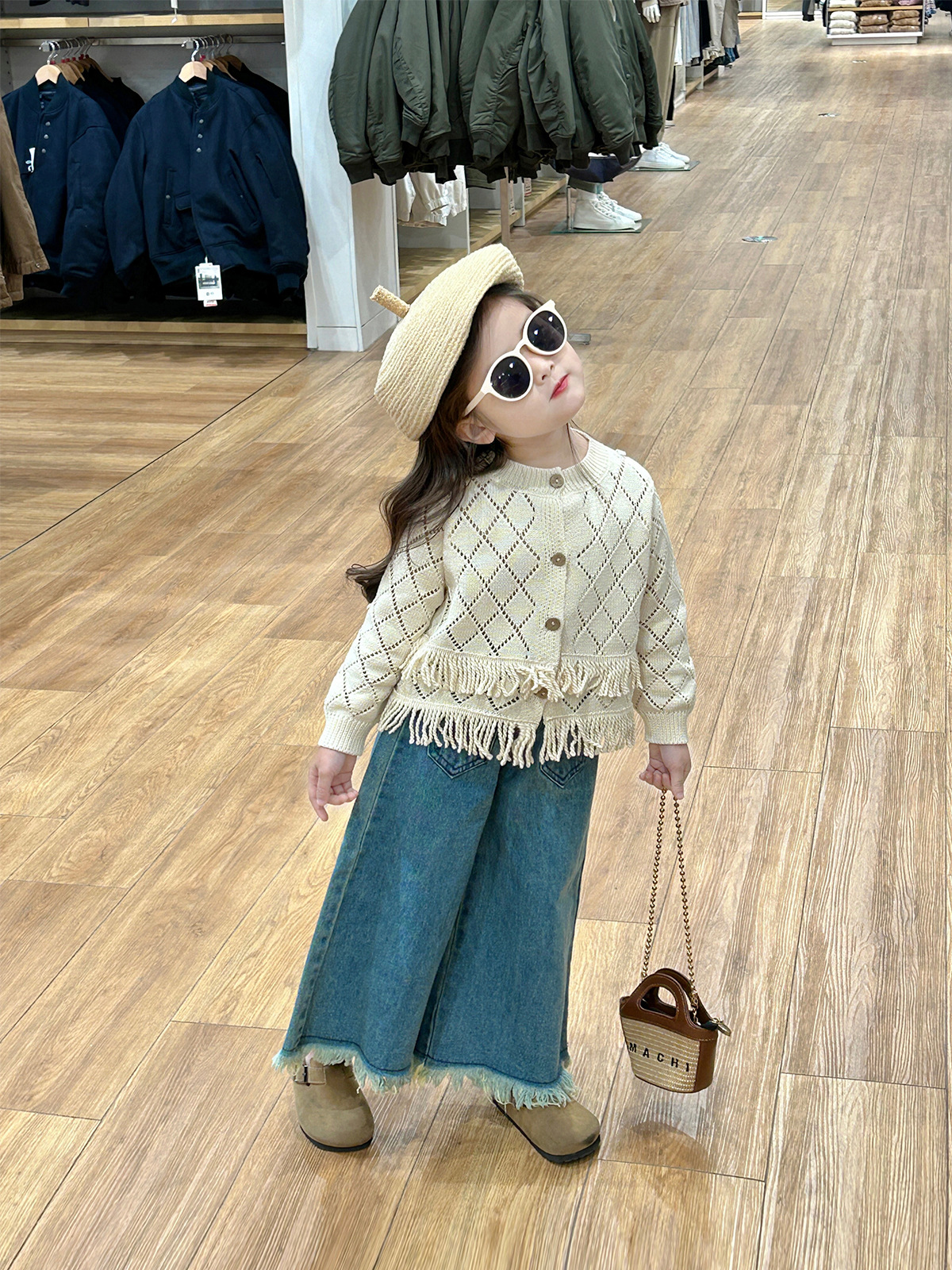 2024 봄 새 소녀의 넓은 다리 닳은 청바지 한국식 서양식 아기 소녀 서양식 어린이 바지스토어 가기