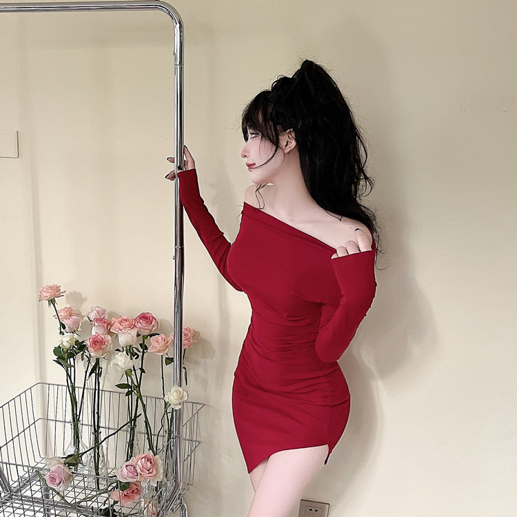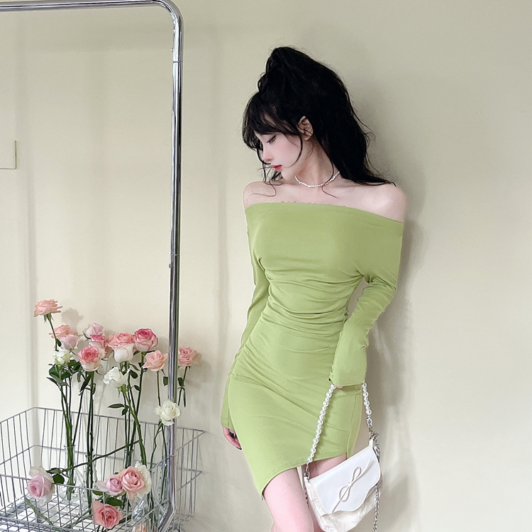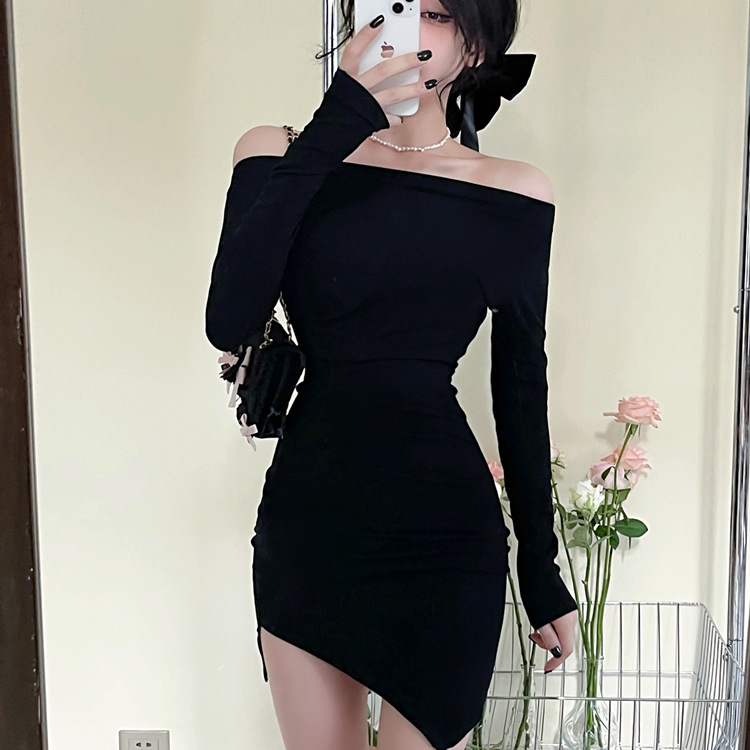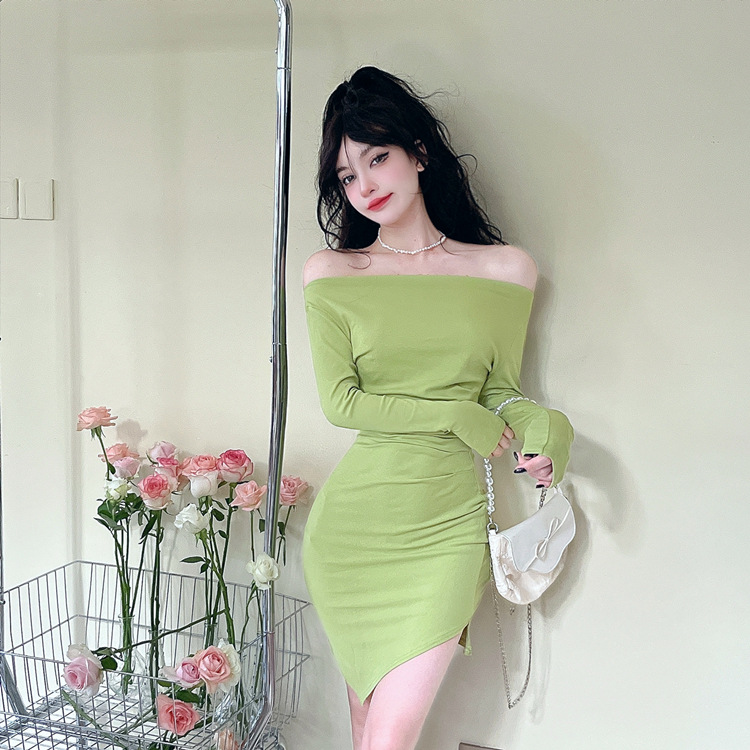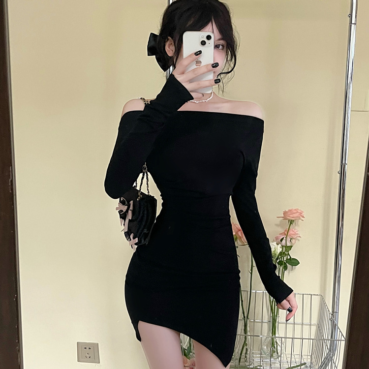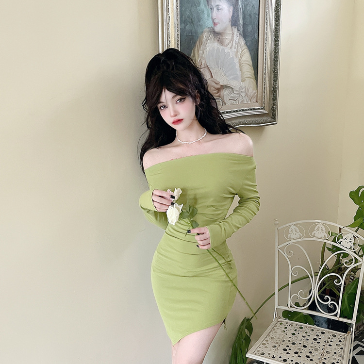 오프 숄더 슬리밍 원피스 여성용 긴소매 차가운 뜨거운 소녀 섹시한 오프 숄더 타이트한 허리 바닥 엉덩이 치마스토어 가기