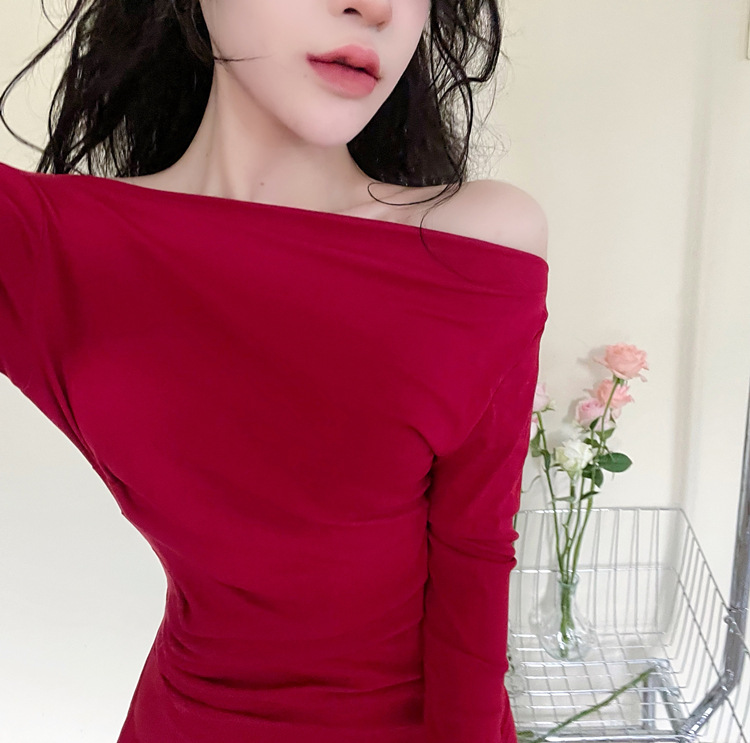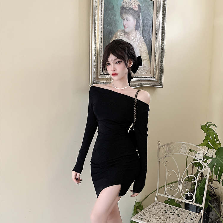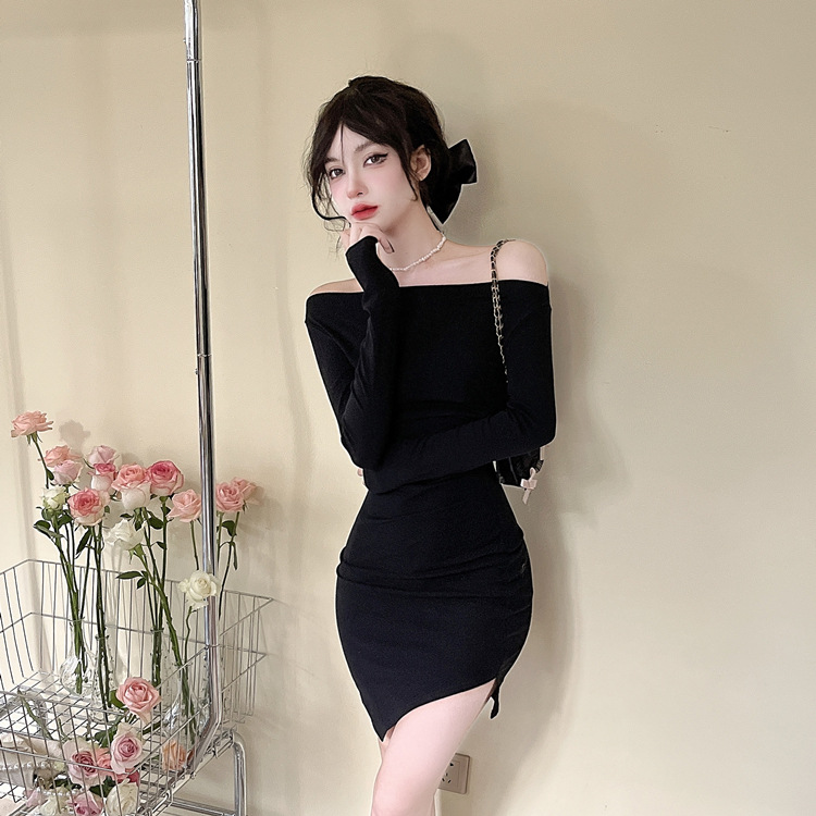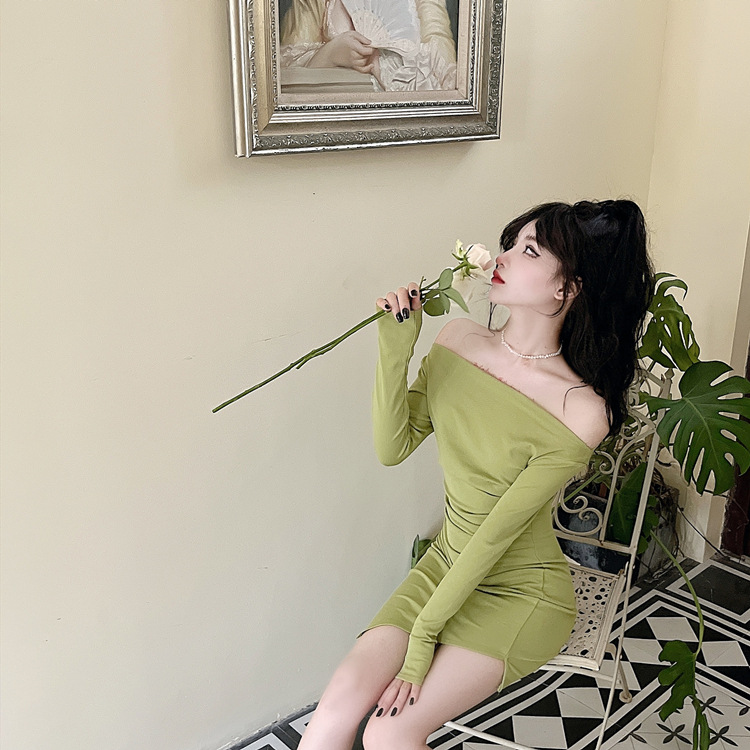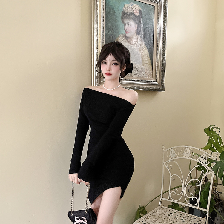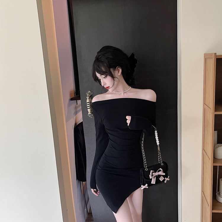 오프 숄더 슬리밍 원피스 여성용 긴소매 차가운 뜨거운 소녀 섹시한 오프 숄더 타이트한 허리 바닥 엉덩이 치마스토어 가기