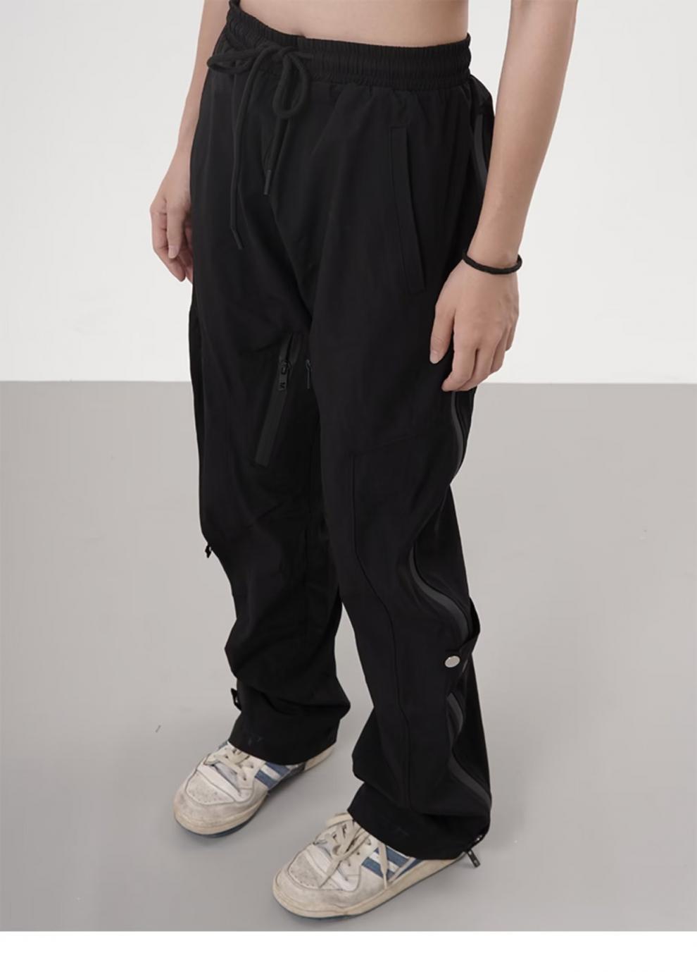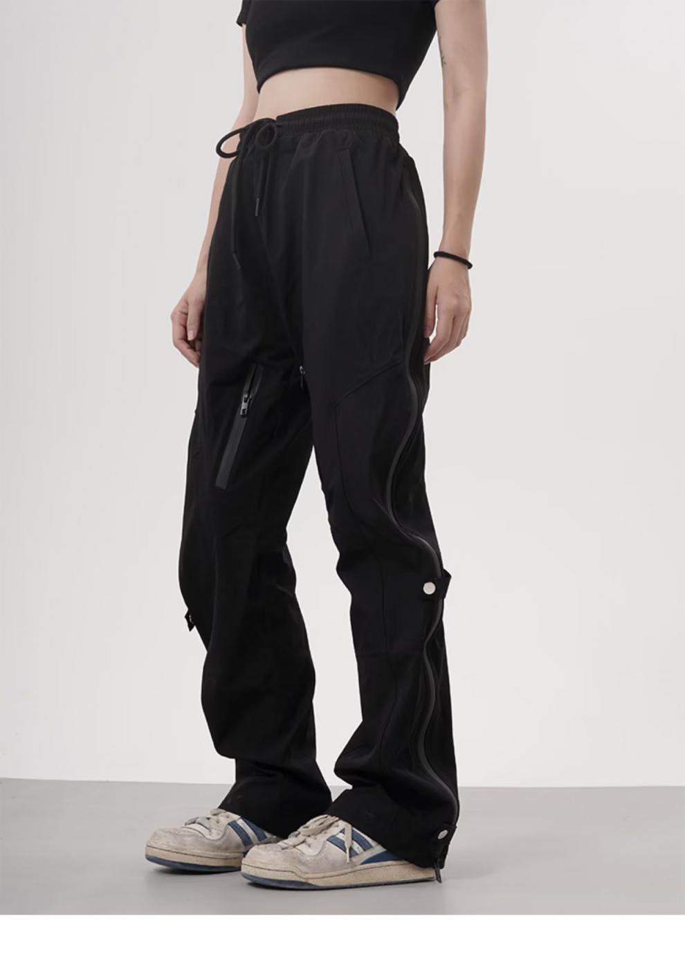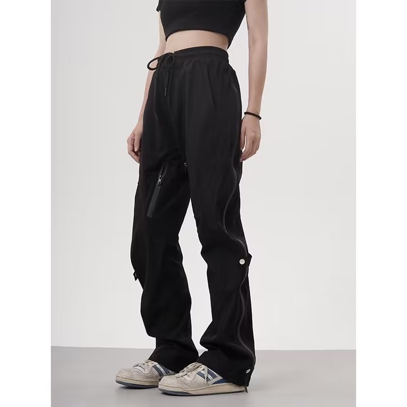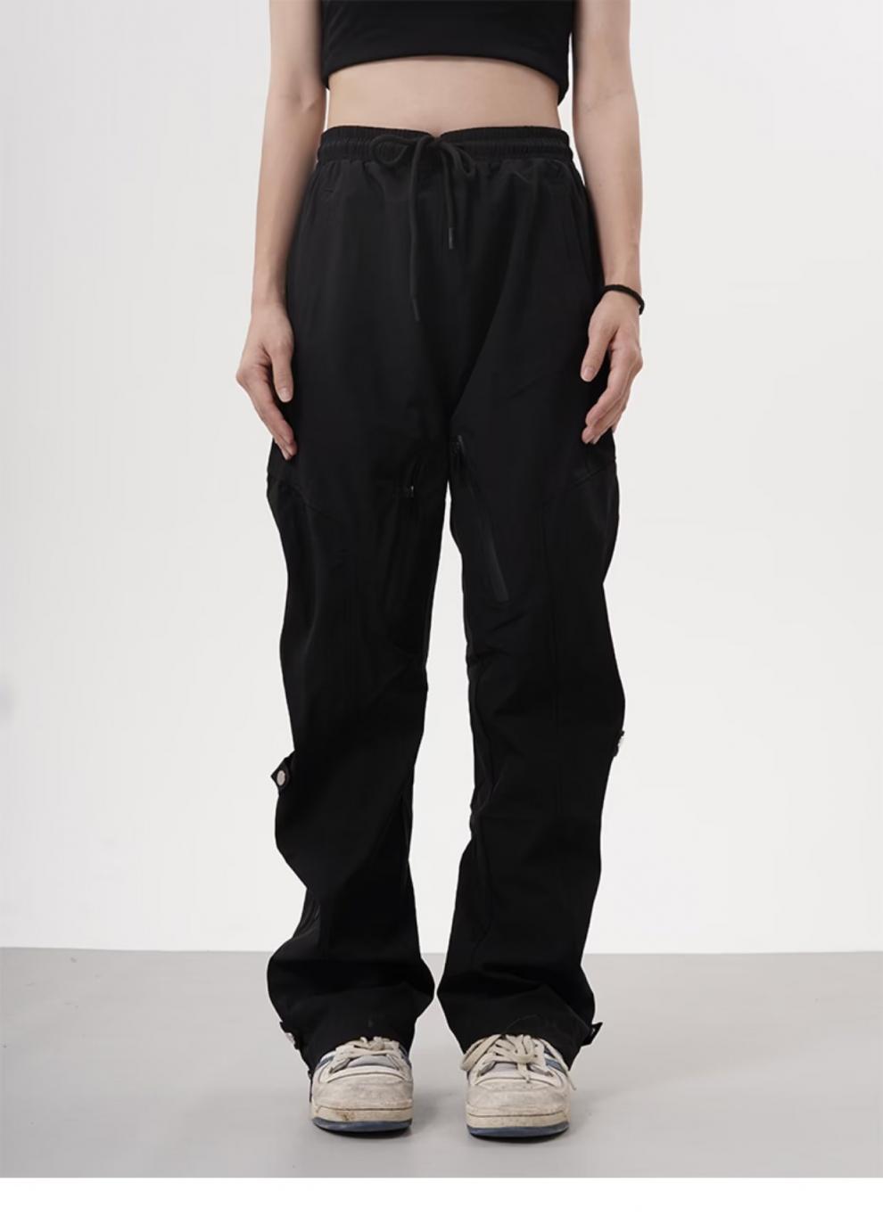 에 유행 야외 방수 바지 여성 지퍼 기능성 캐주얼 바지 남성과 여성의 느슨한 스트레이트 걸레 바지