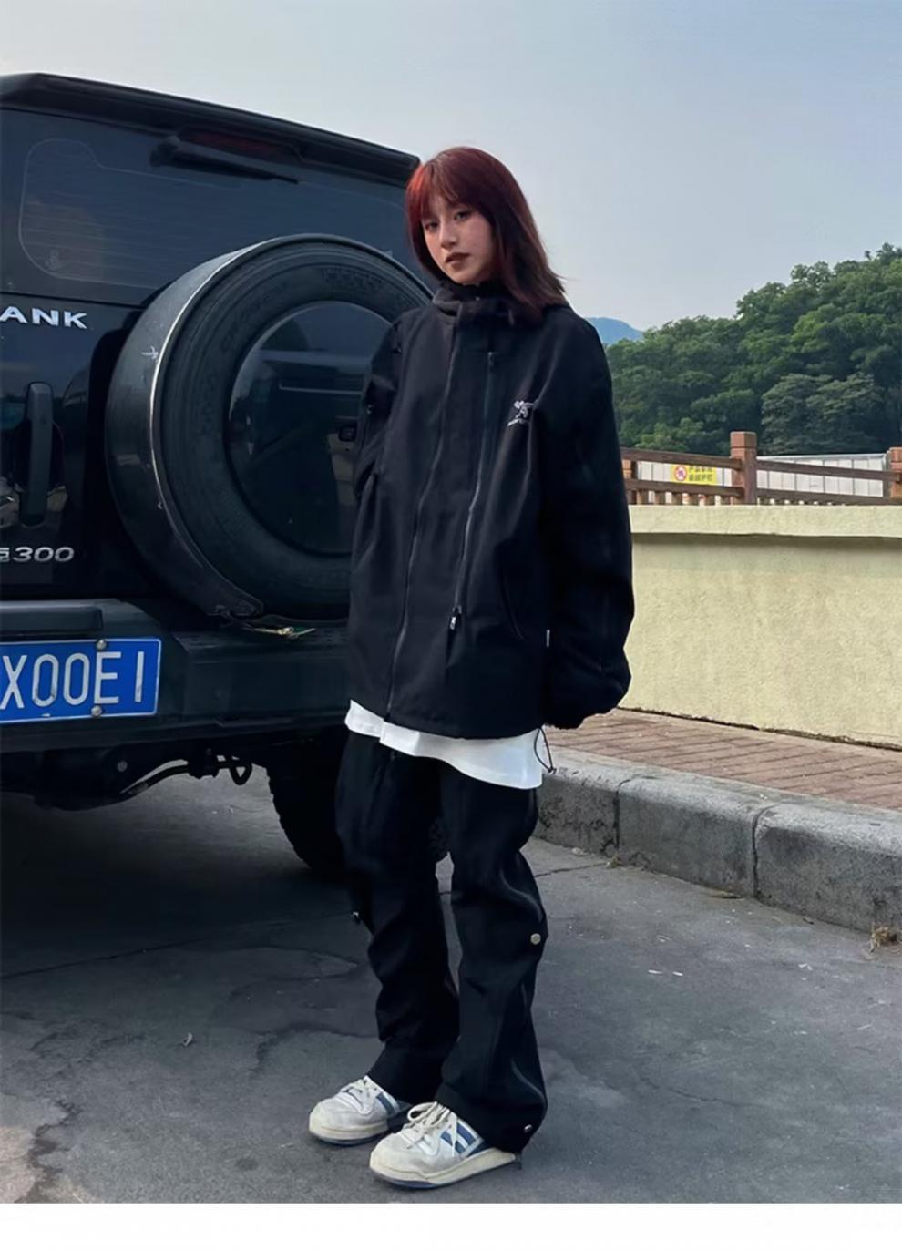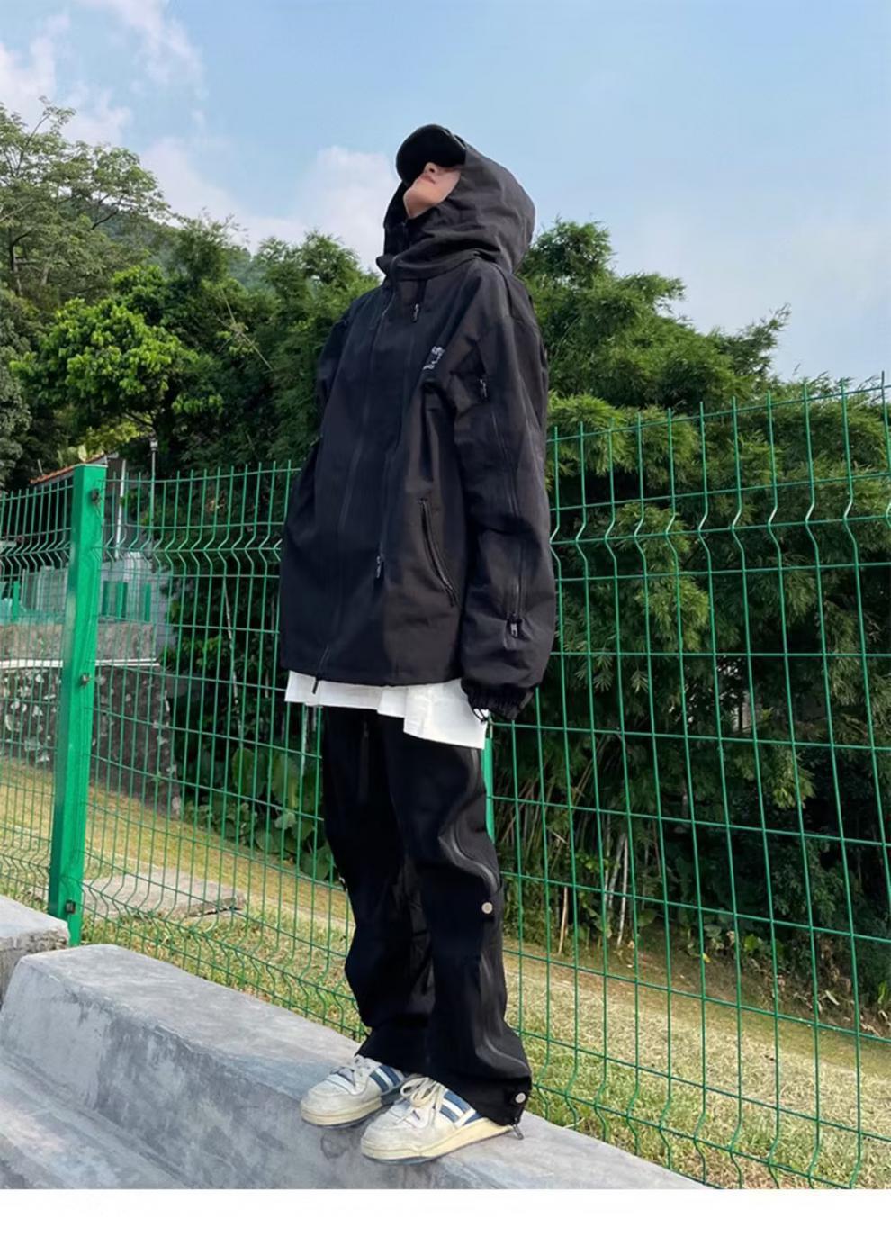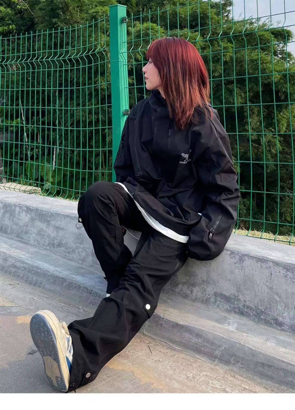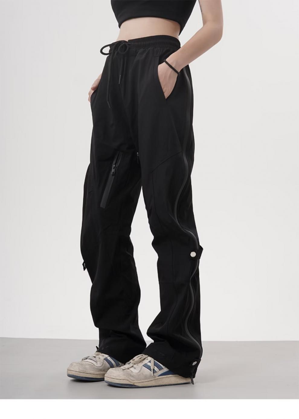 에 유행 야외 방수 바지 여성 지퍼 기능성 캐주얼 바지 남성과 여성의 느슨한 스트레이트 걸레 바지
