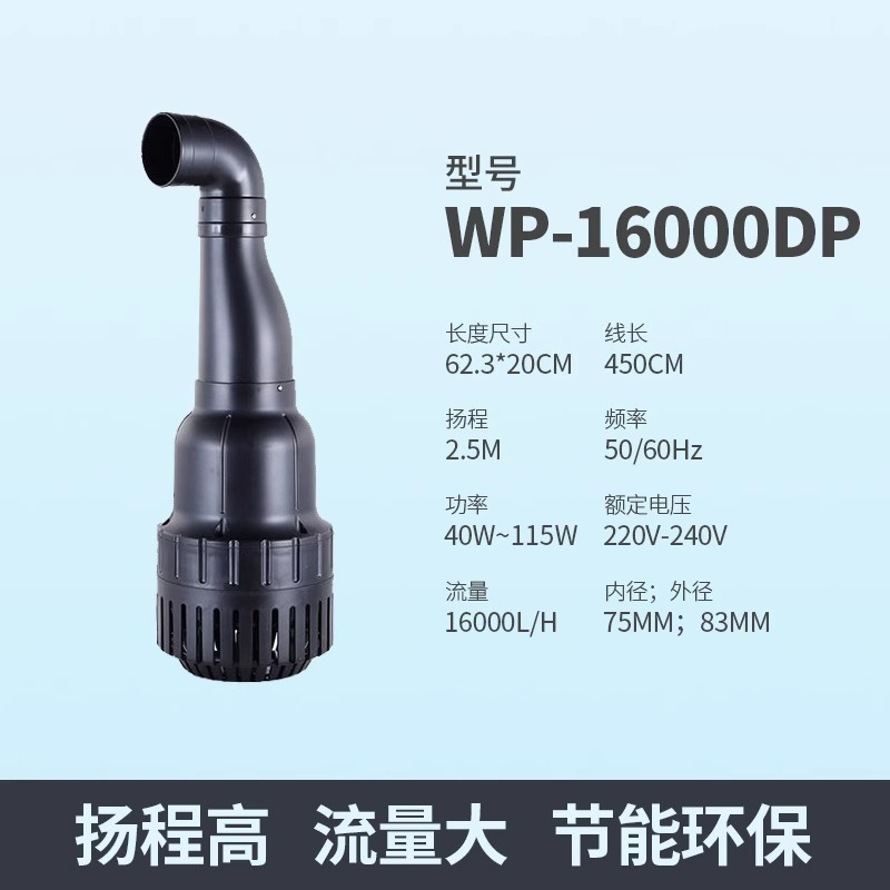 | 超大功流量鱼池水泵 | WP-16000DP | 2 | 10.8 | 0.102 |