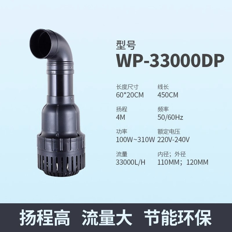 | 超大功流量鱼池水泵 | WP-33000DP | 2 | 15.5 | 0.102 |