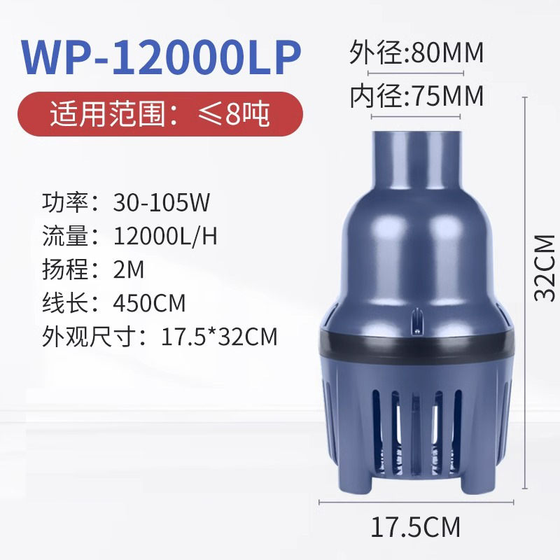 | 超大功流量鱼池水泵 | WP-12000LP | 2 | 10 | 0.103 |