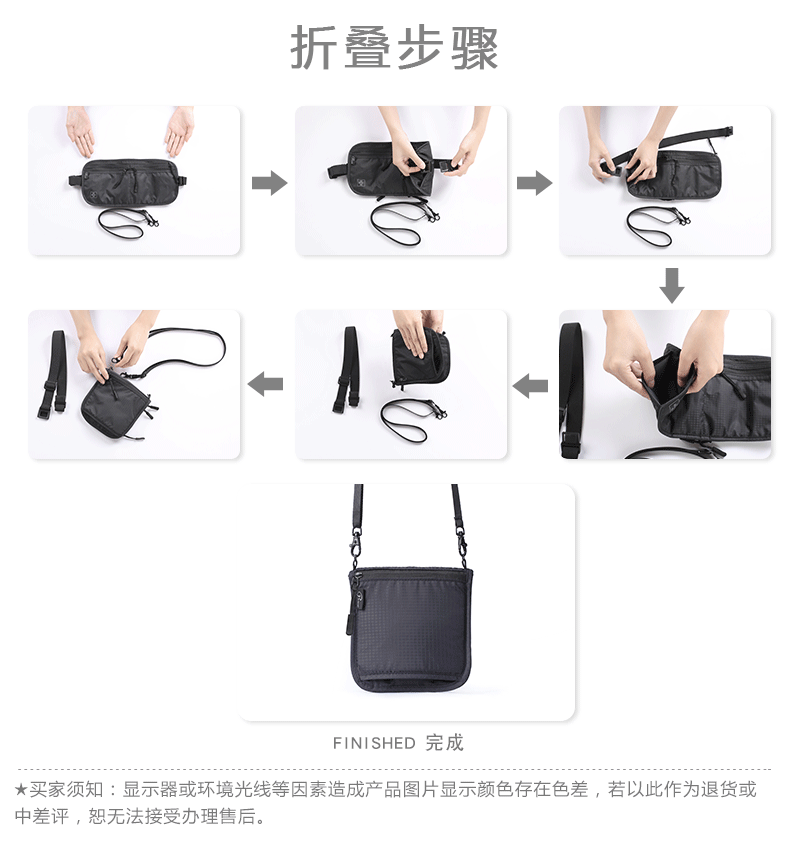 다기능 접이식 허리 가방 도난 방지 브러시 조정 가능한 사첼 인증서 저장 가방 대용량 휴대용 여행 필수품스토어 가기