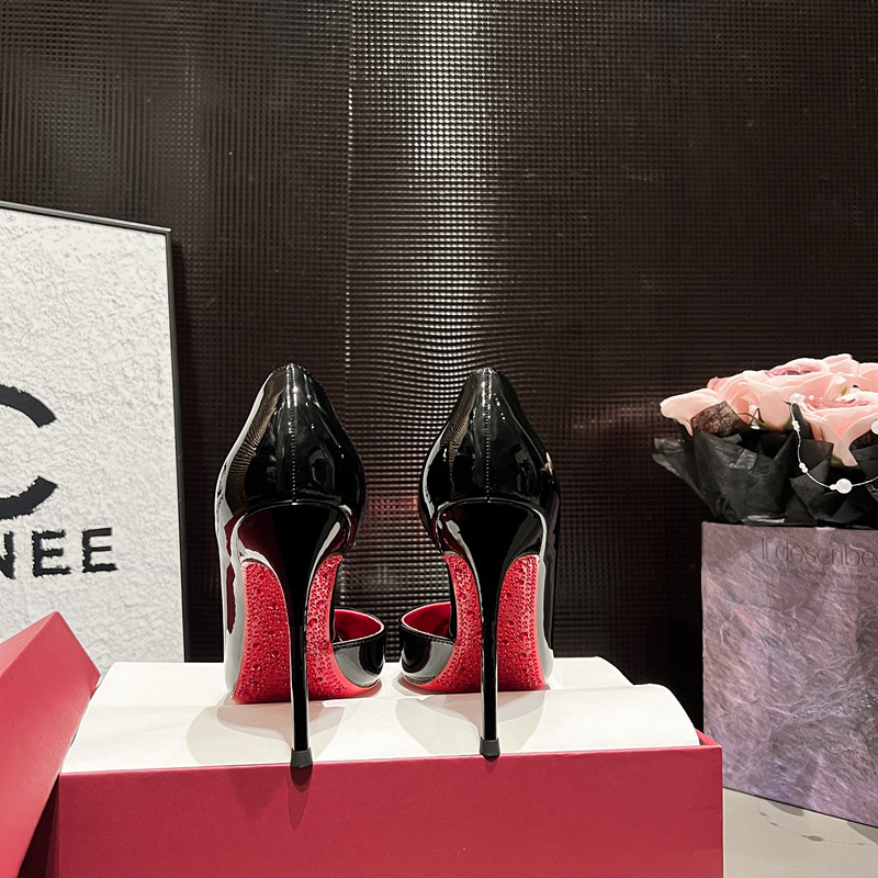 라인스톤 레드 바닥 사이드 빈 마이크로 화이버 하이힐, 아름다운 웨딩 슈즈, 블랙 누드 컬러, 슈퍼 슬림 힐, 포인티드 토 여성화, 라이트 럭셔리스토어 가기