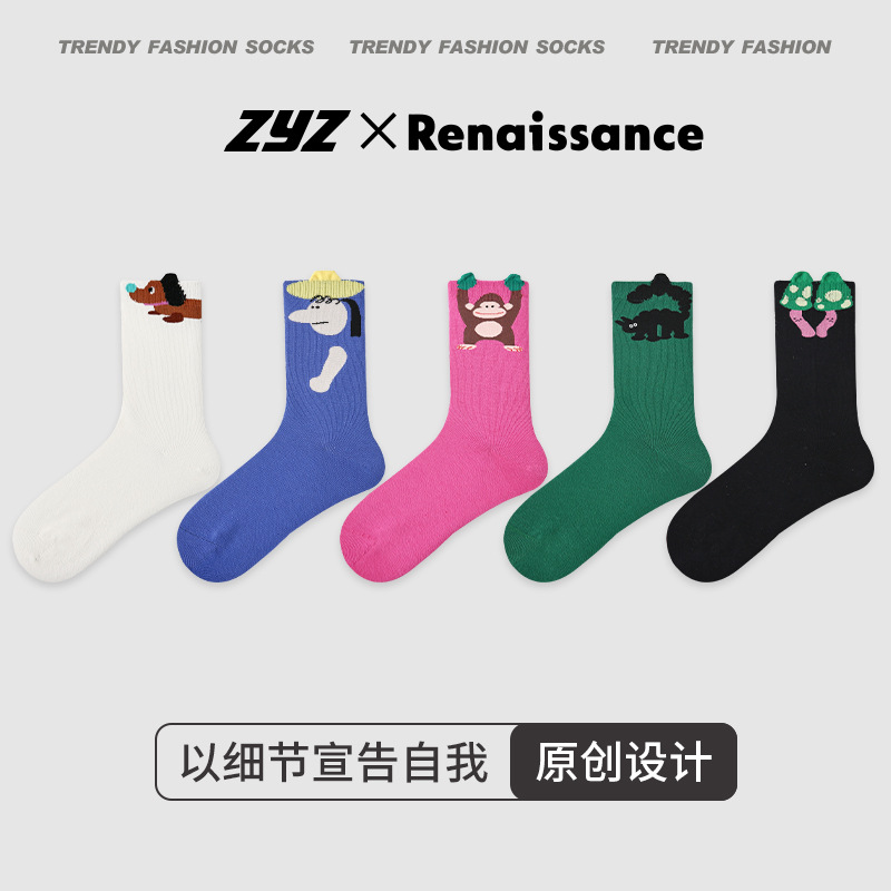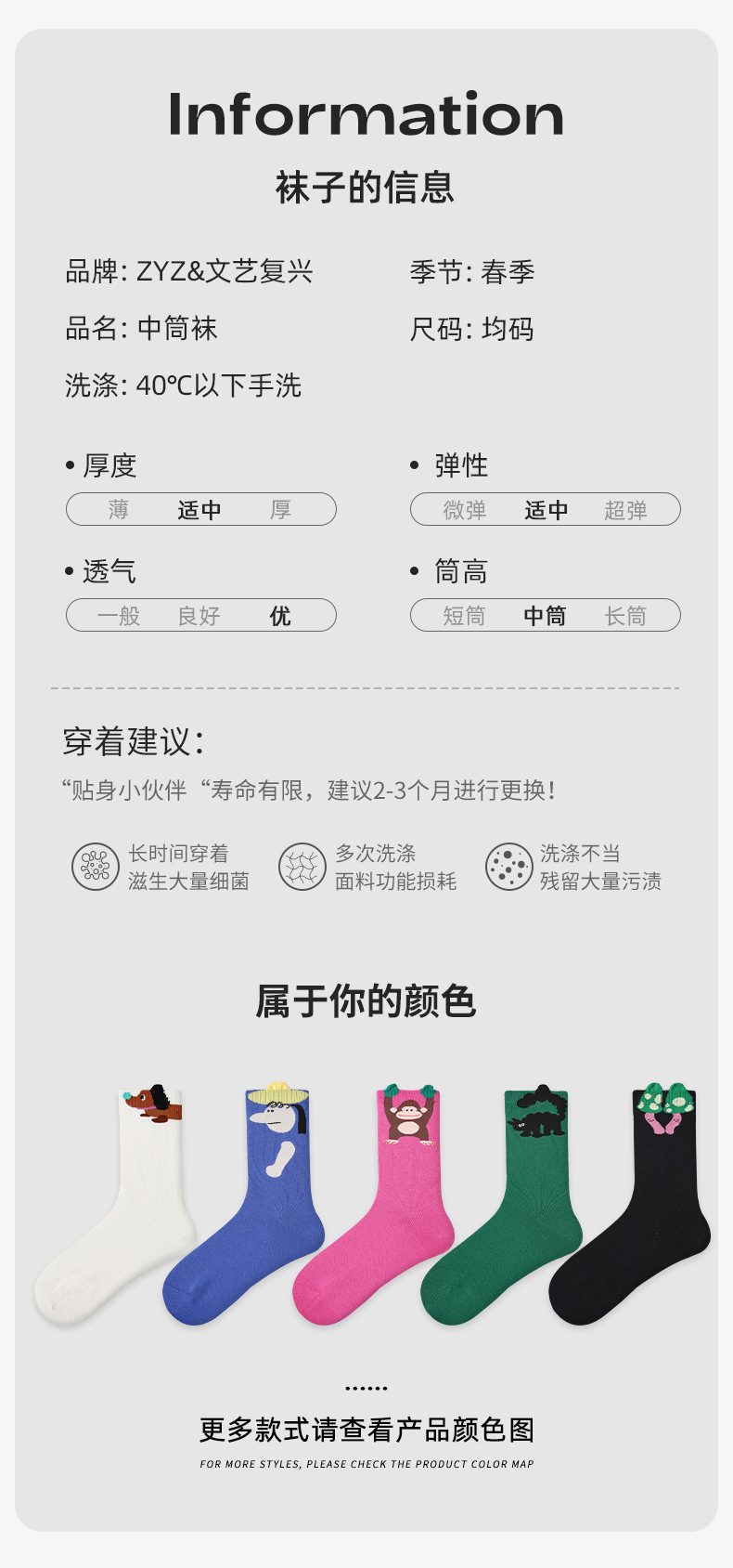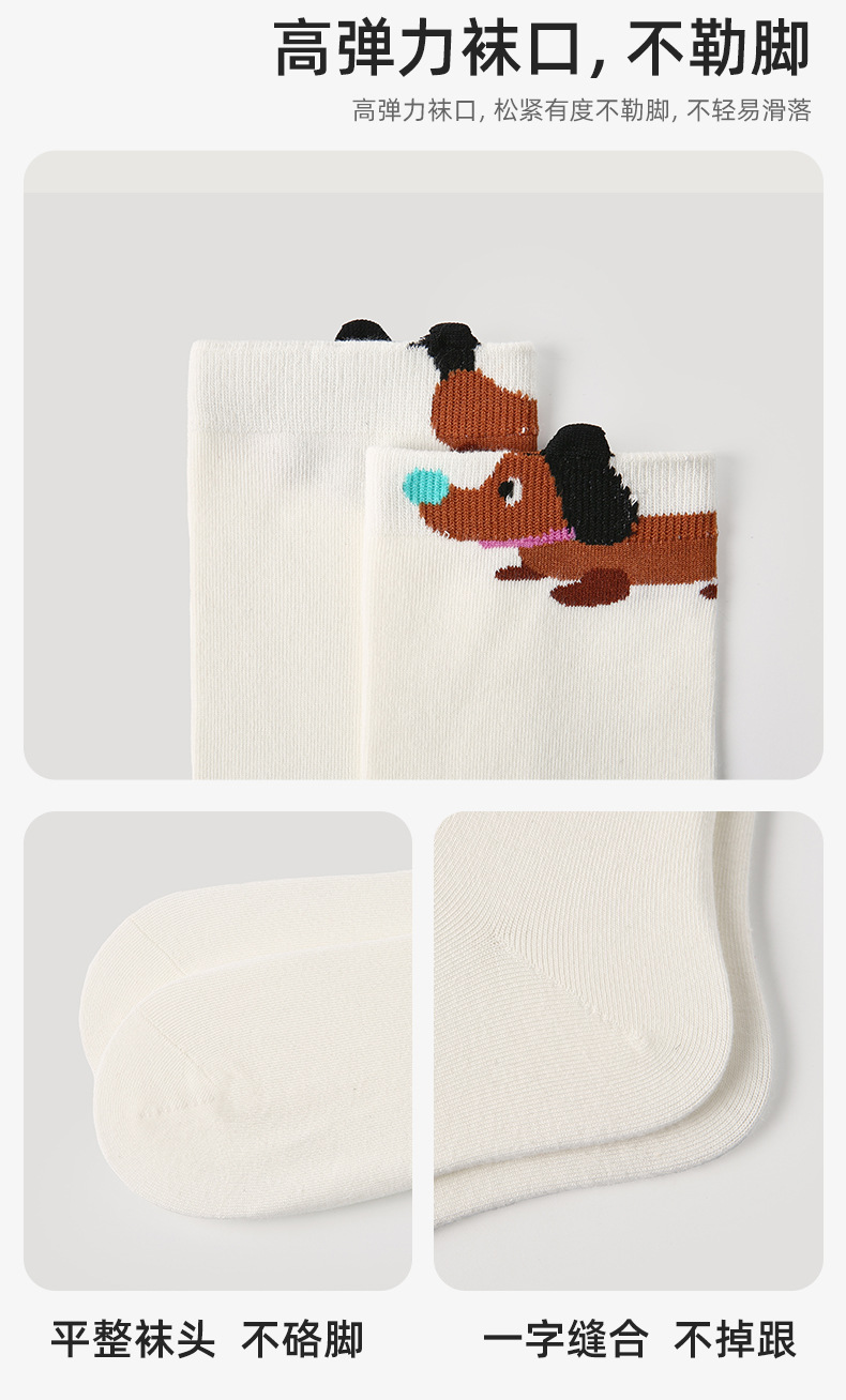 R8625 오리지널 여성 양말 2025 봄 여름 입체 강아지 양말 여성용 인스타 트렌드 무봉제 면 중목 양말 여성용