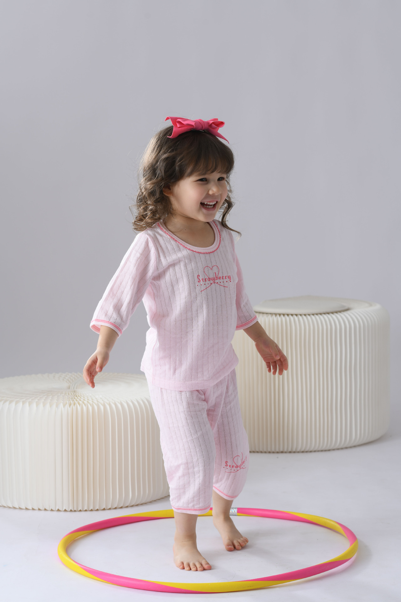 • 세로 줄무늬 꽃 딸기 분말 국 인쇄 7 점 세트 (1 세트)