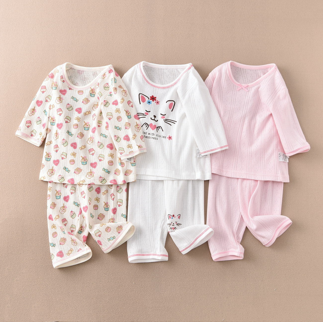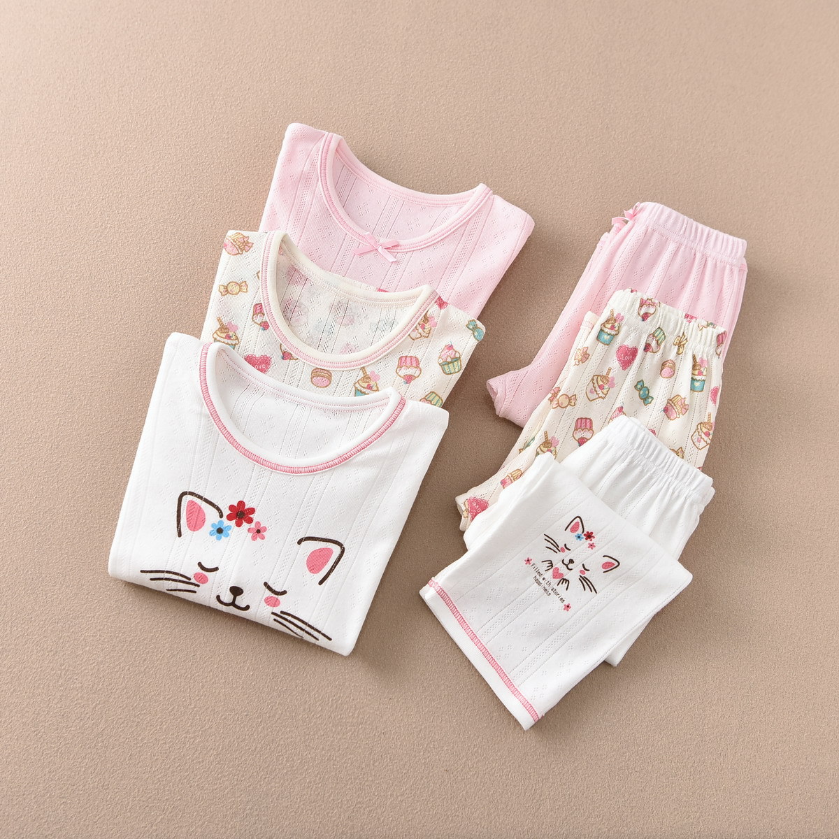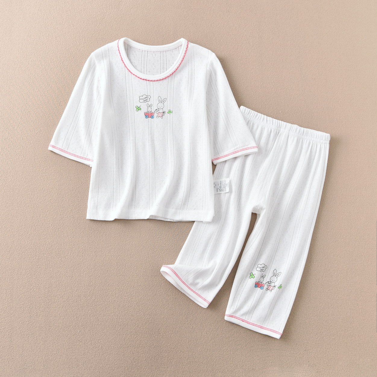 여자 7 분기 소매 크롭 팬츠 세트 홈 웨어 여름 얇은 순면 통기성 수출 일본 공장 직접 판매 A