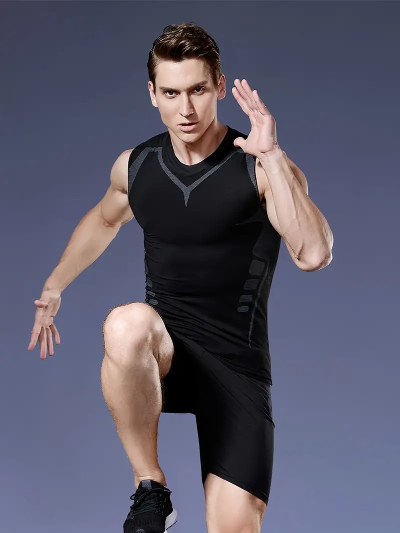 남자 스포츠 조끼 피트니스 달리기 농구 육상 훈련 높은 신축성 빠른 건조 통기성 민소매 양복 조끼 밑바닥 여름
