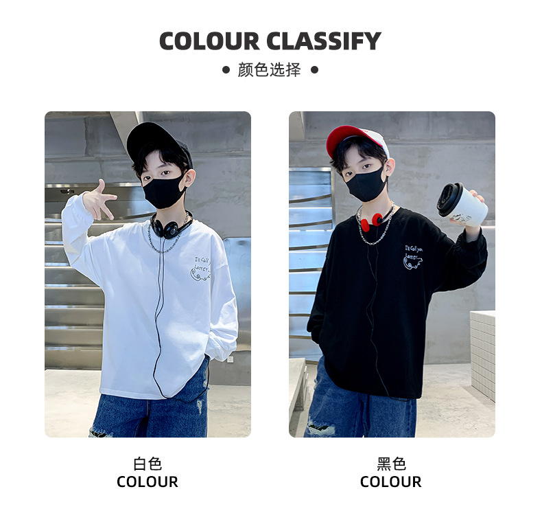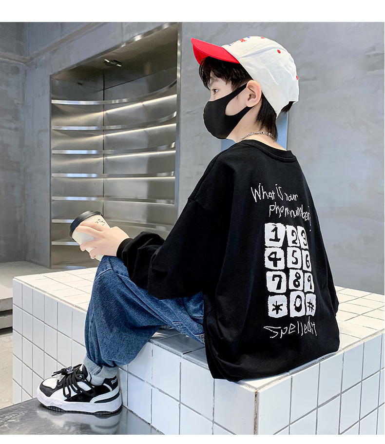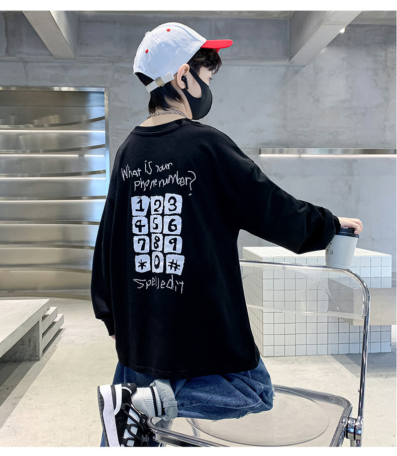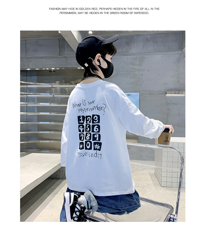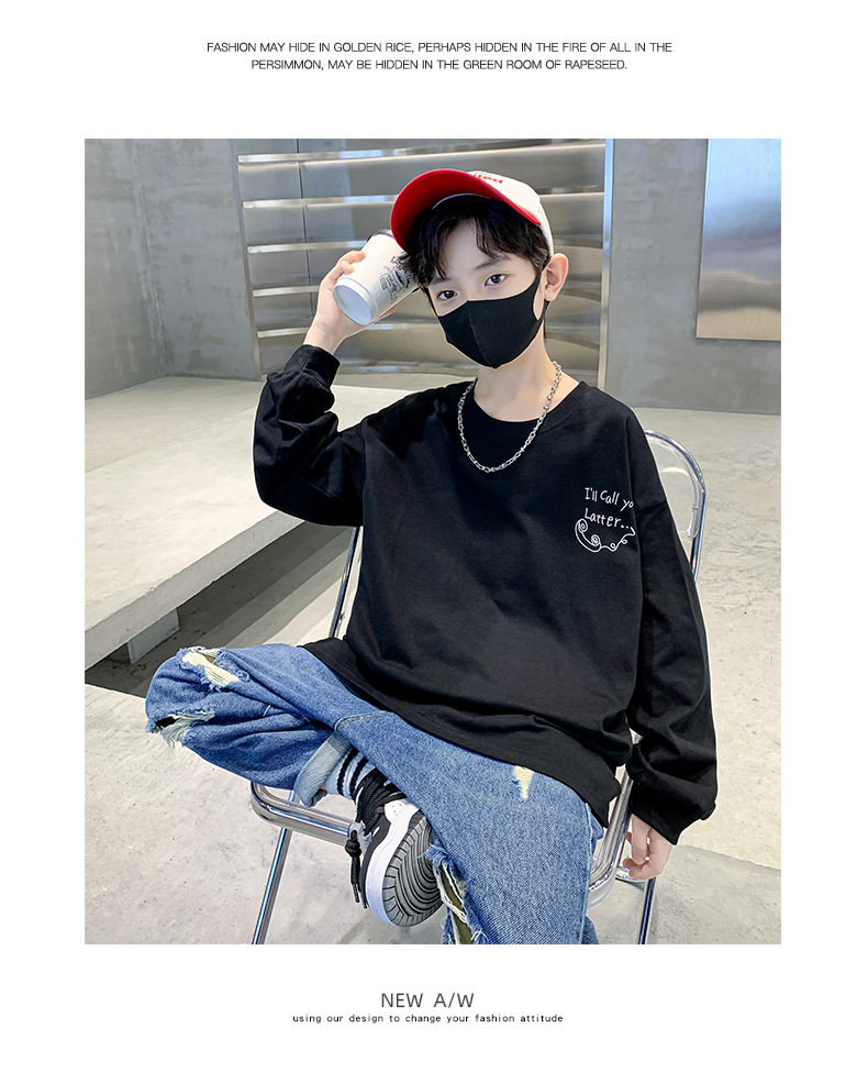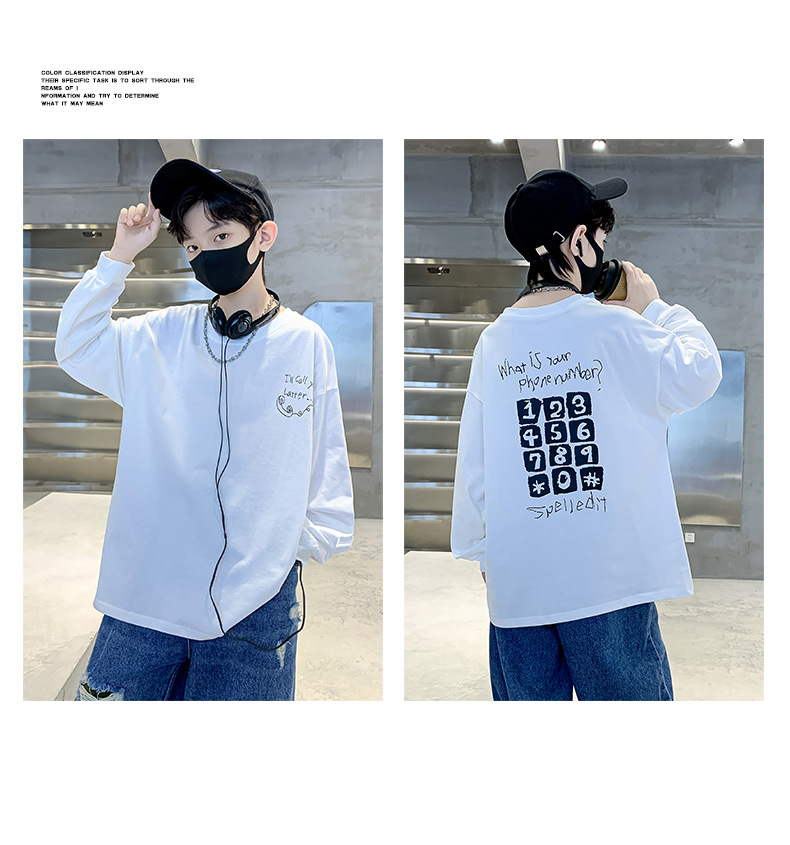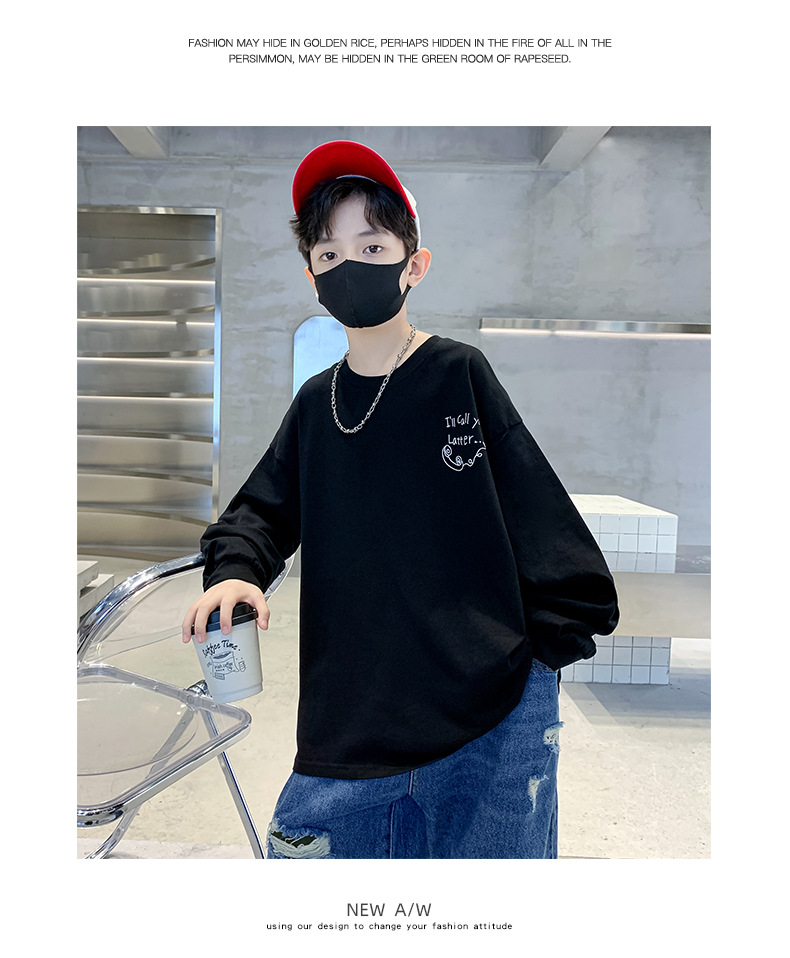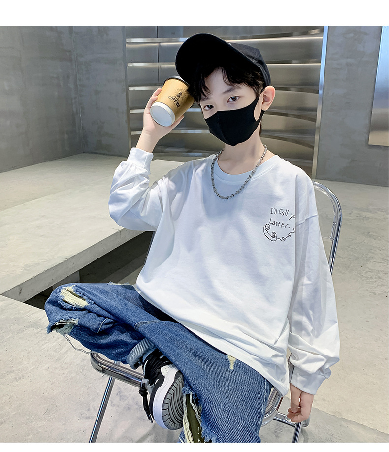 소년의 봄과 가을 긴팔 티셔츠는 새로운 미디어와 큰 아이들을 2024 남학생 탑 잘 생긴 봄 옷 바닥 셔츠 트렌디 8