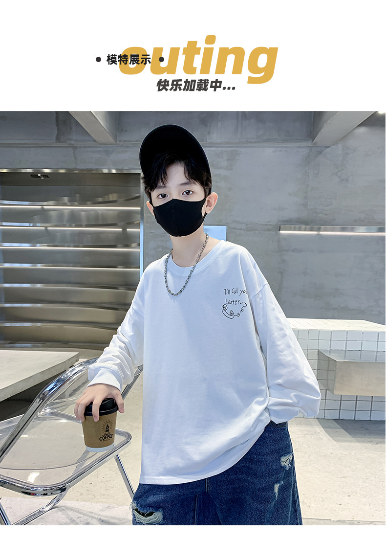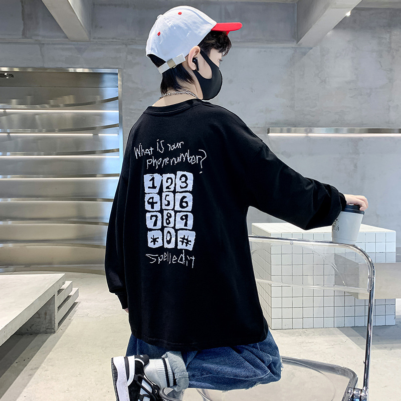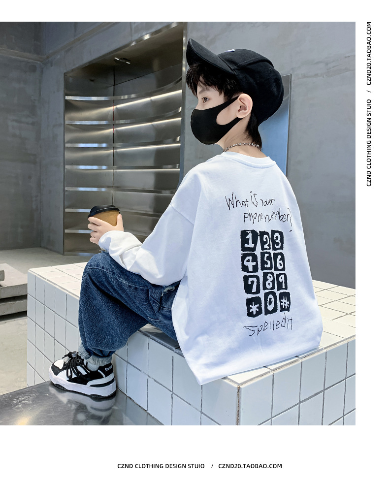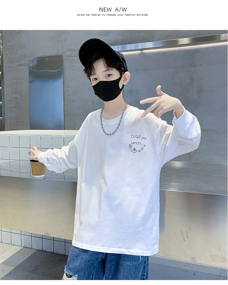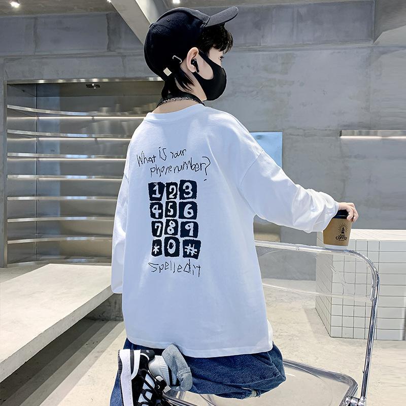 소년의 봄과 가을 긴팔 티셔츠는 새로운 미디어와 큰 아이들을 2024 남학생 탑 잘 생긴 봄 옷 바닥 셔츠 트렌디 8스토어 가기