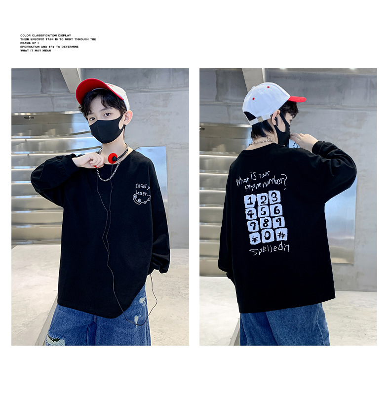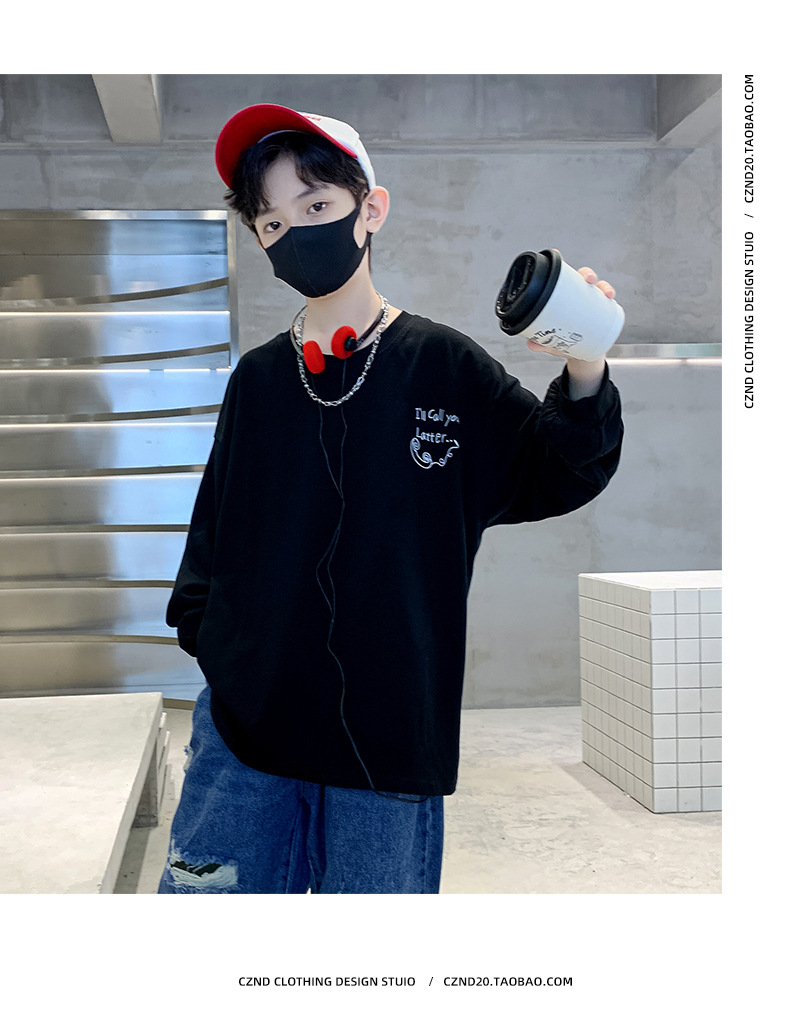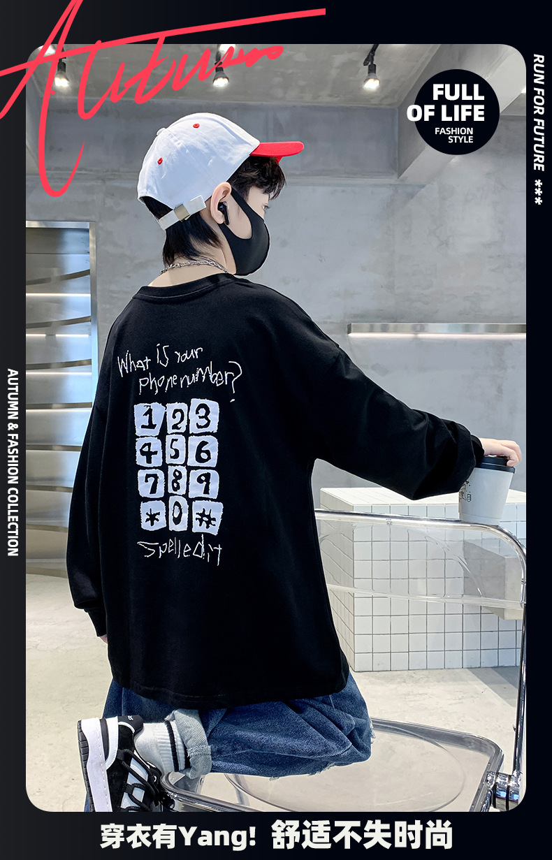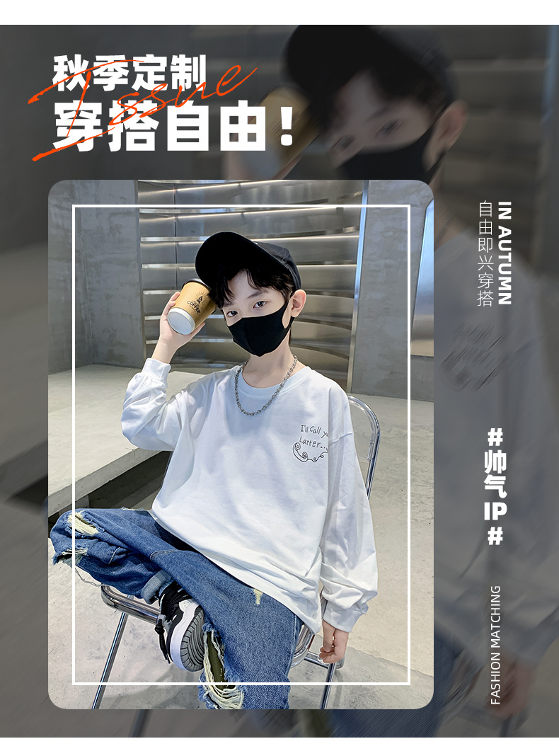 소년의 봄과 가을 긴팔 티셔츠는 새로운 미디어와 큰 아이들을 2024 남학생 탑 잘 생긴 봄 옷 바닥 셔츠 트렌디 8스토어 가기