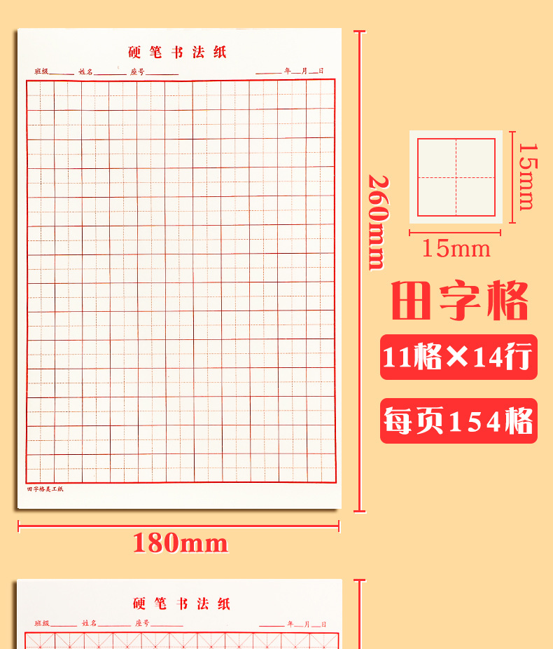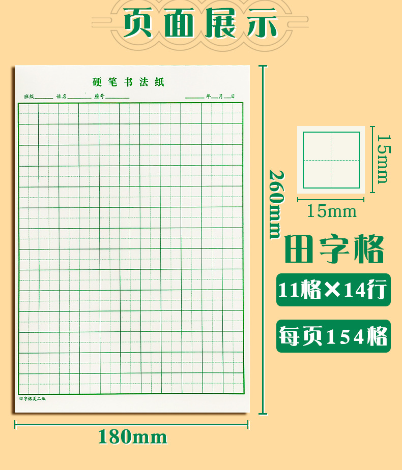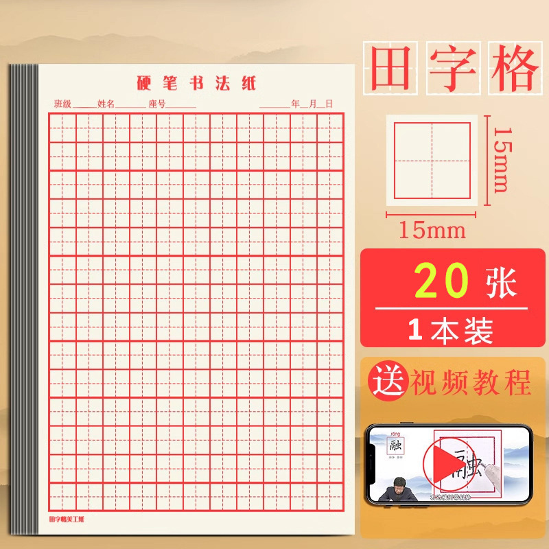 Mi Zi Ge Tian Zi Ge 캐릭터 연습 도서 하드 펜 서예 종이 연습 쓰기 종이 경쟁 작품 특별스토어 가기