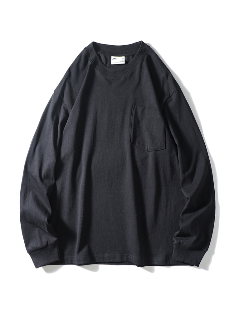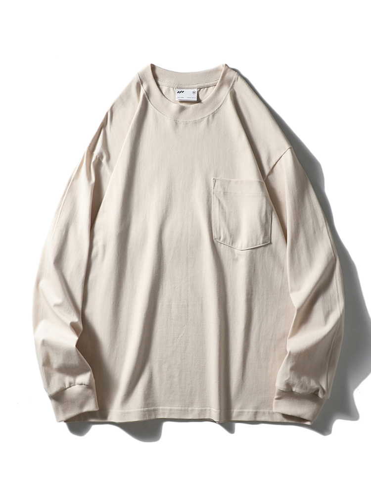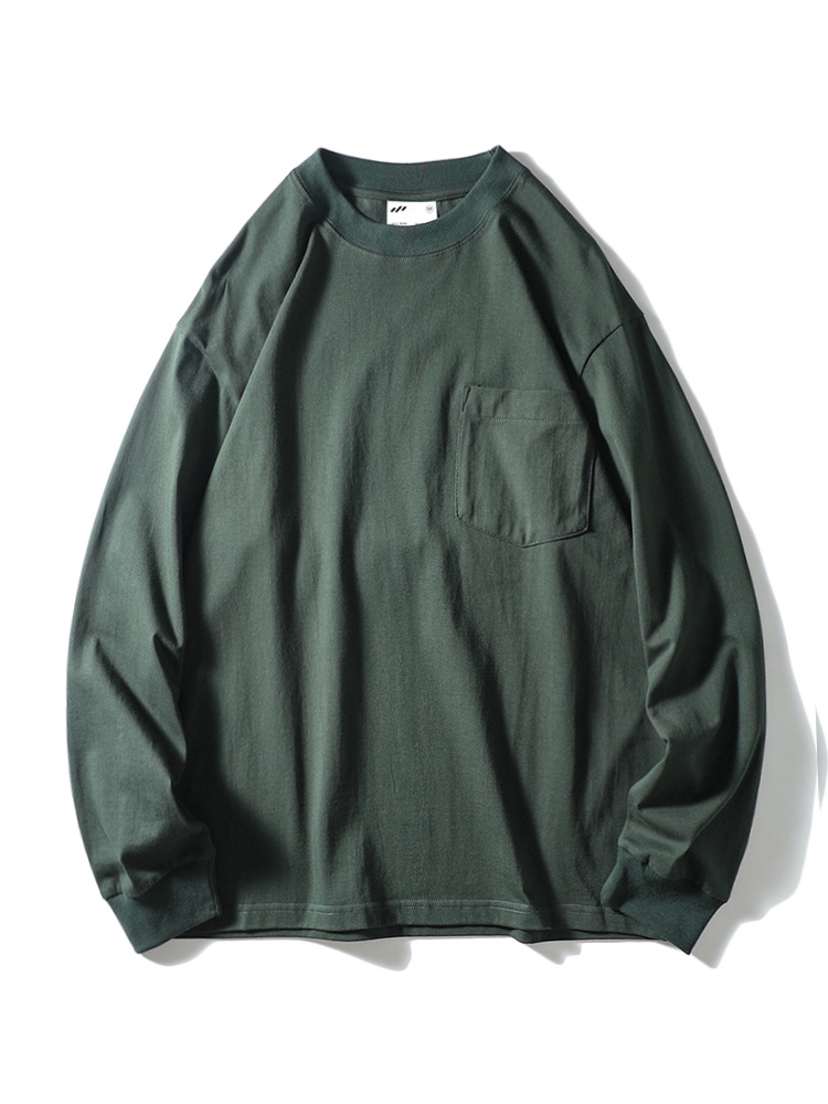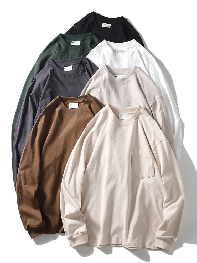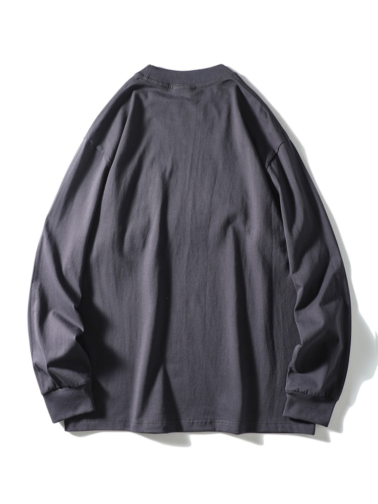 纯色运动休闲打底衫百搭宽松螺纹圆领套头松紧口长袖T!