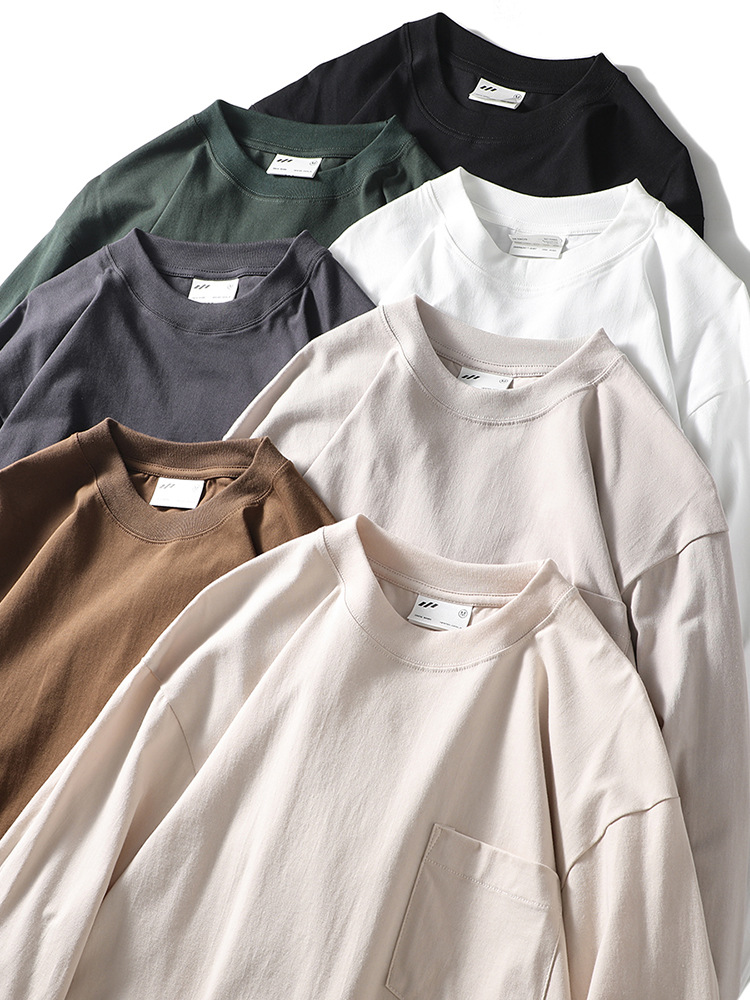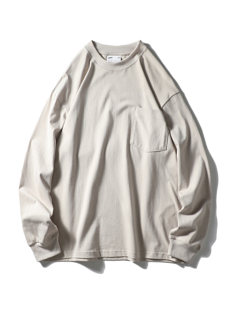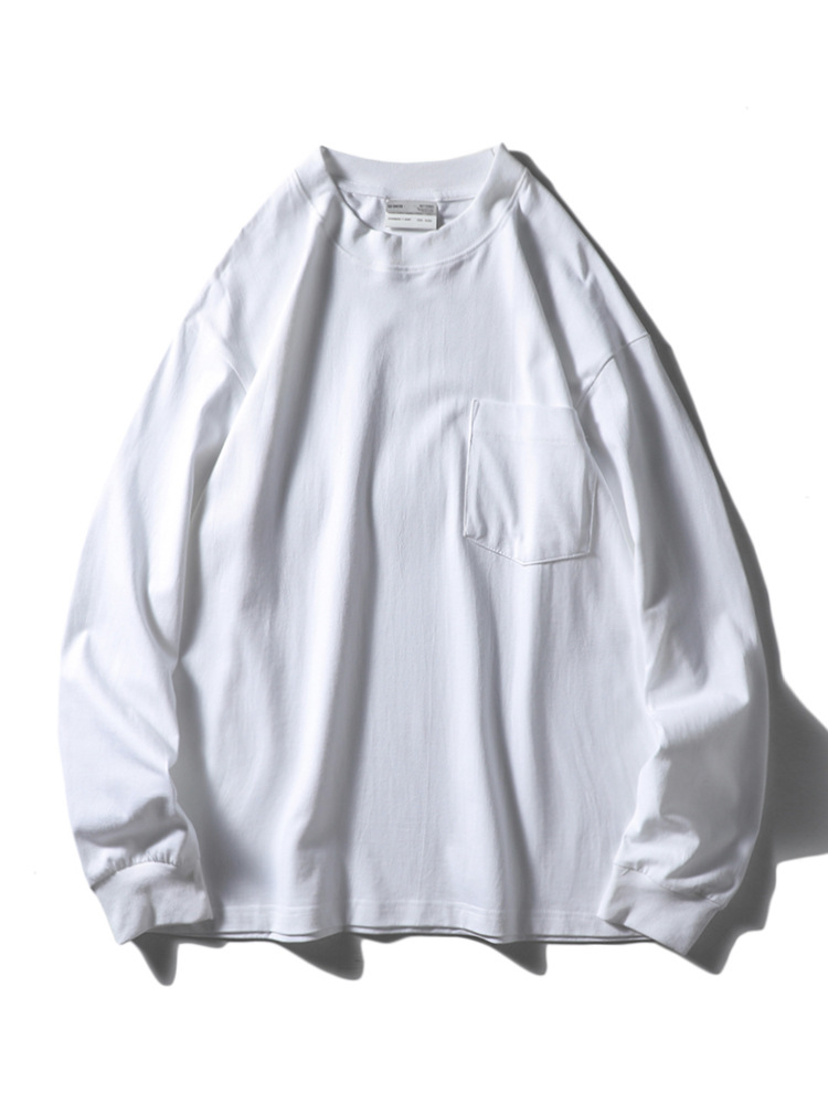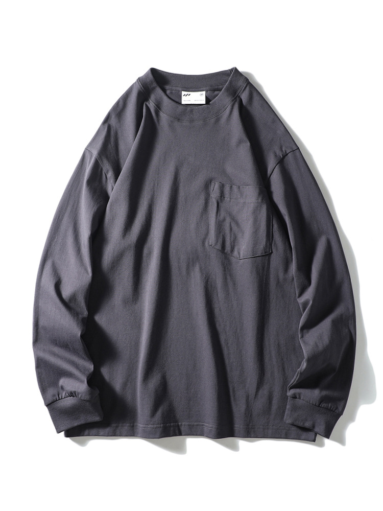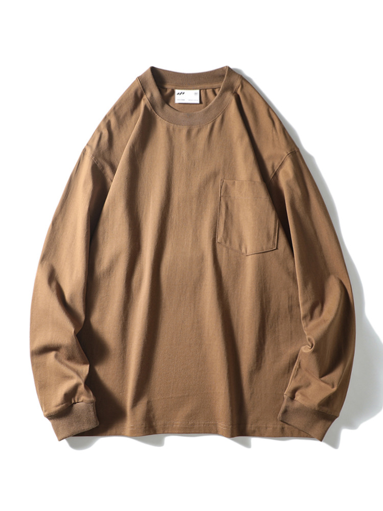 纯色运动休闲打底衫百搭宽松螺纹圆领套头松紧口长袖T!
