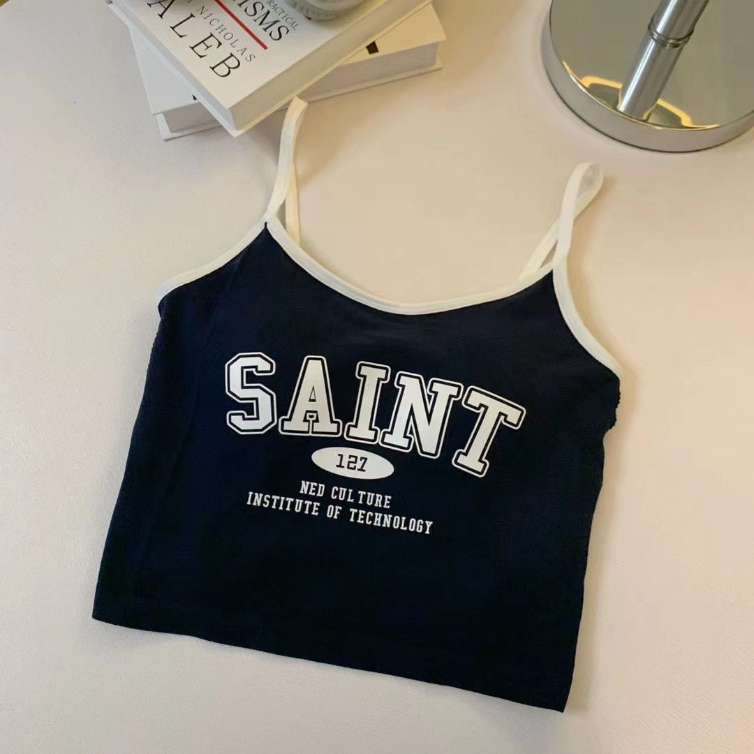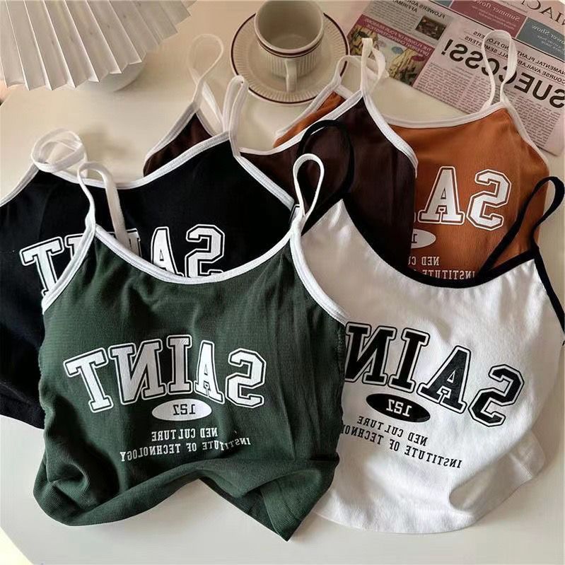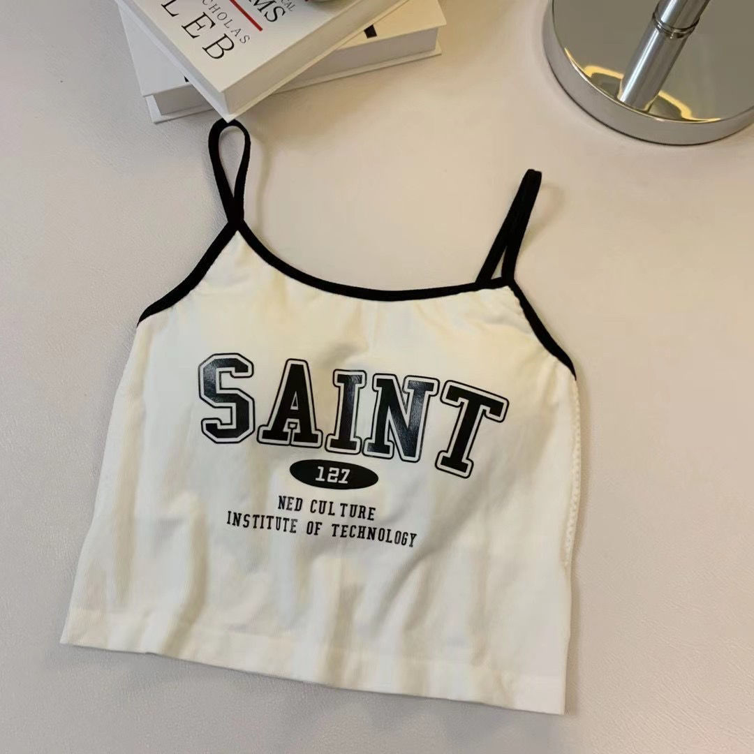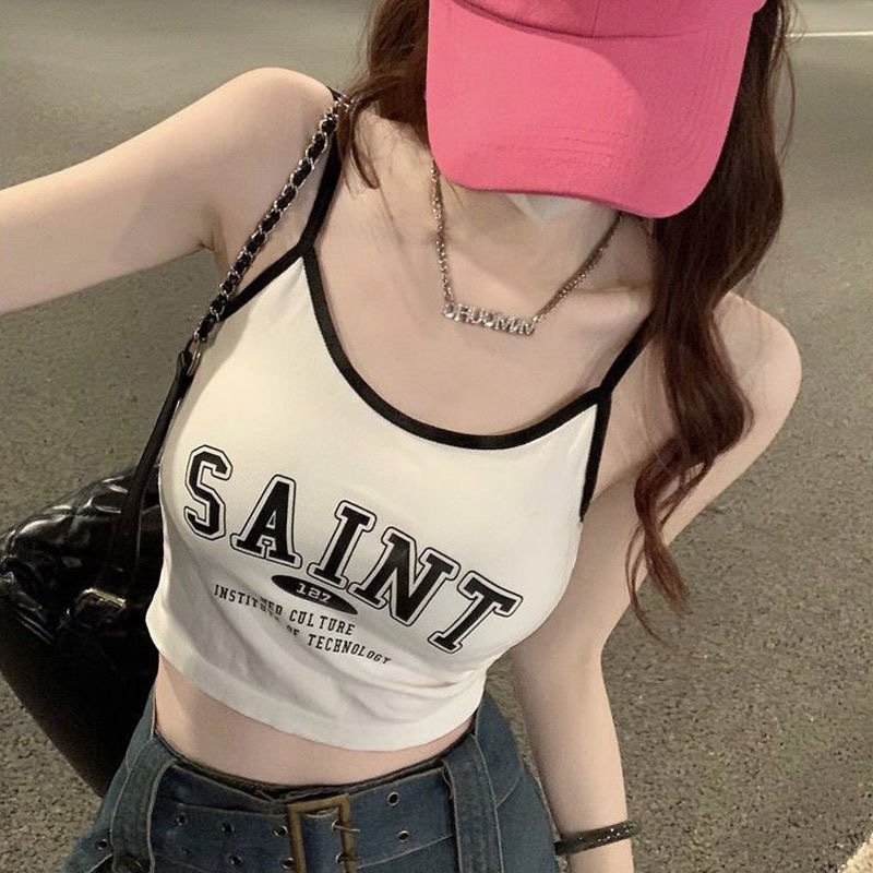 여름 틈새 새 편지 프린트 캐미솔 여성용 원피스 이너 웨어 뷰티 백 핫 소녀 바닥 쇼트 탑