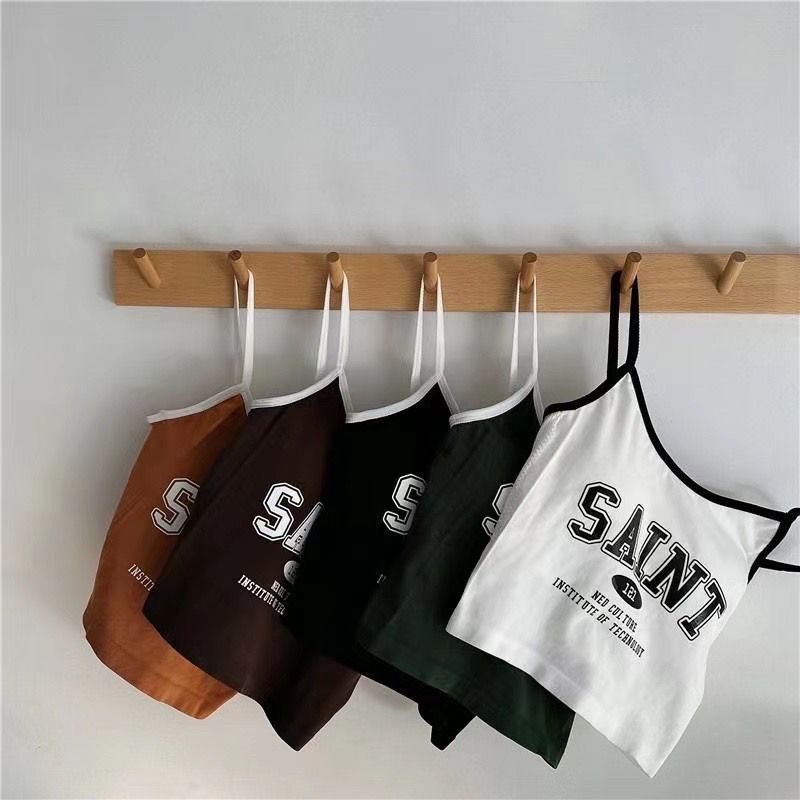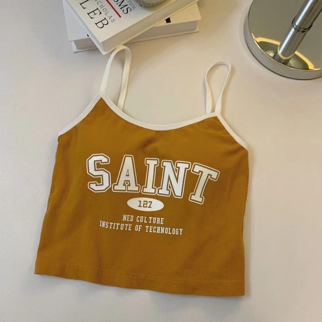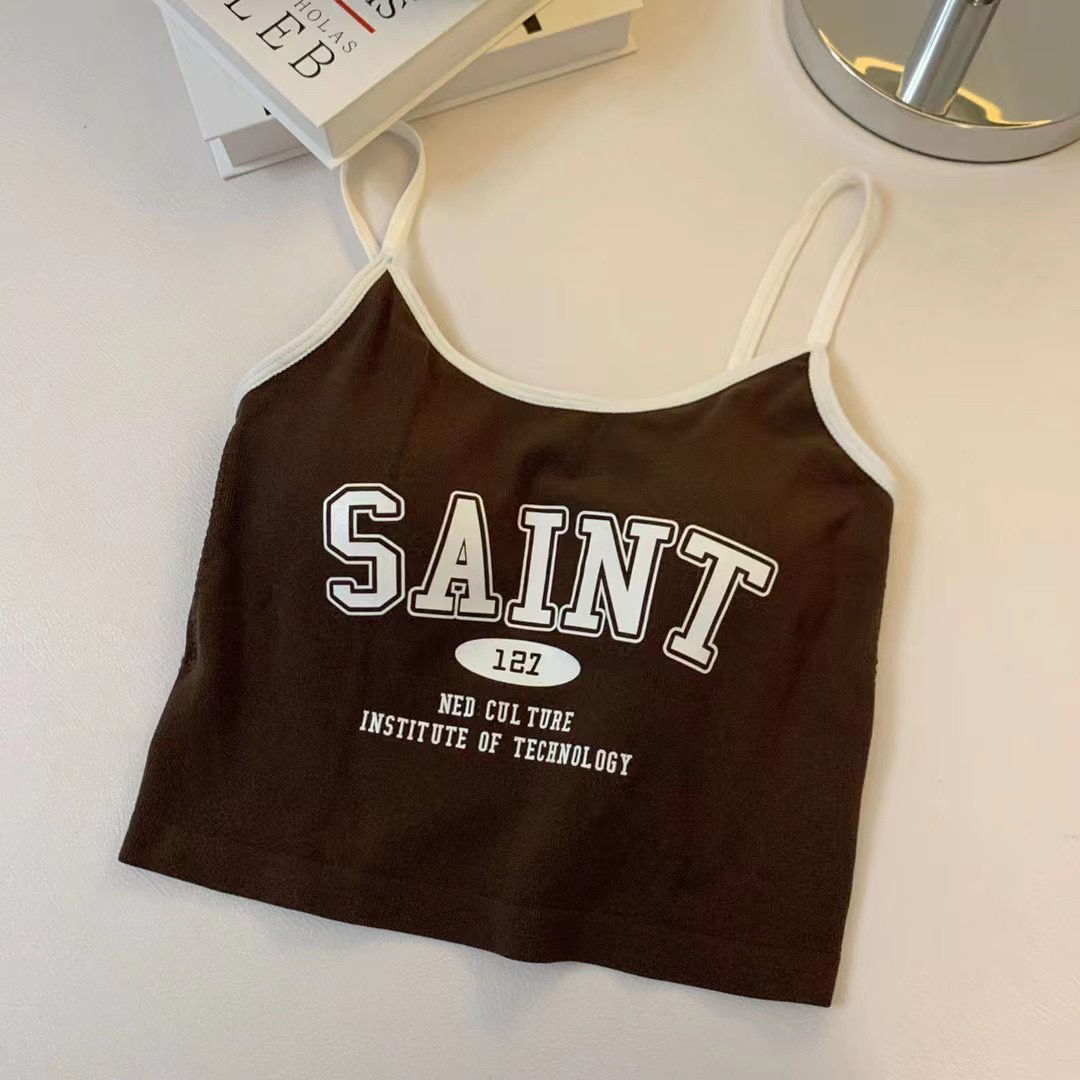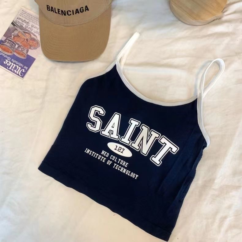 여름 틈새 새 편지 프린트 캐미솔 여성용 원피스 이너 웨어 뷰티 백 핫 소녀 바닥 쇼트 탑