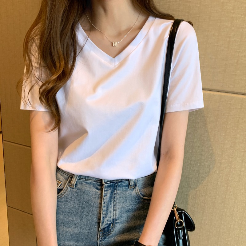 2024 새로운면 어깨 치킨 하트 칼라 여름 하프 슬리브 탑이있는 여성용 반소매 흰색 바닥 셔츠스토어 가기