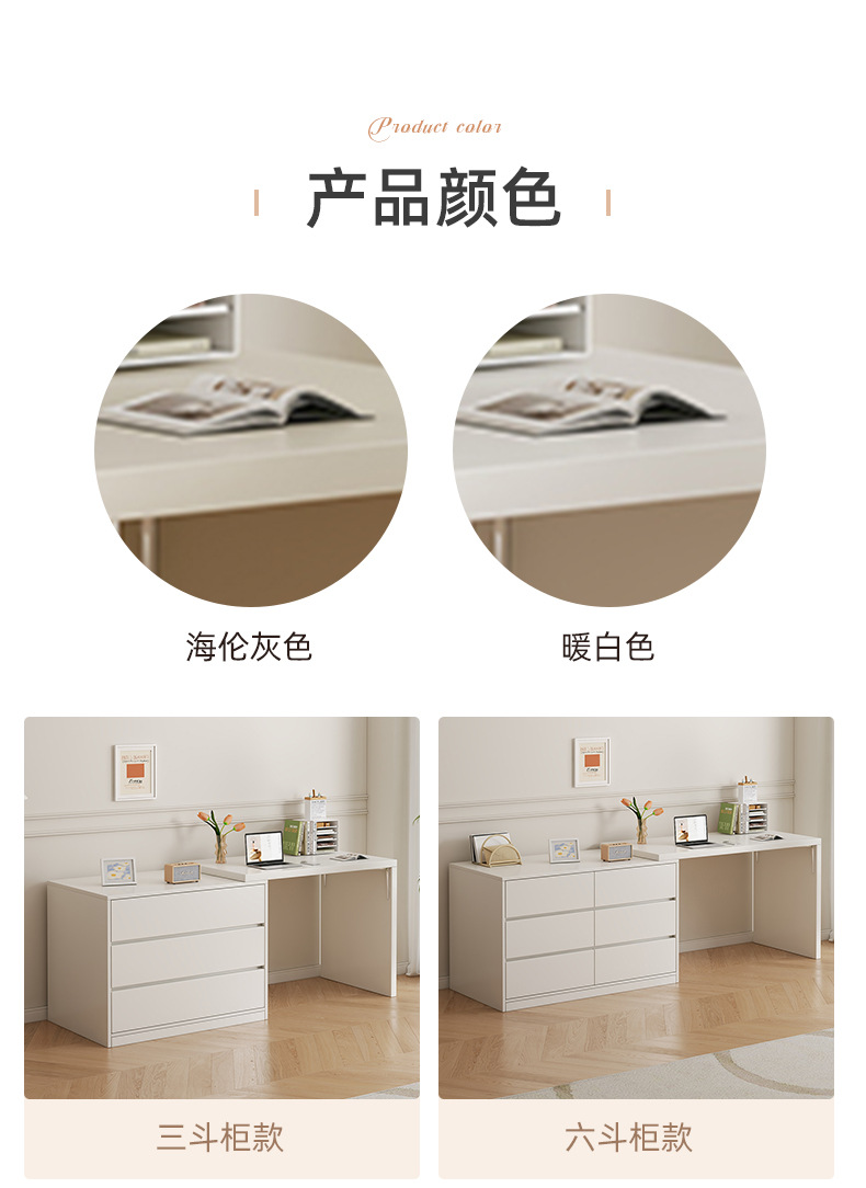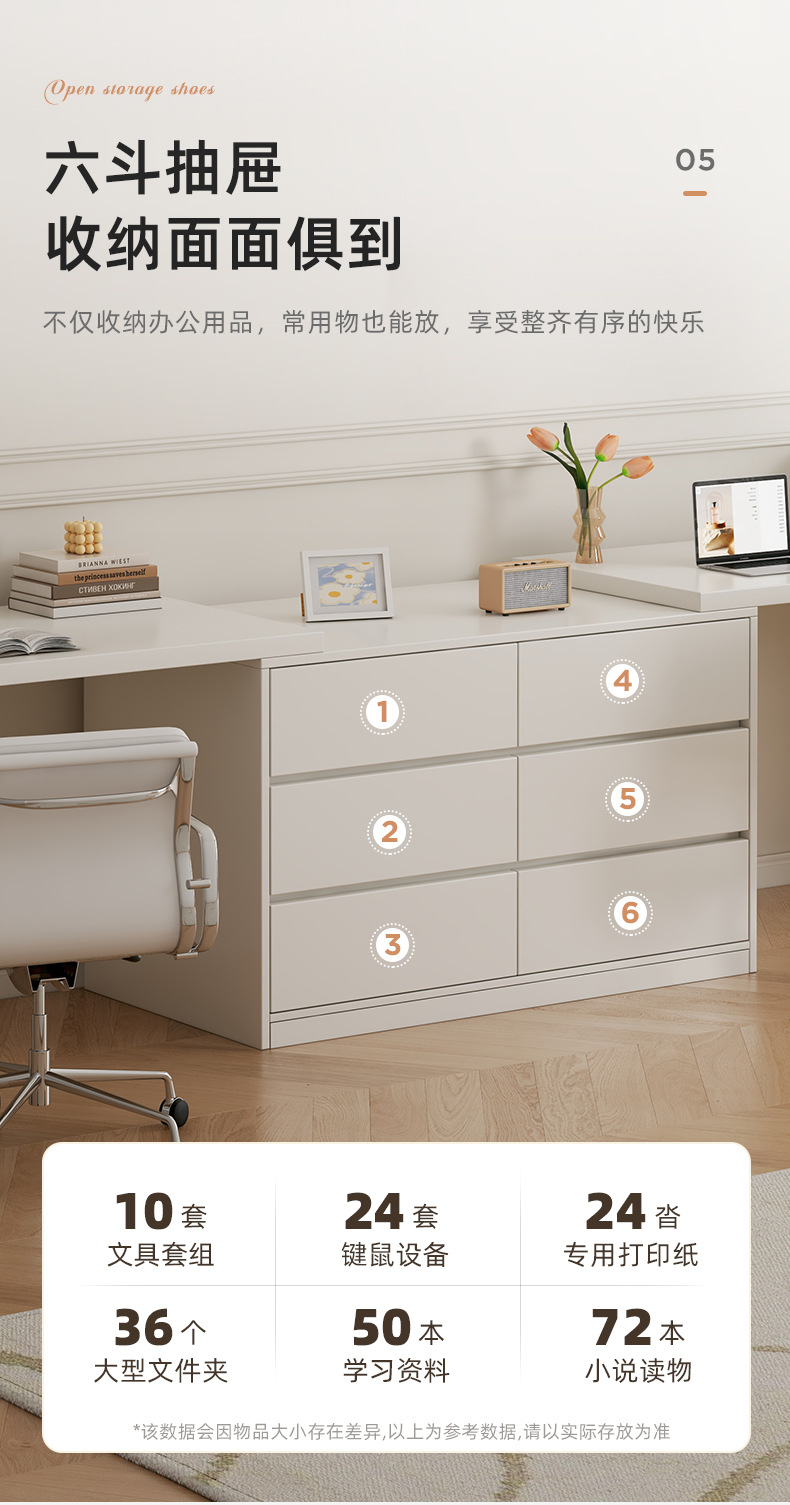 • 따뜻한 흰색 120cm 테이블 120cm 6 서랍 캐비닛