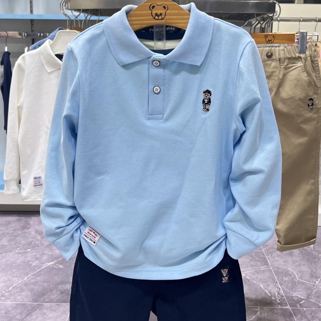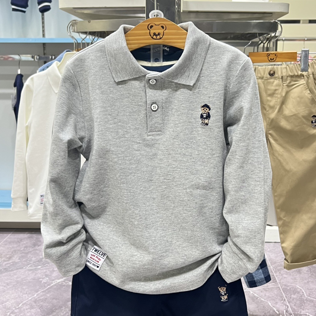 작은 곰 아동복 신상품 봄 가을 남아용 순면 메쉬 코튼 티셔츠 HA233801B, 원피스 배송 지원