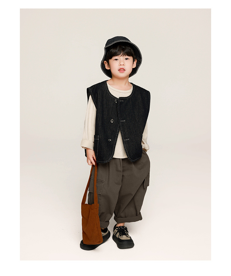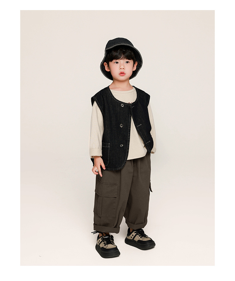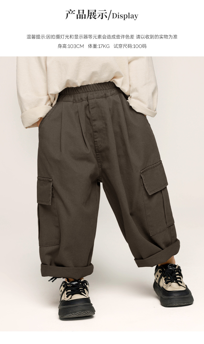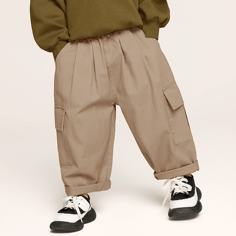 창궈 의류 남아 작업복 바지 봄옷 아동 봄가을 바지 중소형 아동 한국 스타일 면바지 캐주얼 바지