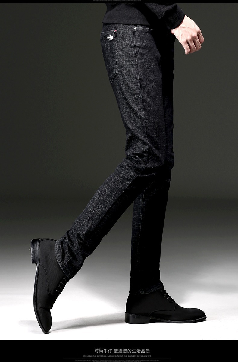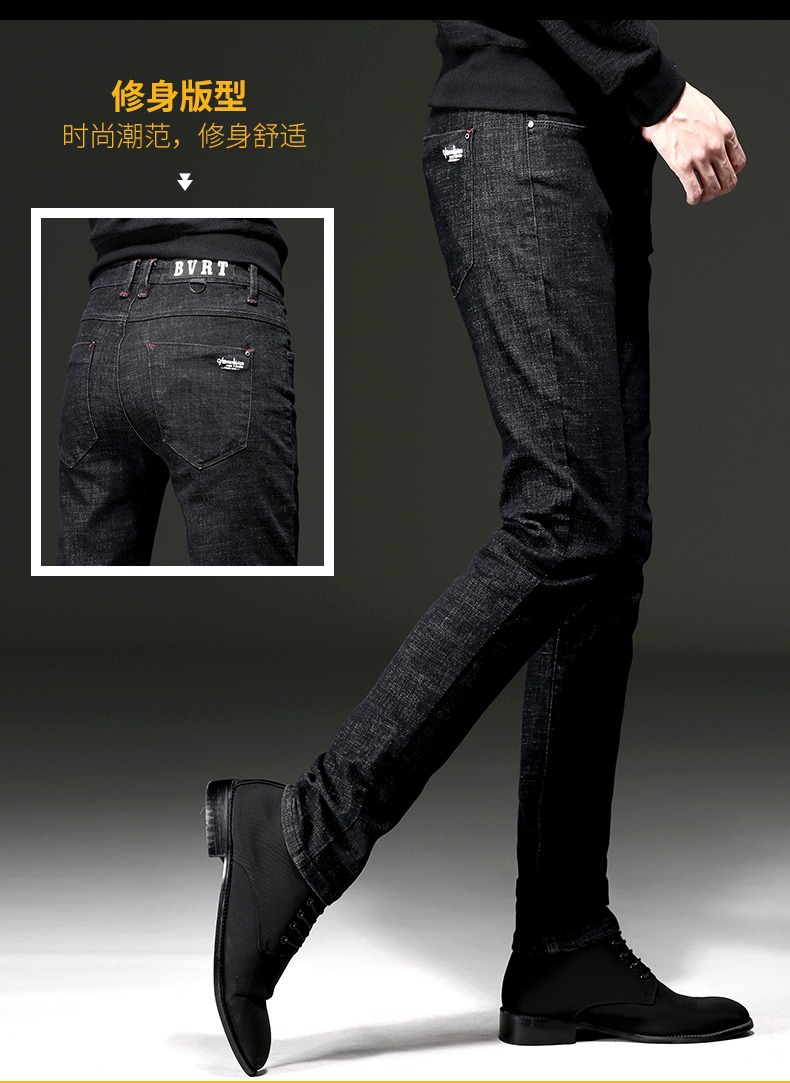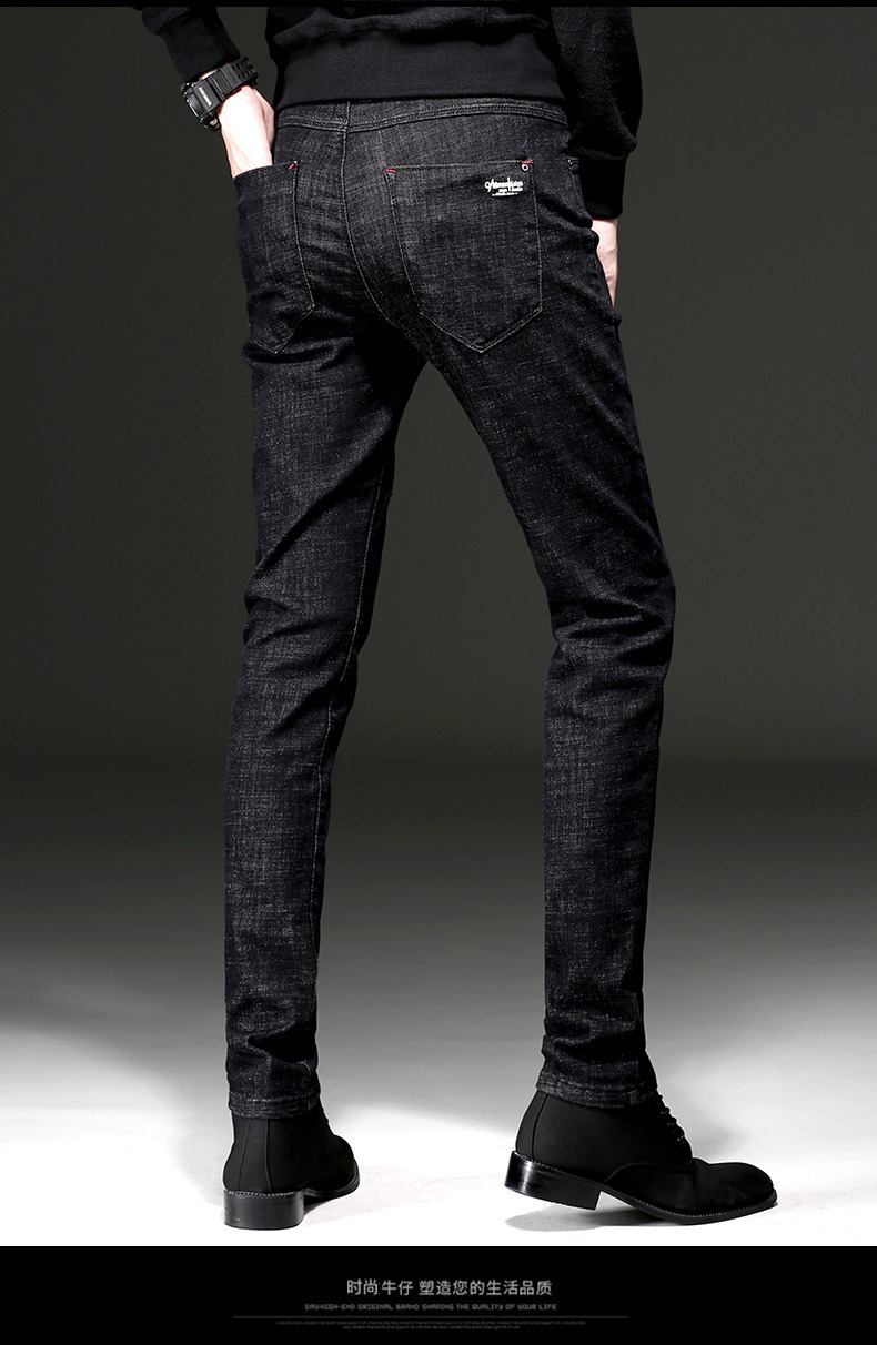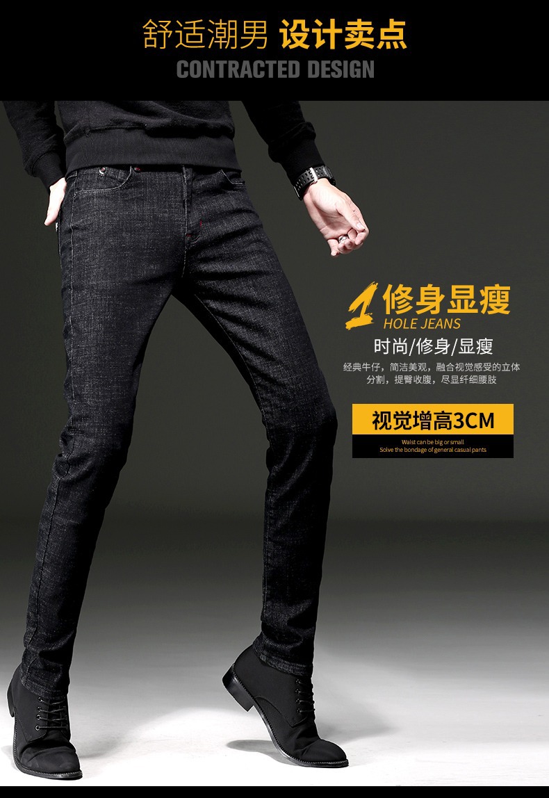 홍콩 블랙 청바지 남성 2023 새로운 봄과 가을 패션 브랜드 슬림 핏 스키니 하이 엔드 기모 두꺼운 스트레치 바지스토어 가기
