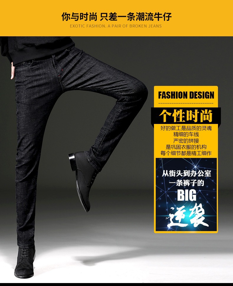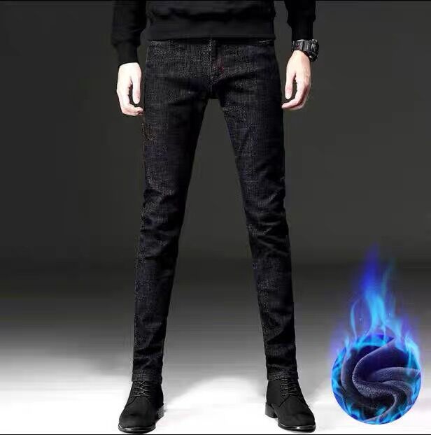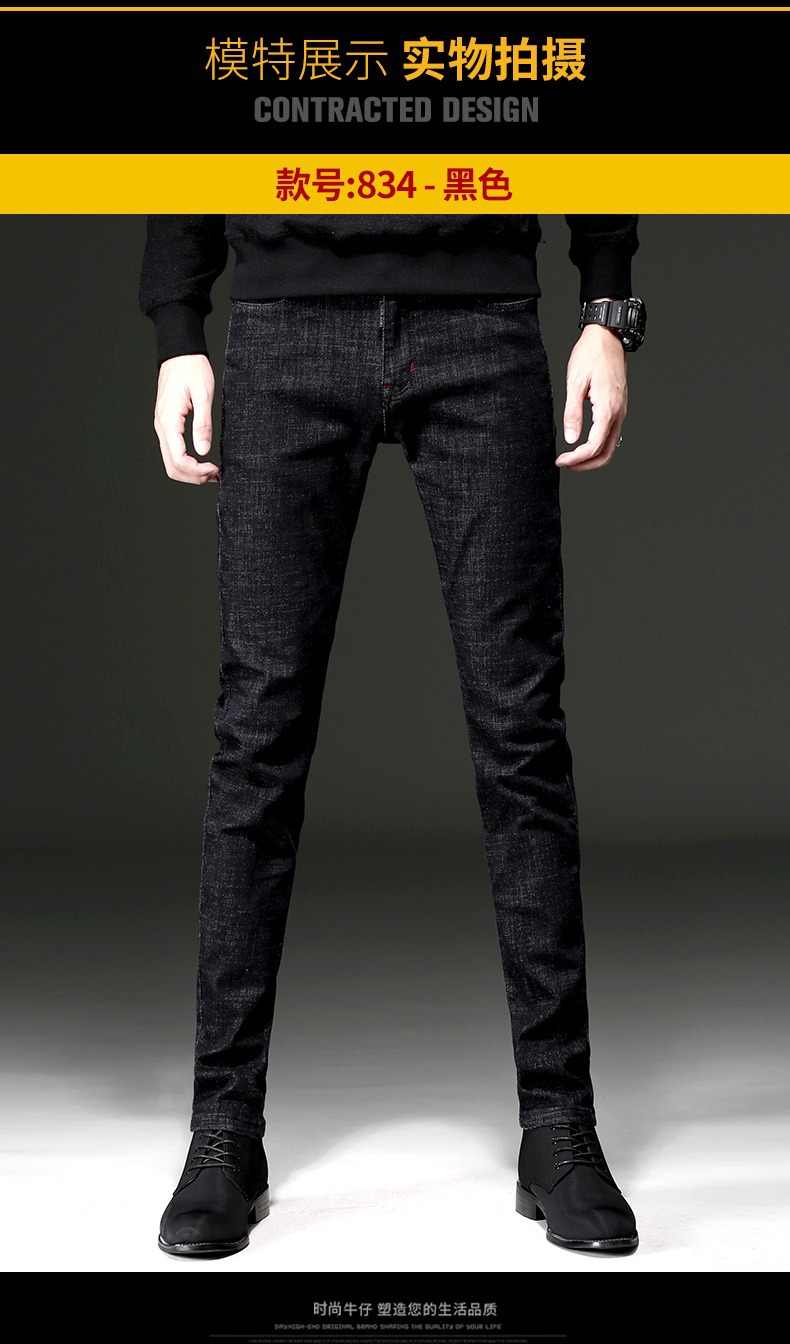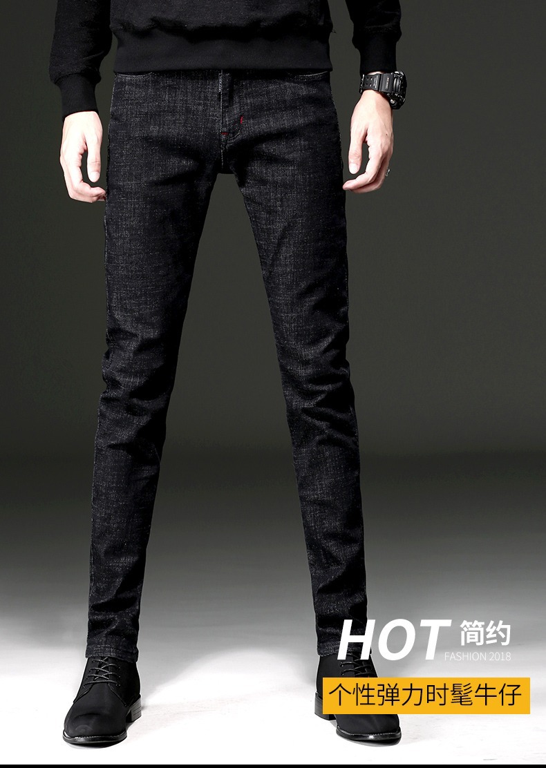 홍콩 블랙 청바지 남성 2023 새로운 봄과 가을 패션 브랜드 슬림 핏 스키니 하이 엔드 기모 두꺼운 스트레치 바지스토어 가기