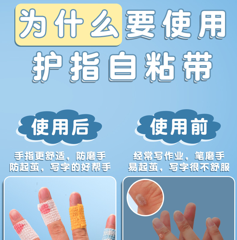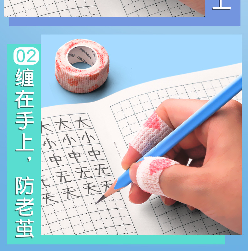 델리 핑거 가드 붕대 학생 쓰기 귀여운 손가락 커버 보호 커버 착용 방지 누에 고치 자체 접착 핸드 가드 테이프 천스토어 가기