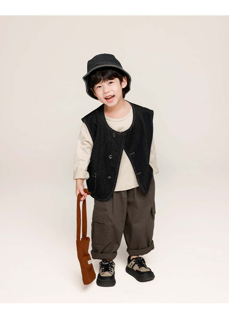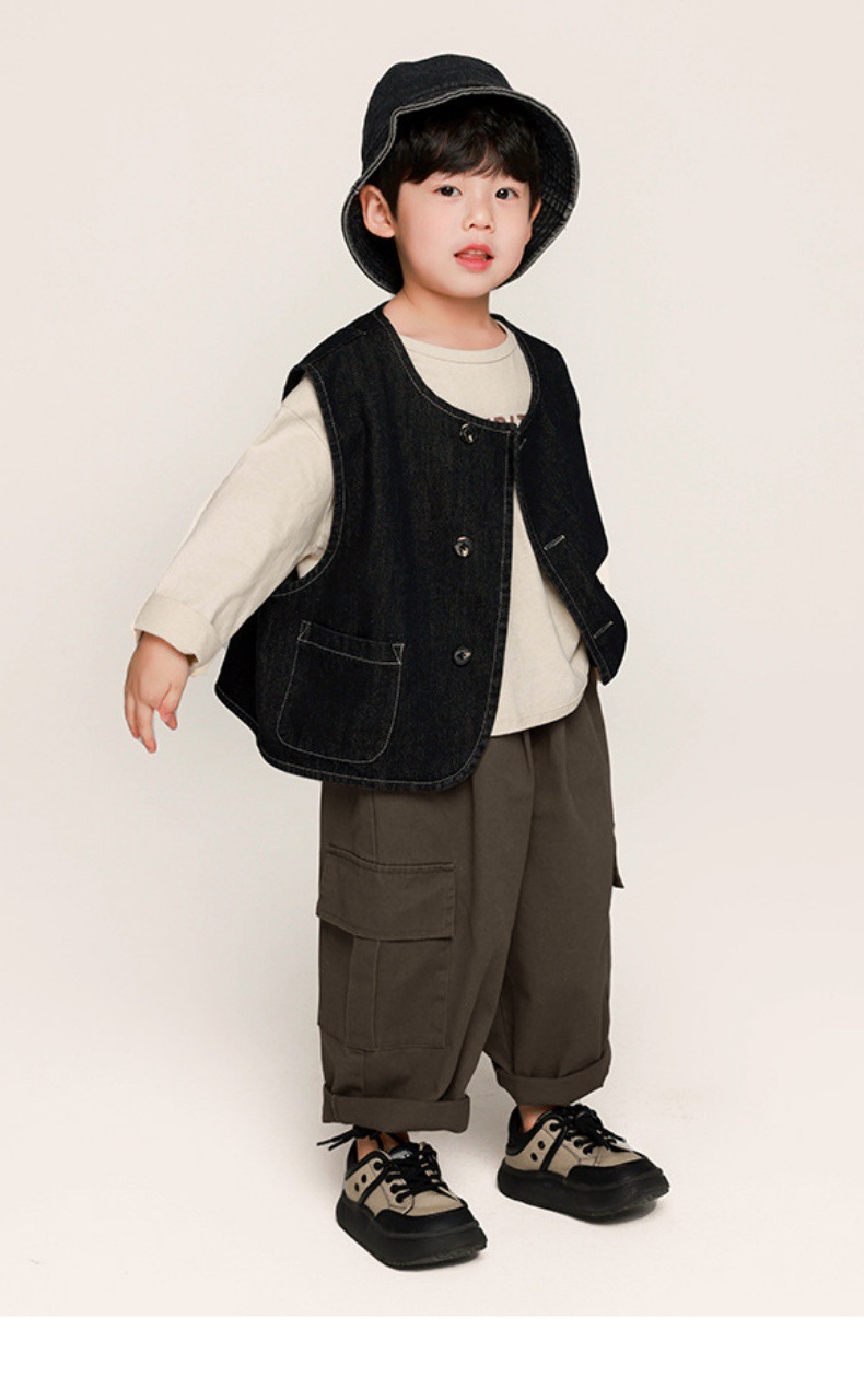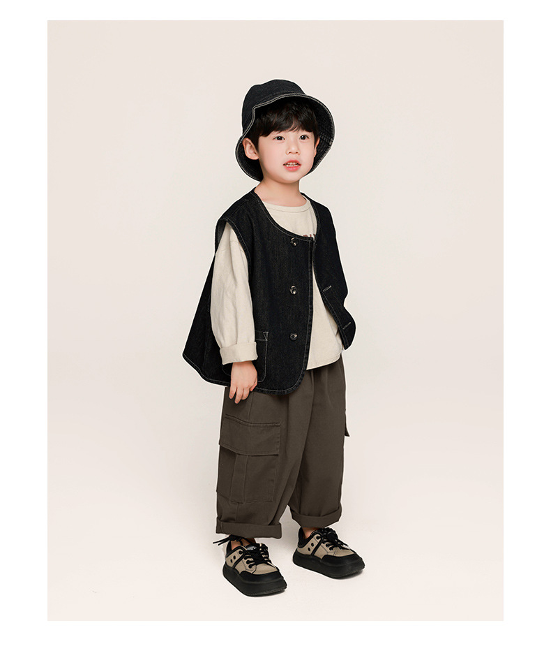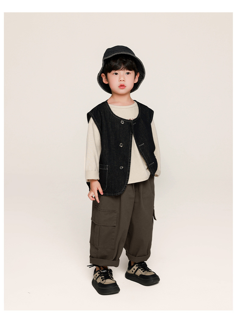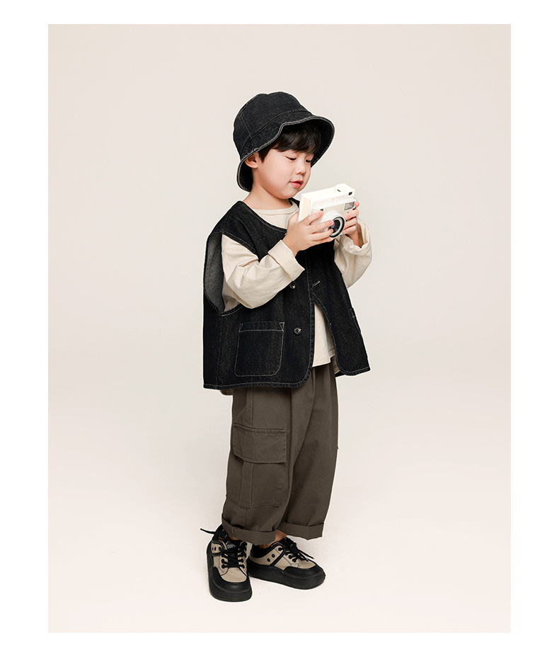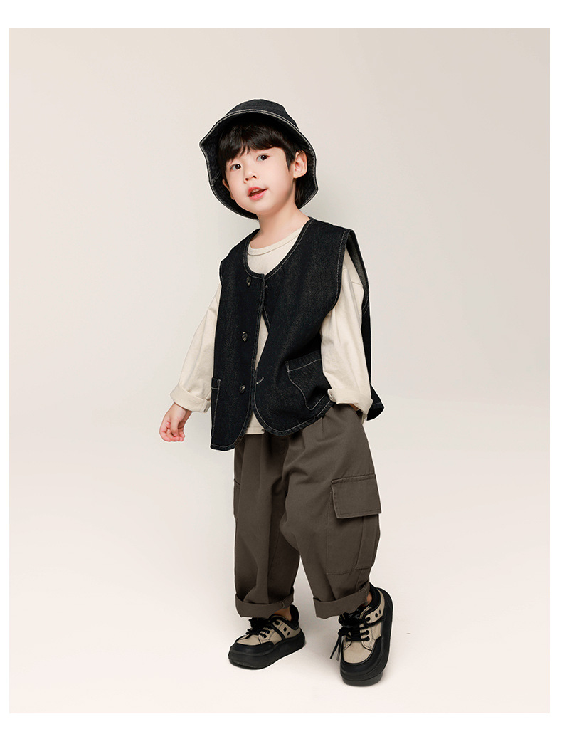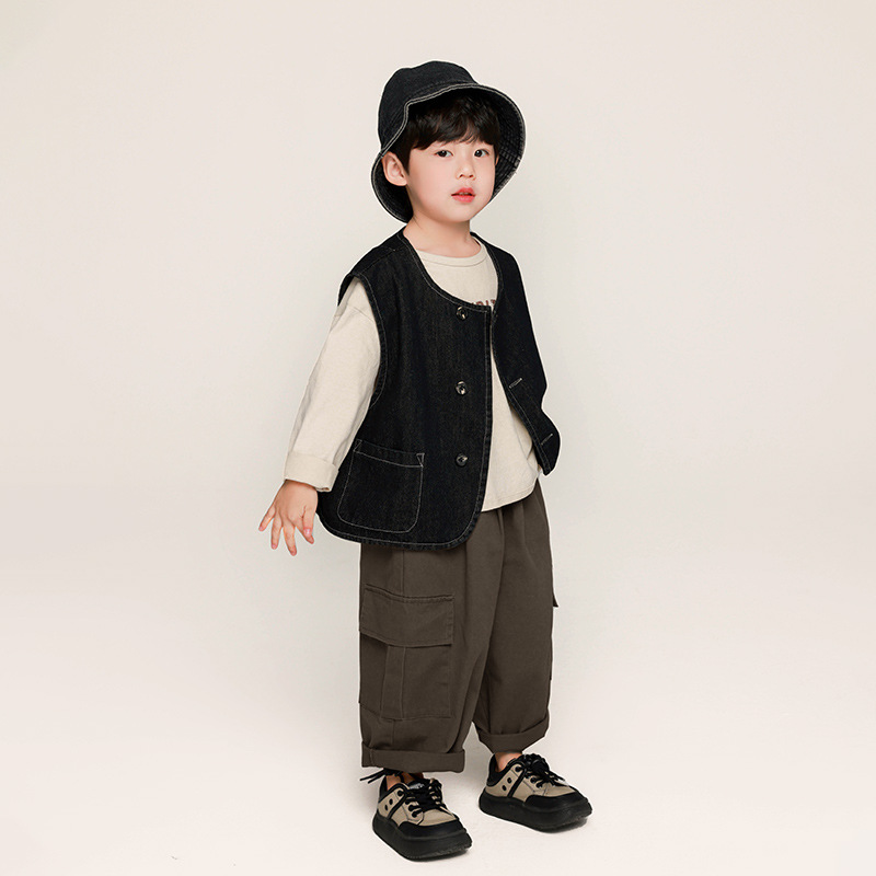 창구 어린이 의류 소년 데님 조끼 가을 의류 어린이 한국식 검은 데님 의류 어린이 봄 · 가을 외복 조끼