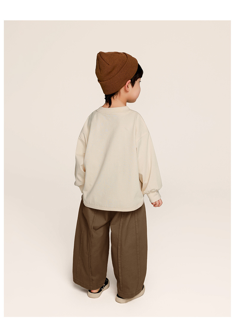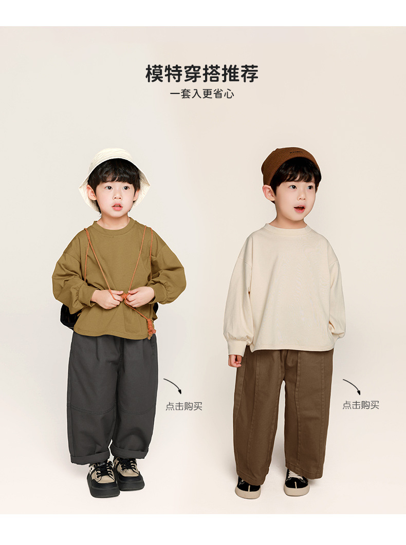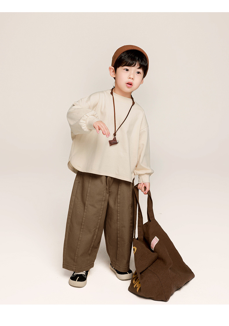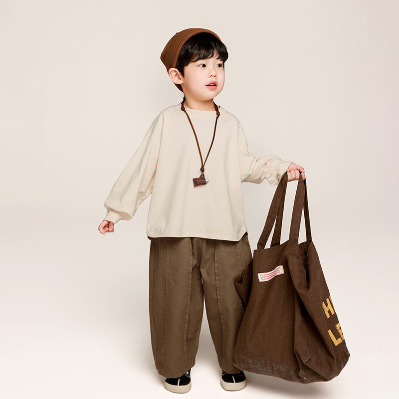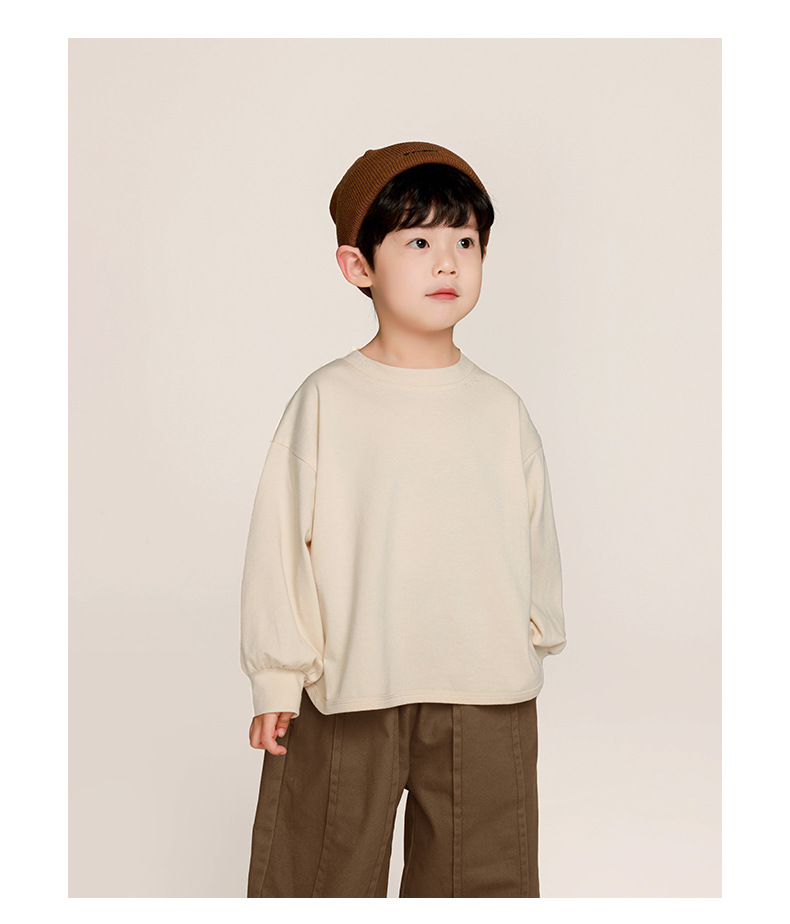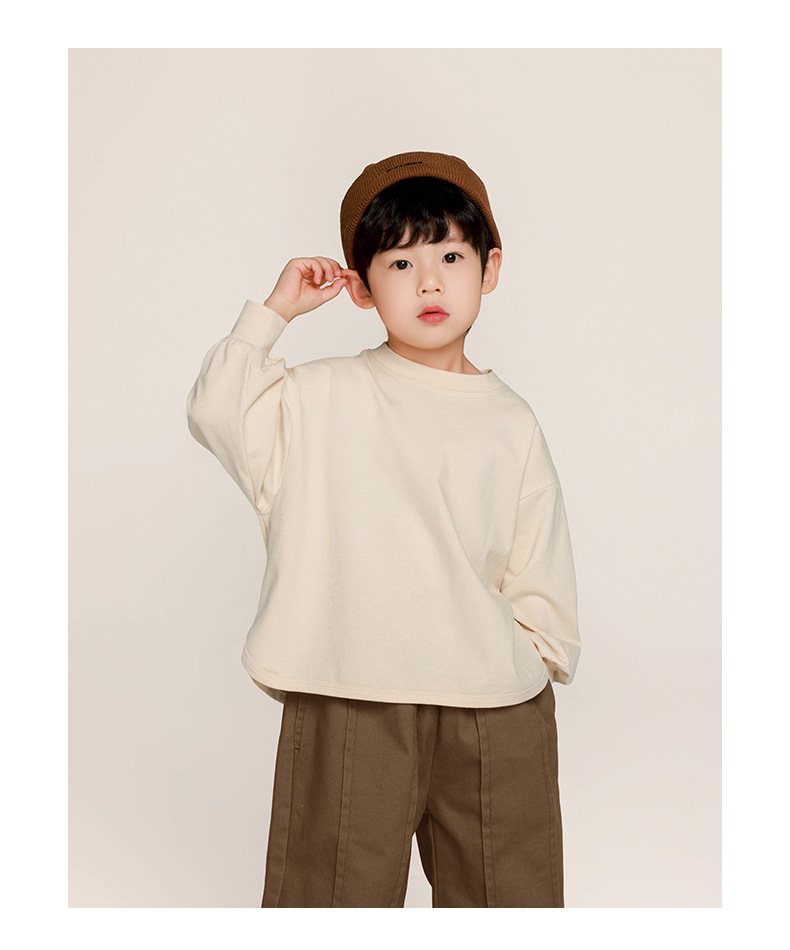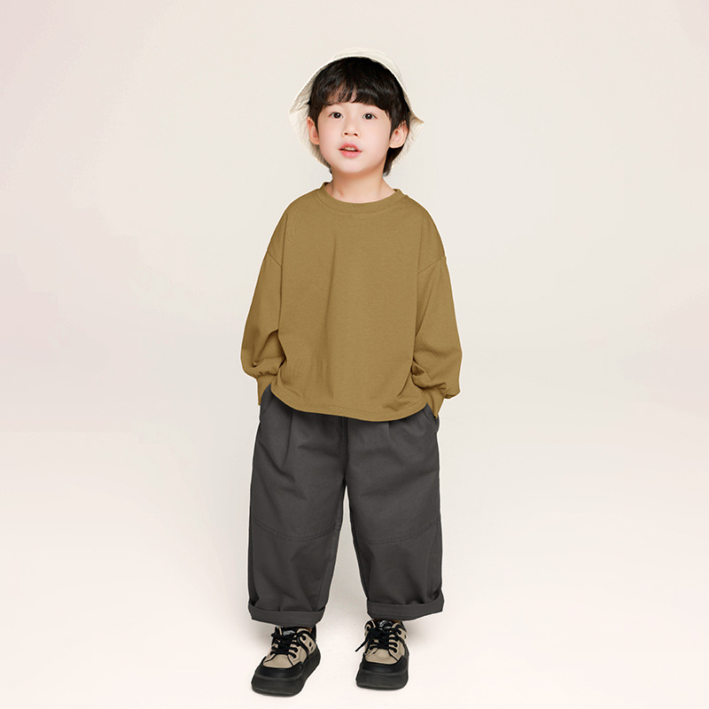 Changguo 아동 의류 소년 긴팔 티셔츠 가을 의류 어린이 한국 스타일 단색상의 중소 어린이 아기 봄, 가을 바닥 셔츠