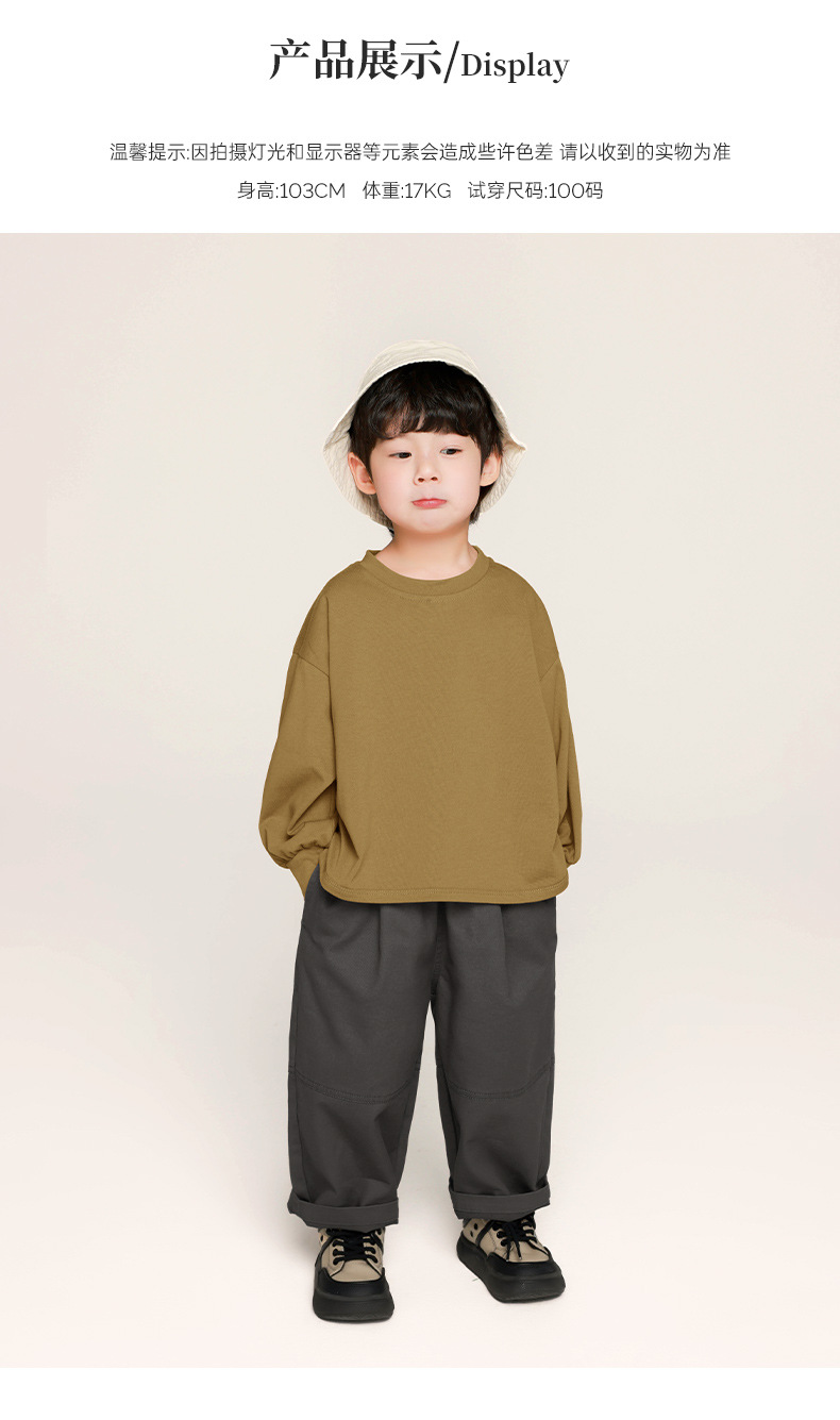Changguo 아동 의류 소년 긴팔 티셔츠 가을 의류 어린이 한국 스타일 단색상의 중소 어린이 아기 봄, 가을 바닥 셔츠스토어 가기