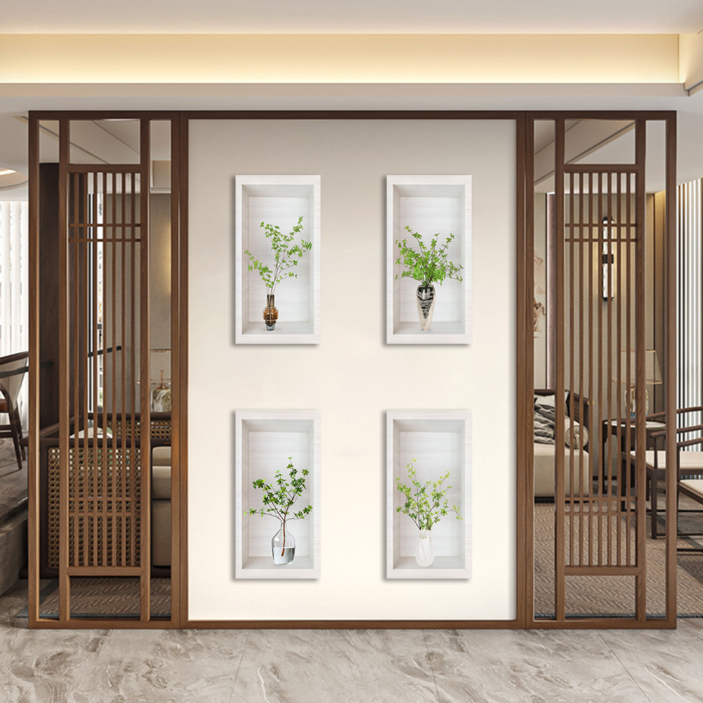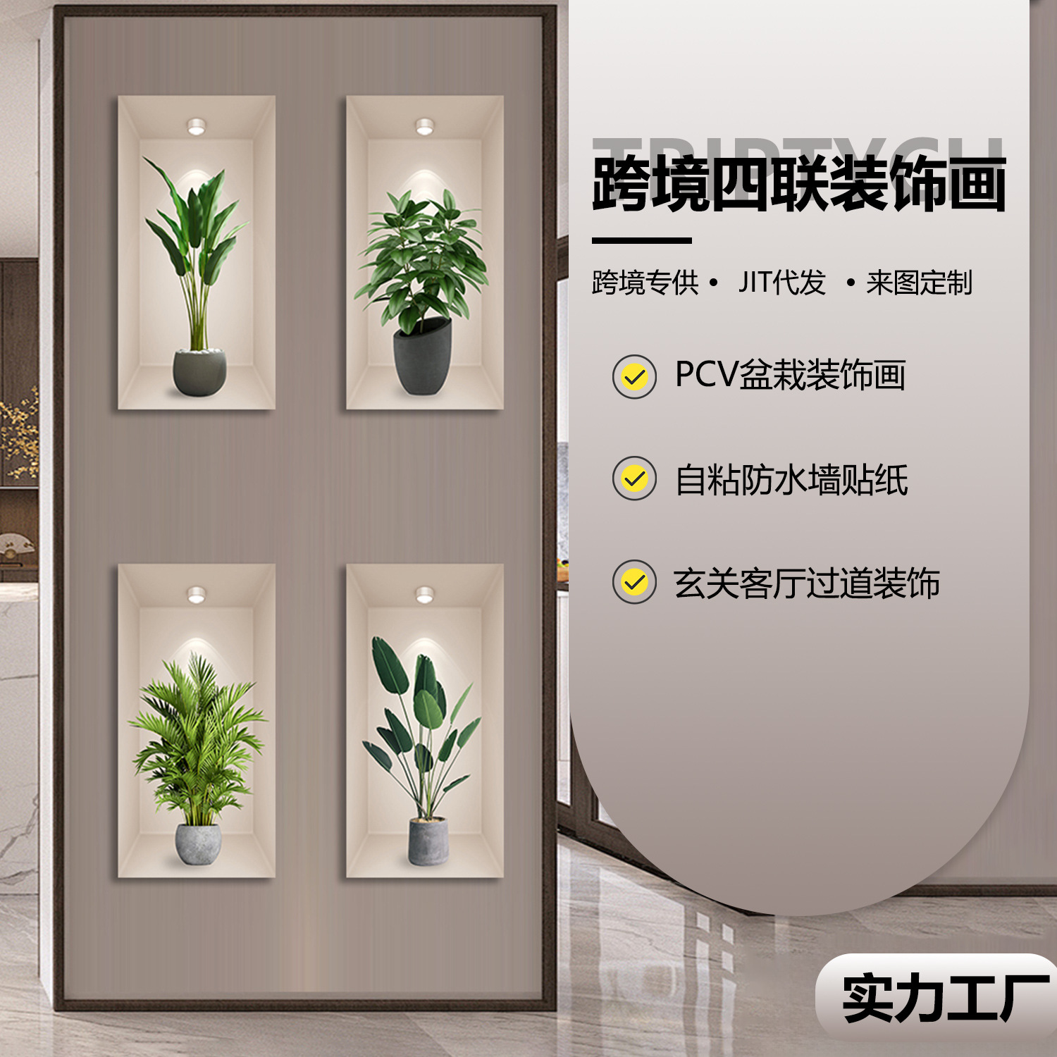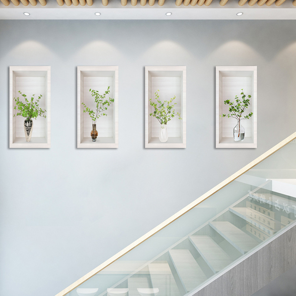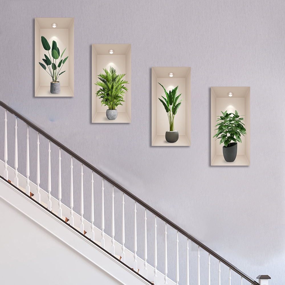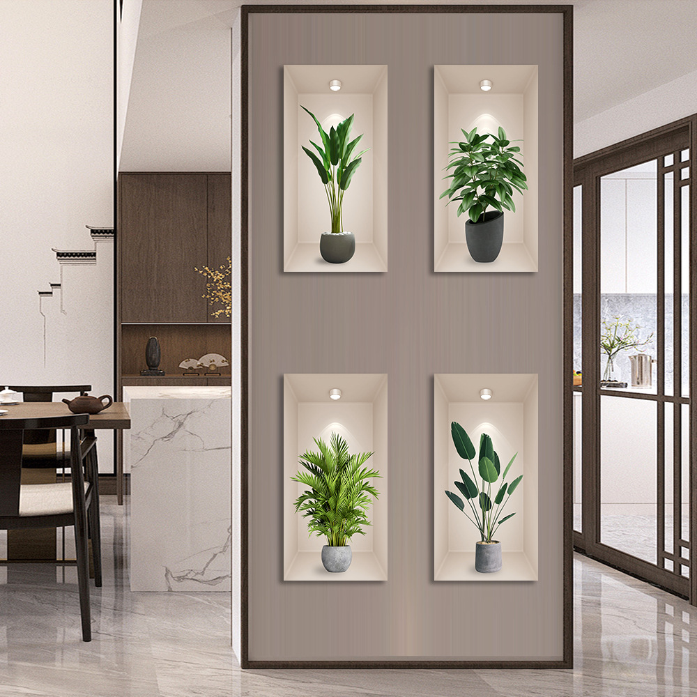국경 간 새로운 4 조각 그림 시뮬레이션 식물 냄비 복도 캐비닛 장식 그림 방수 PVC 프레임리스 벽 스티커스토어 가기