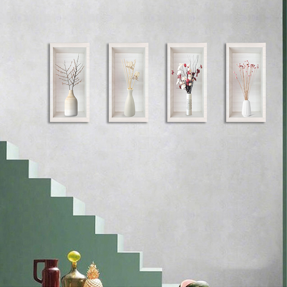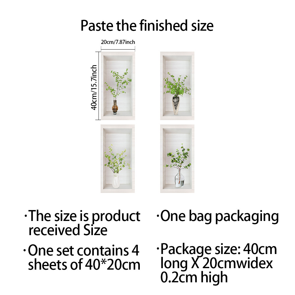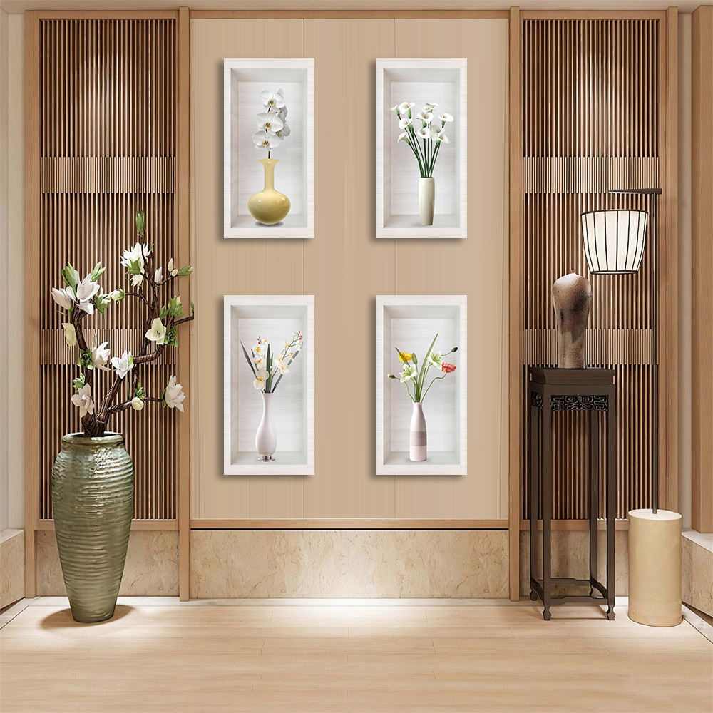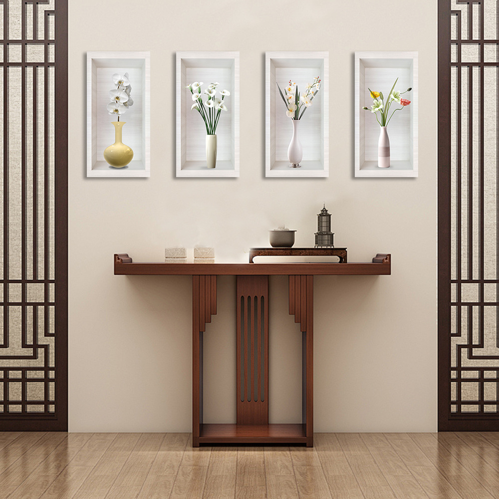 국경 간 새로운 4 조각 그림 시뮬레이션 식물 냄비 복도 캐비닛 장식 그림 방수 PVC 프레임리스 벽 스티커스토어 가기