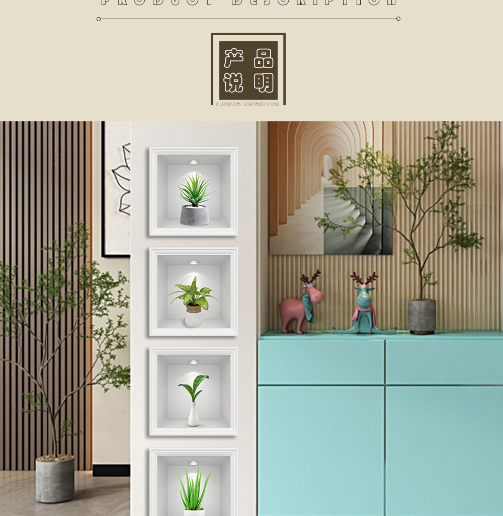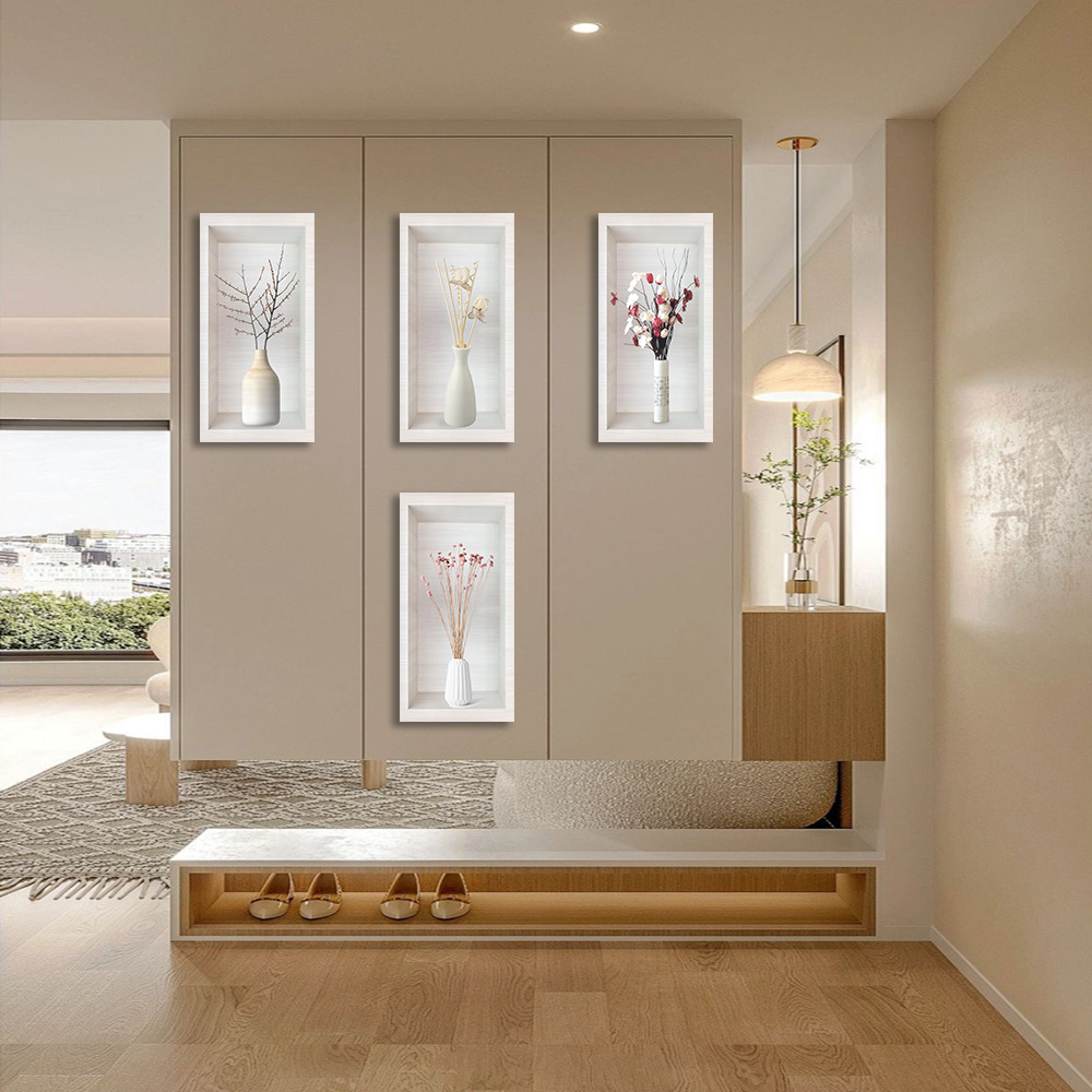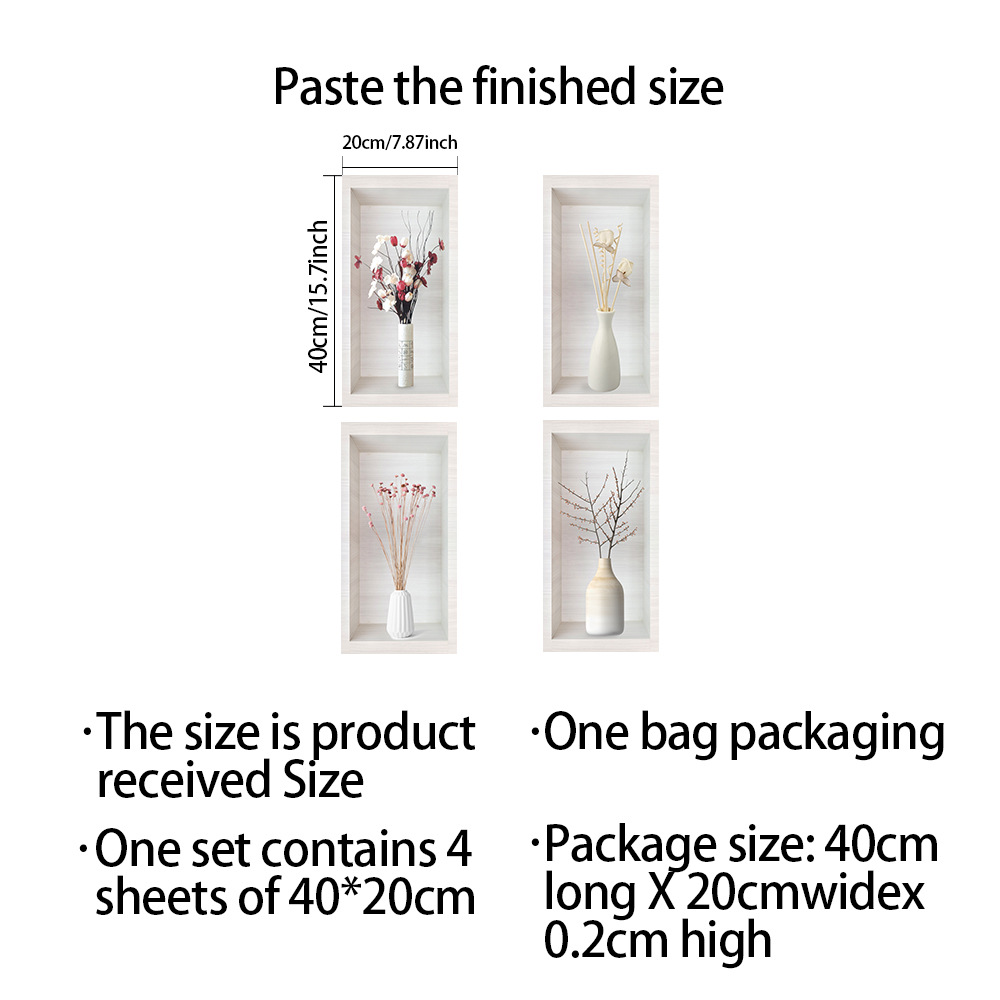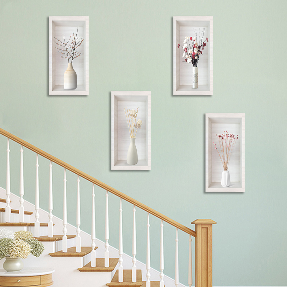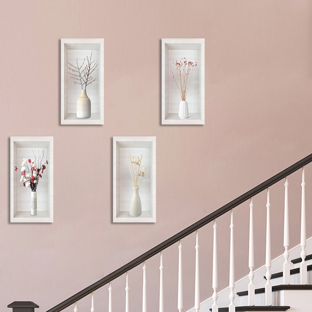 국경 간 새로운 4 조각 그림 시뮬레이션 식물 냄비 복도 캐비닛 장식 그림 방수 PVC 프레임리스 벽 스티커스토어 가기