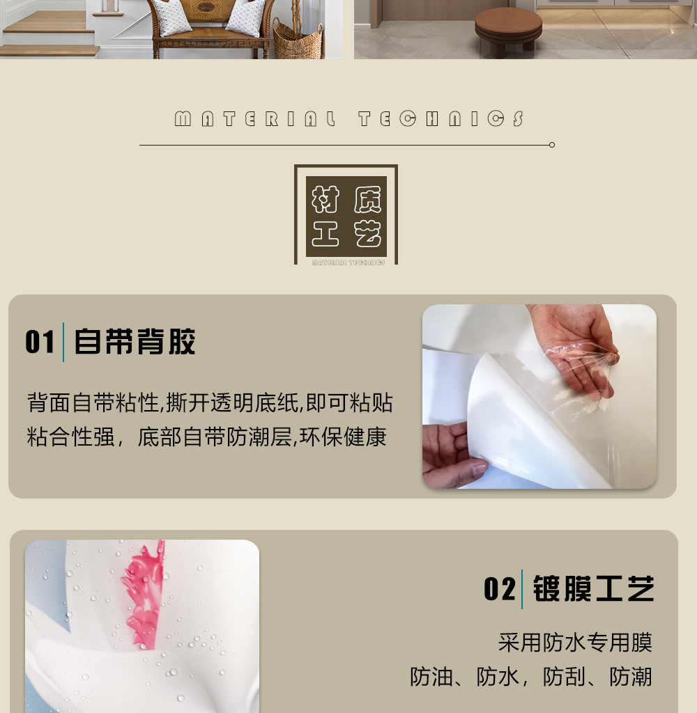 2.自带背胶,可自粘,撕掉背面保护纸,直接粘贴即可