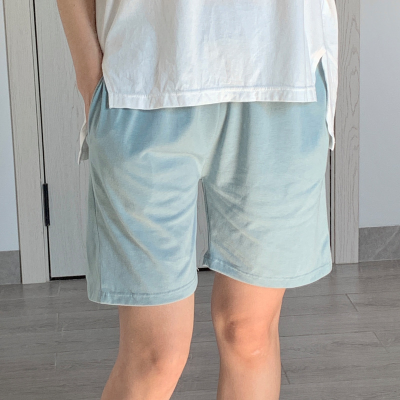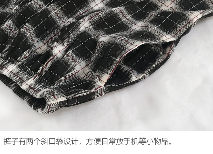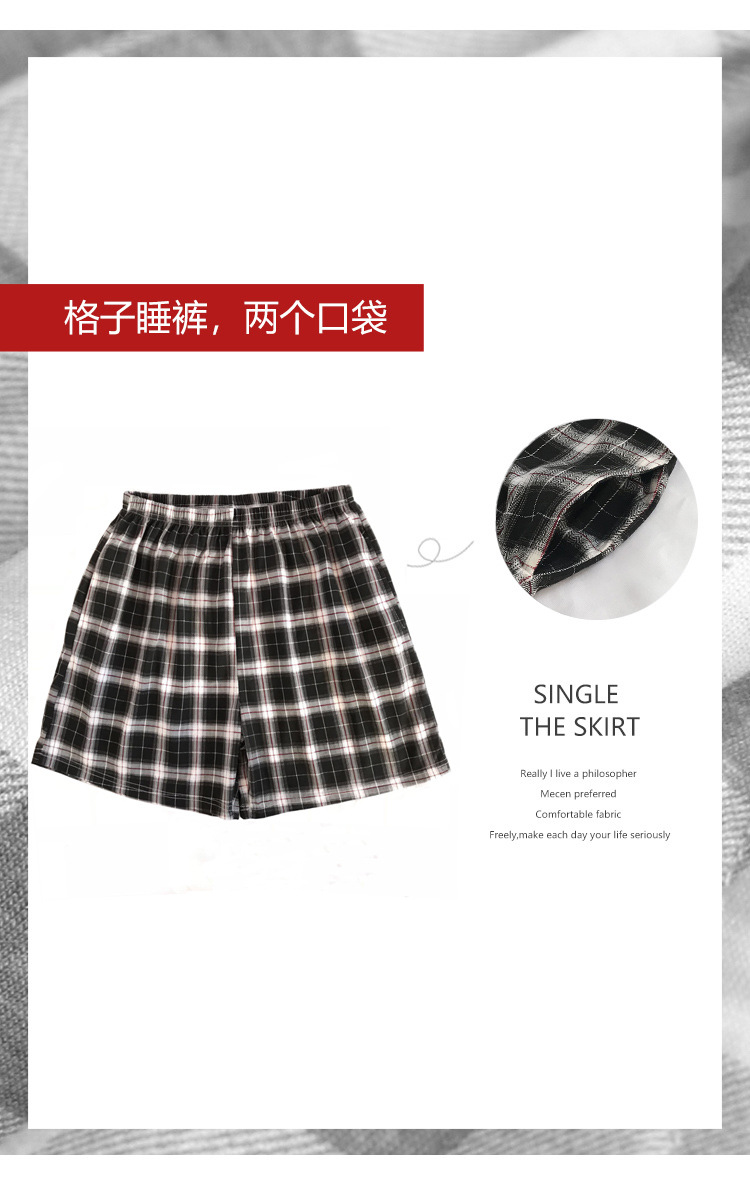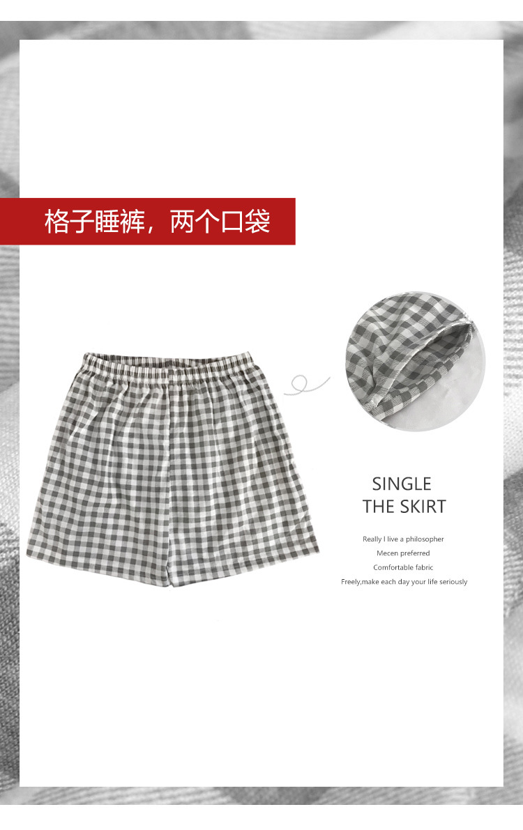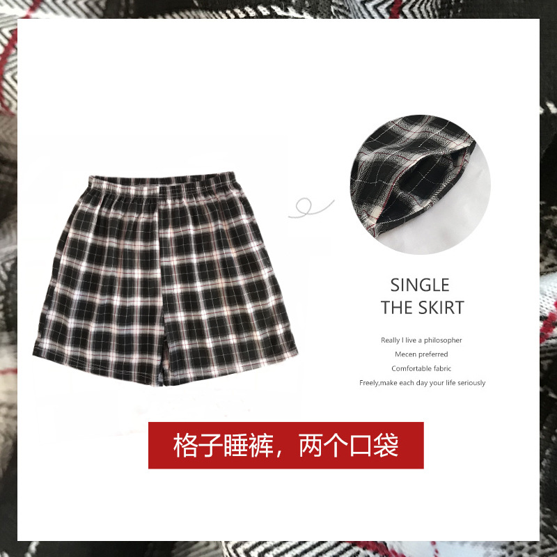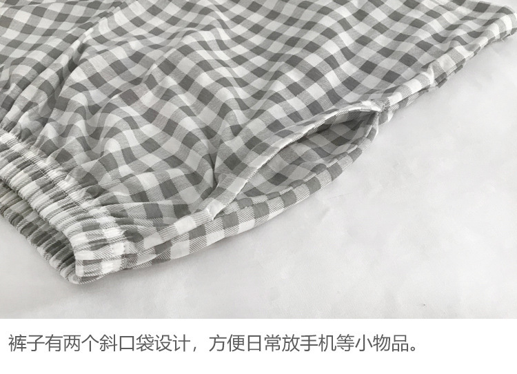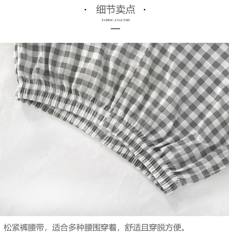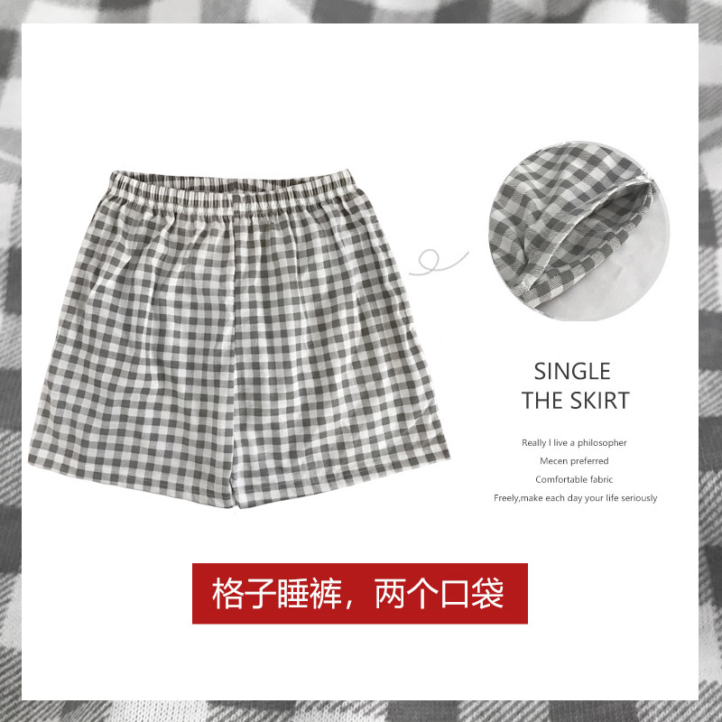 여름용 면 여성 잠옷 얇은 일본식 체크무늬 3부 바지 반바지 여성용 큰 사이즈 루즈핏 비치 팬츠 홈웨어스토어 가기