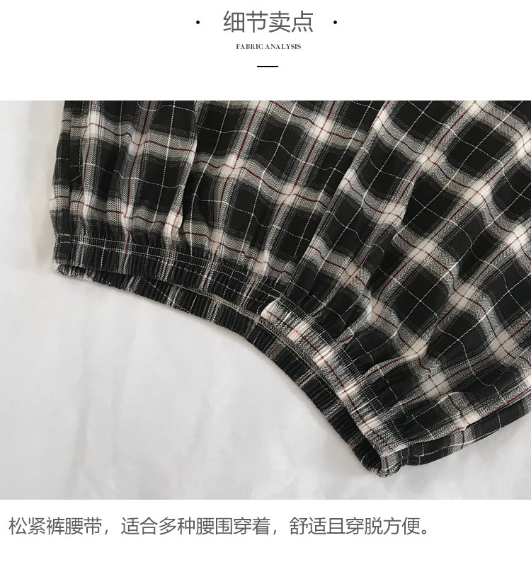 여름용 면 여성 잠옷 얇은 일본식 체크무늬 3부 바지 반바지 여성용 큰 사이즈 루즈핏 비치 팬츠 홈웨어