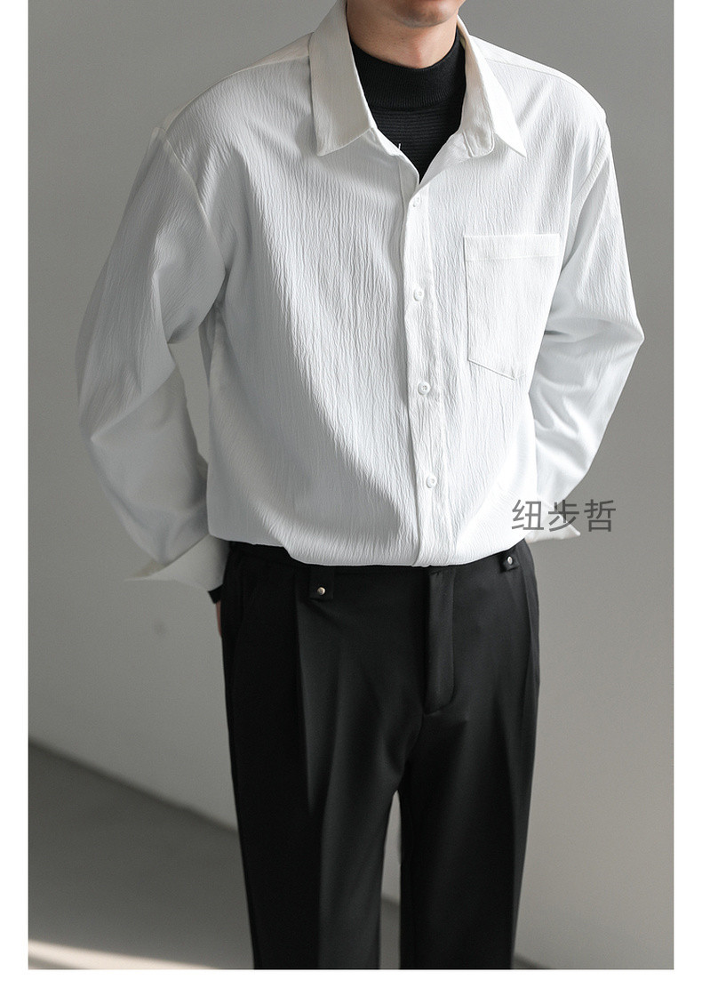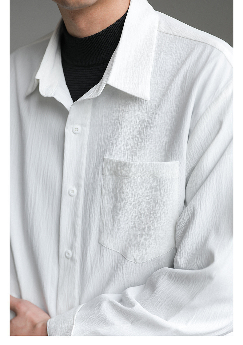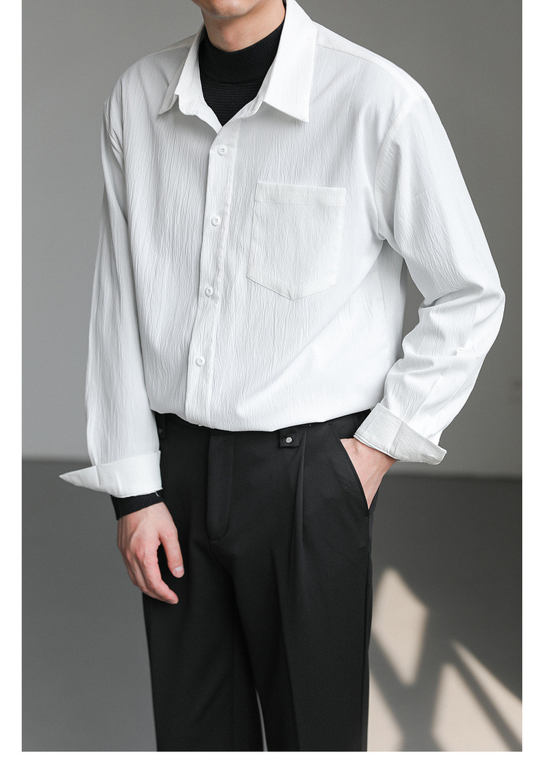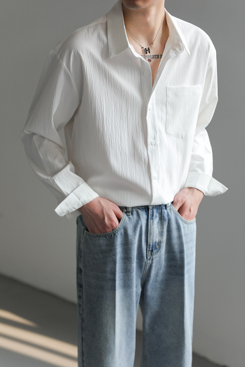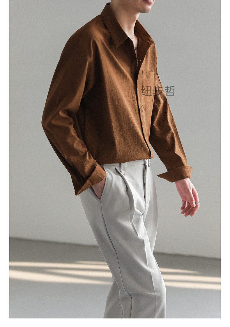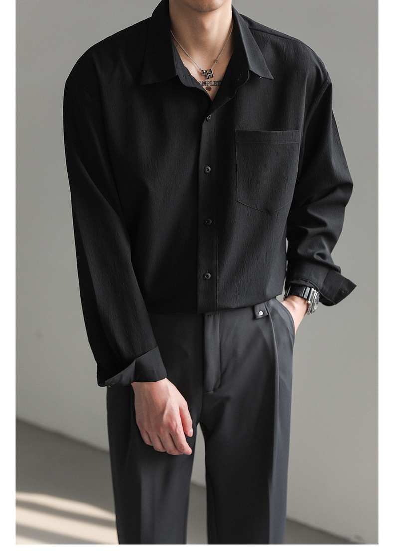 가벼운 성숙한 한국 스타일 유행 잘 생긴 긴팔 셔츠 남자의 느슨한 캐주얼 단색 비 다림질 셔츠 봄과 가을 탑스토어 가기