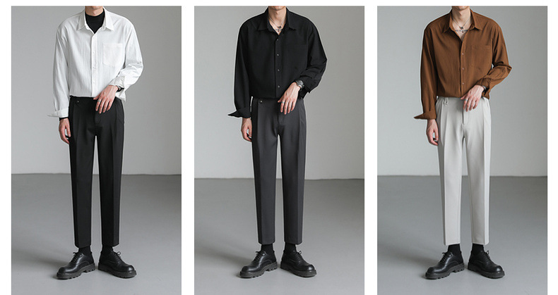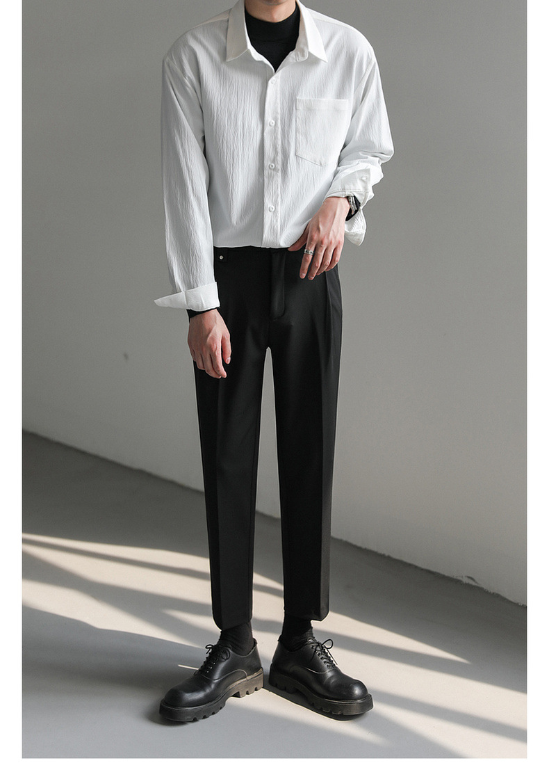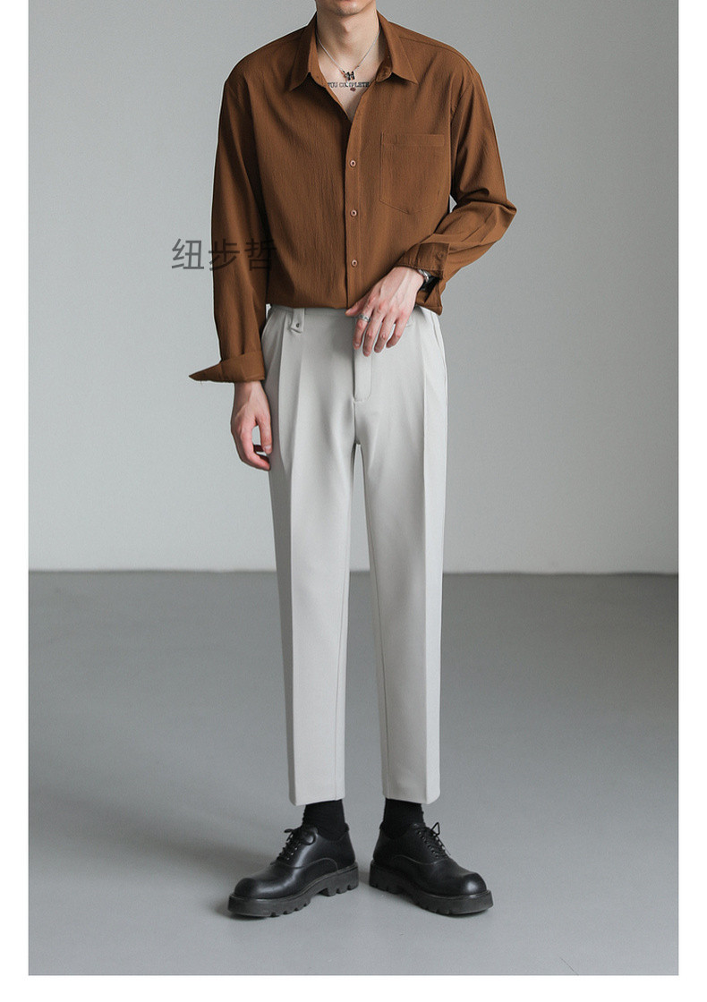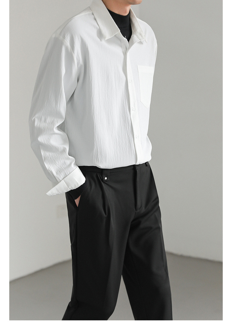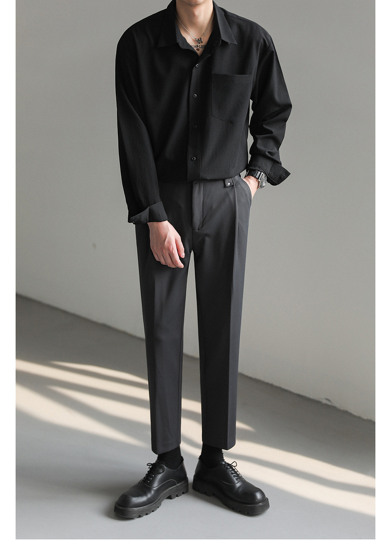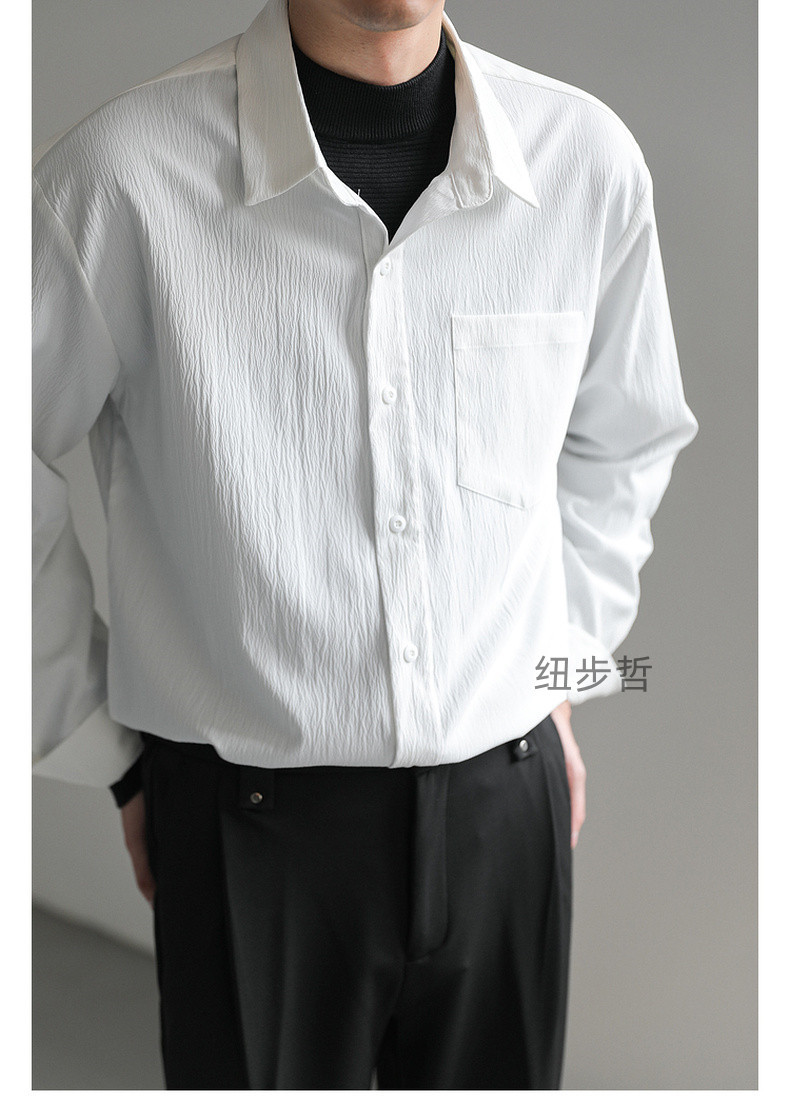 가벼운 성숙한 한국 스타일 유행 잘 생긴 긴팔 셔츠 남자의 느슨한 캐주얼 단색 비 다림질 셔츠 봄과 가을 탑스토어 가기